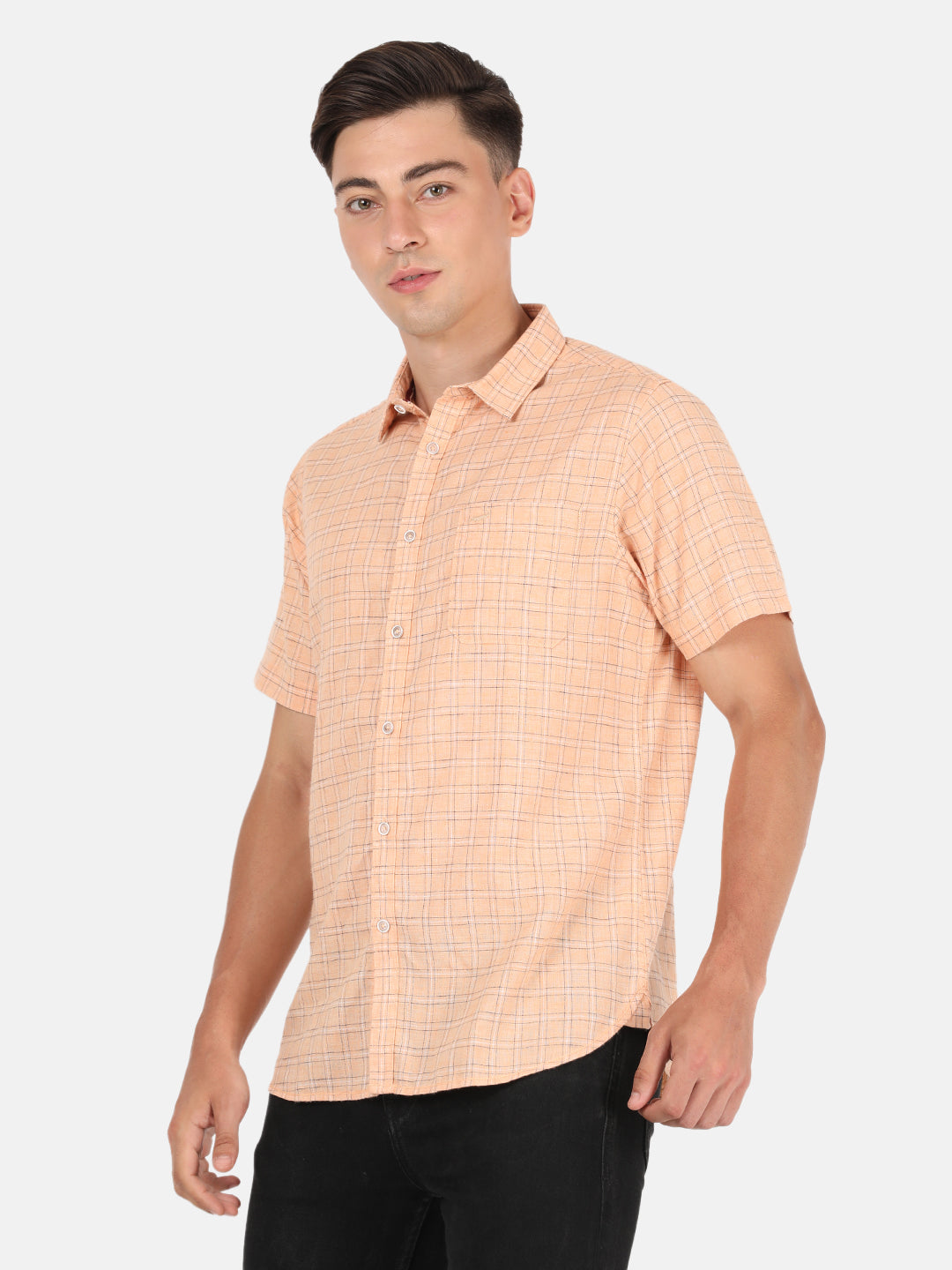 Light Orange Checked Half Sleeve Shirt