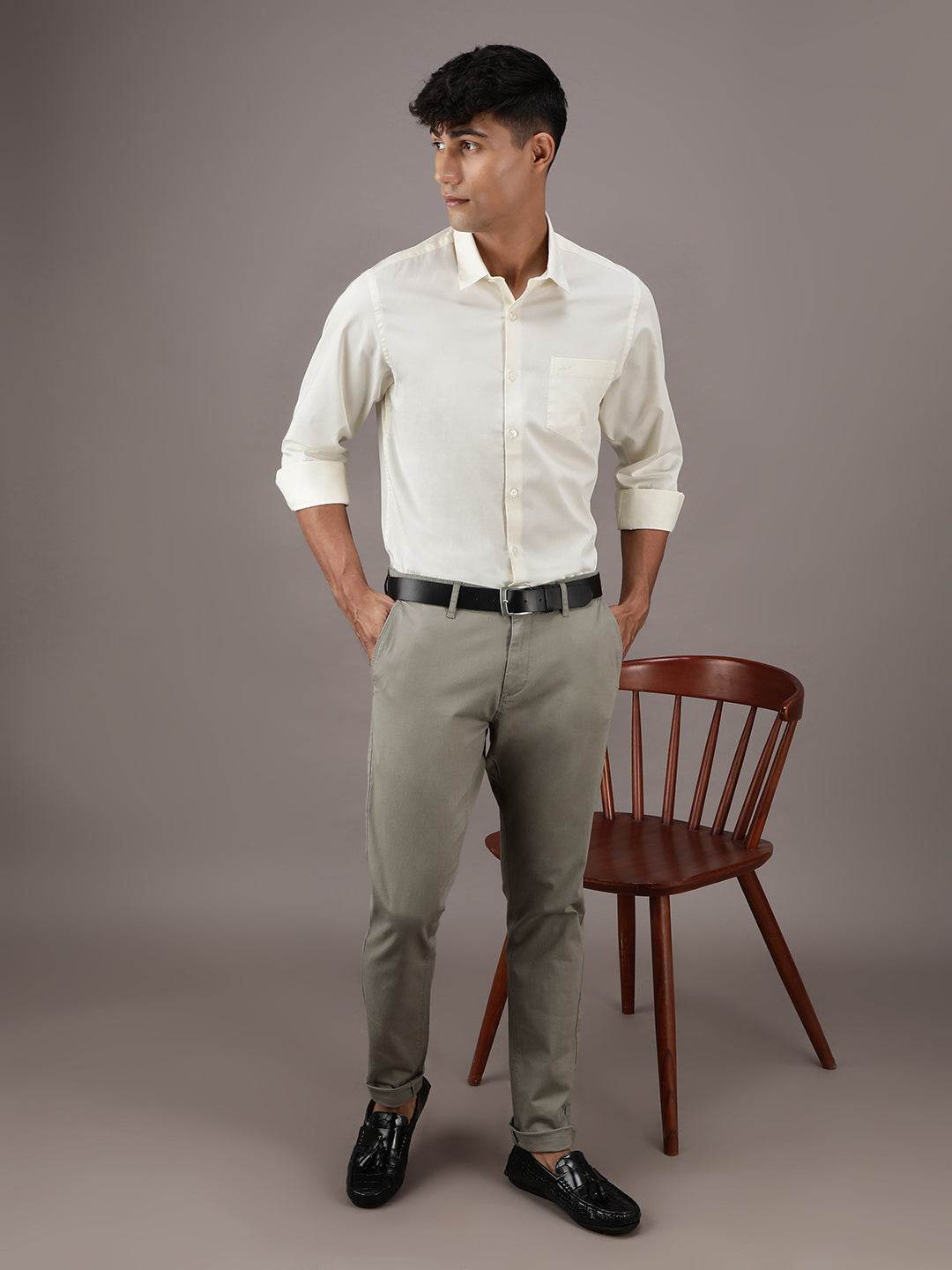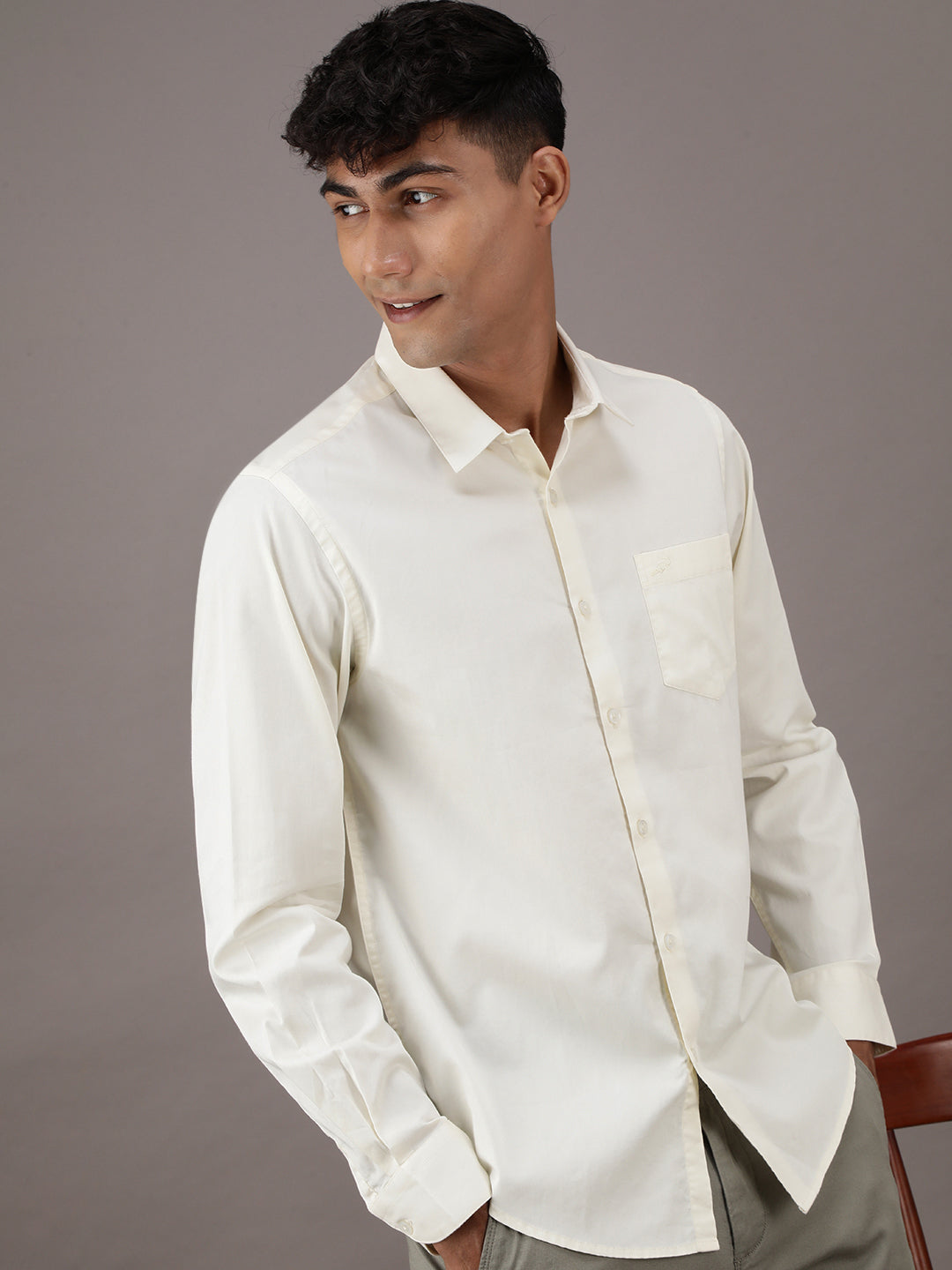 Light Yellow Solid Full Sleeve 100% Cotton Shirt