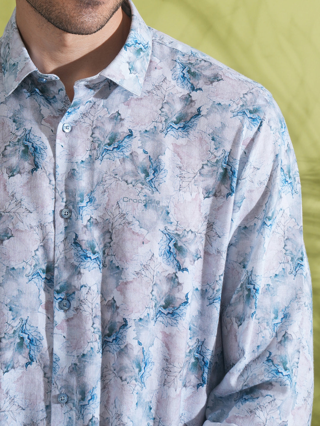 Linen Blend Abstract Dry Leaf Print Shirt Grey