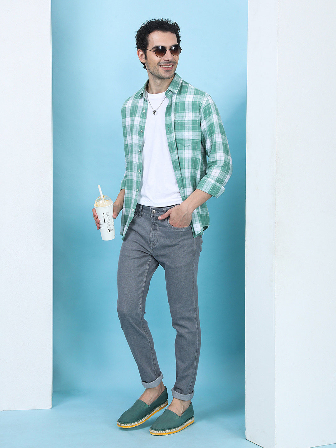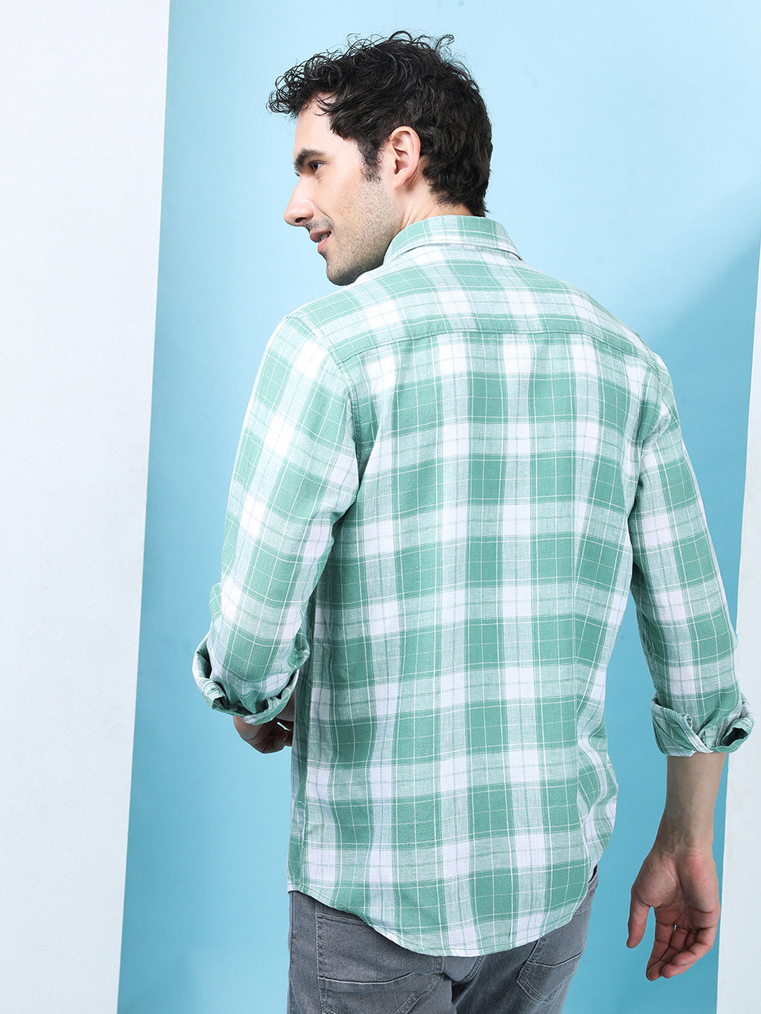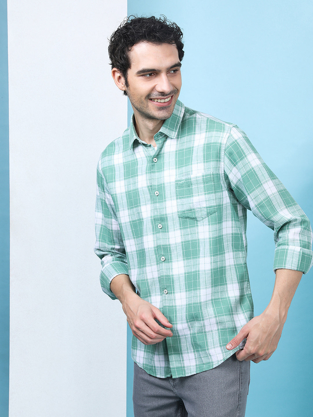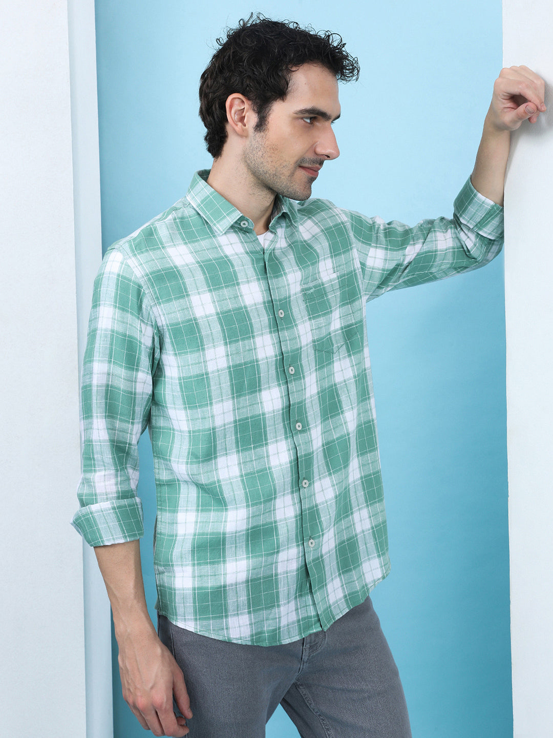 Linen Blend Check Casual Shirt Green