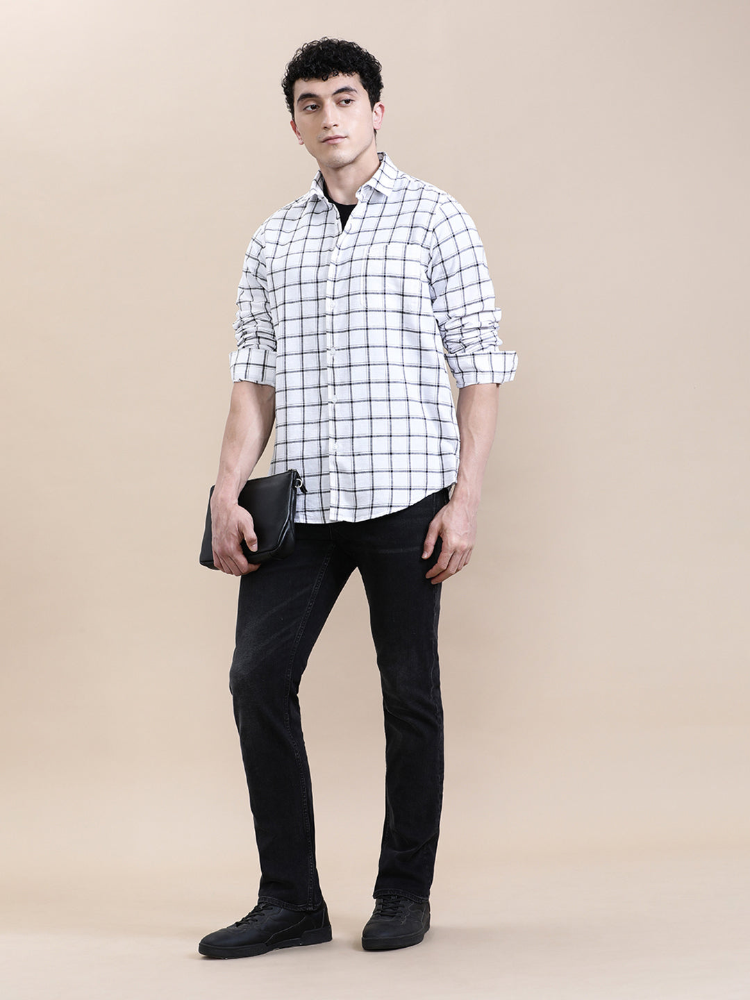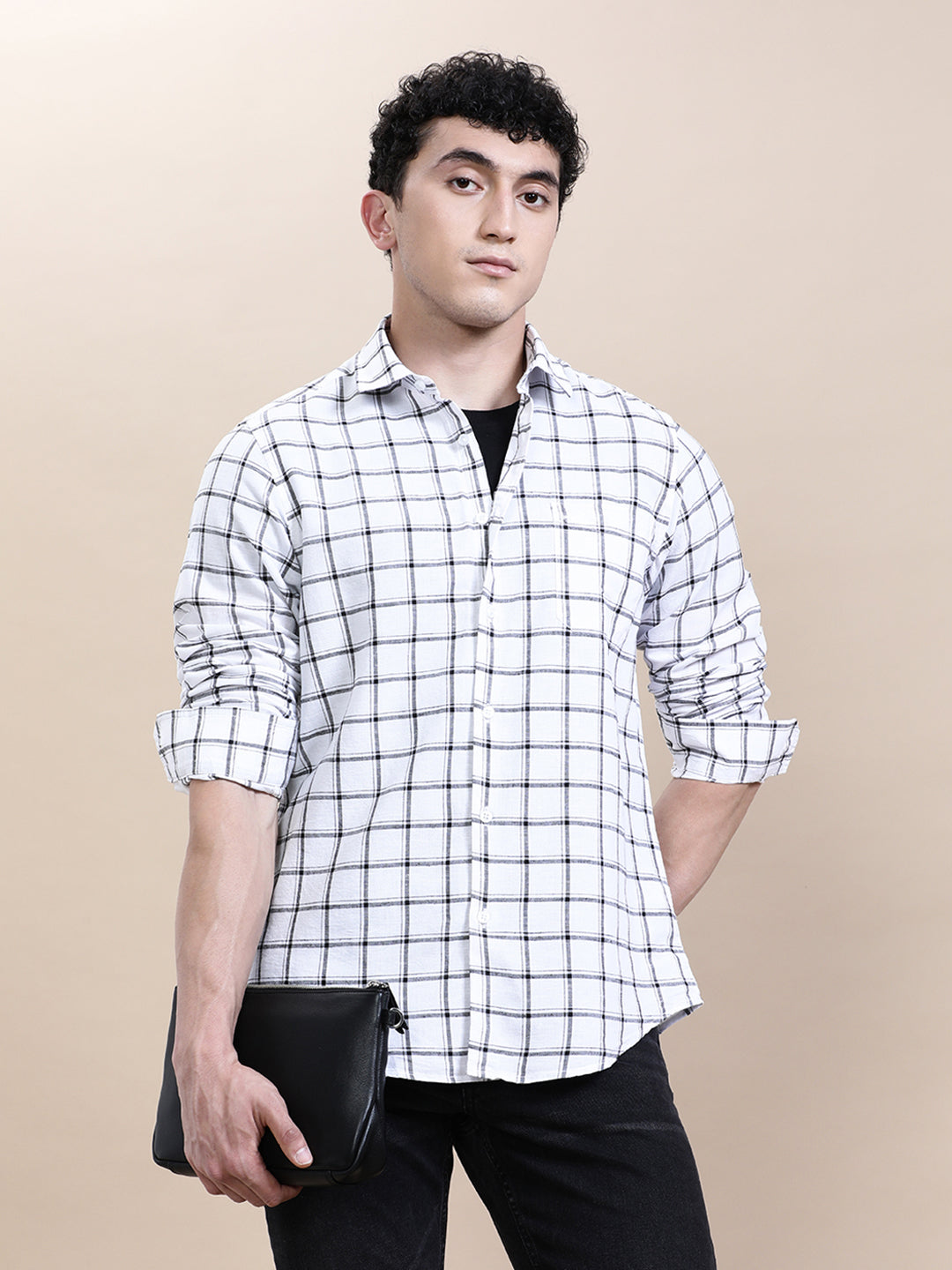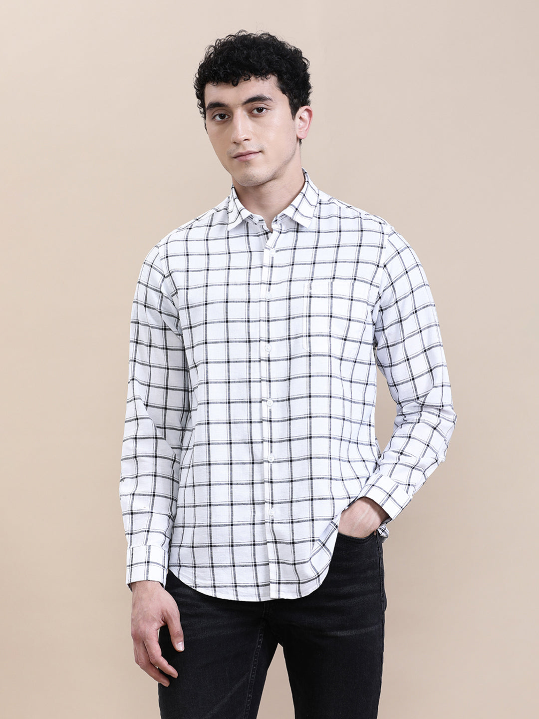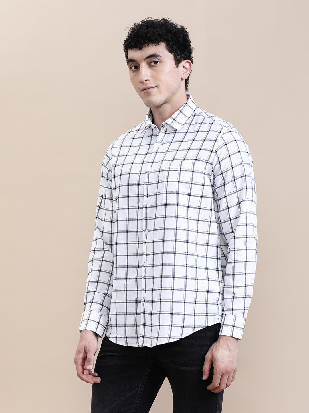 Linen Blend Checked Full Sleeve Shirt