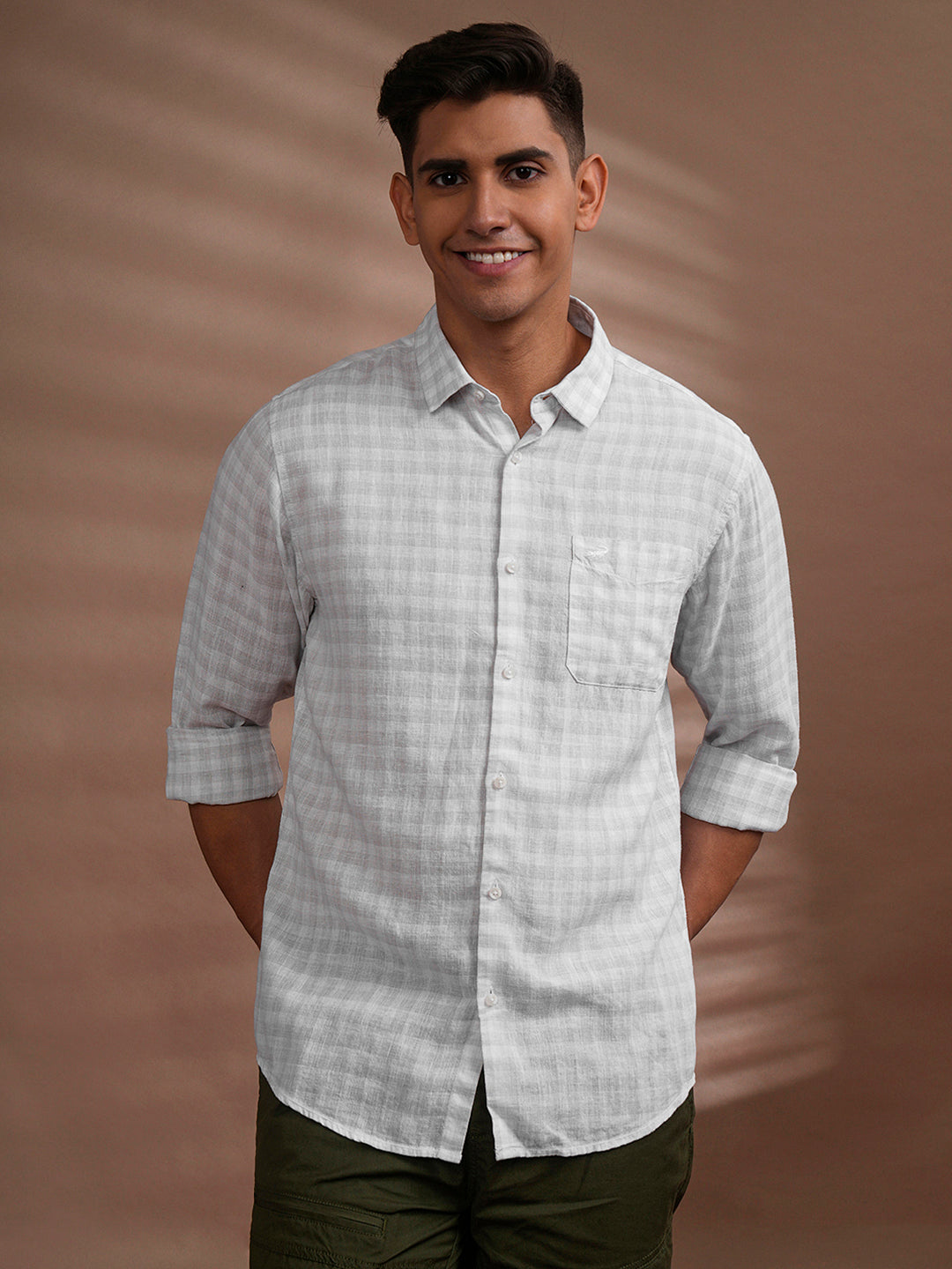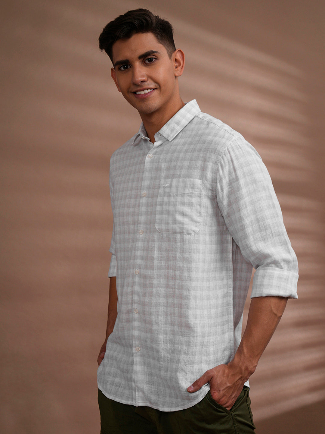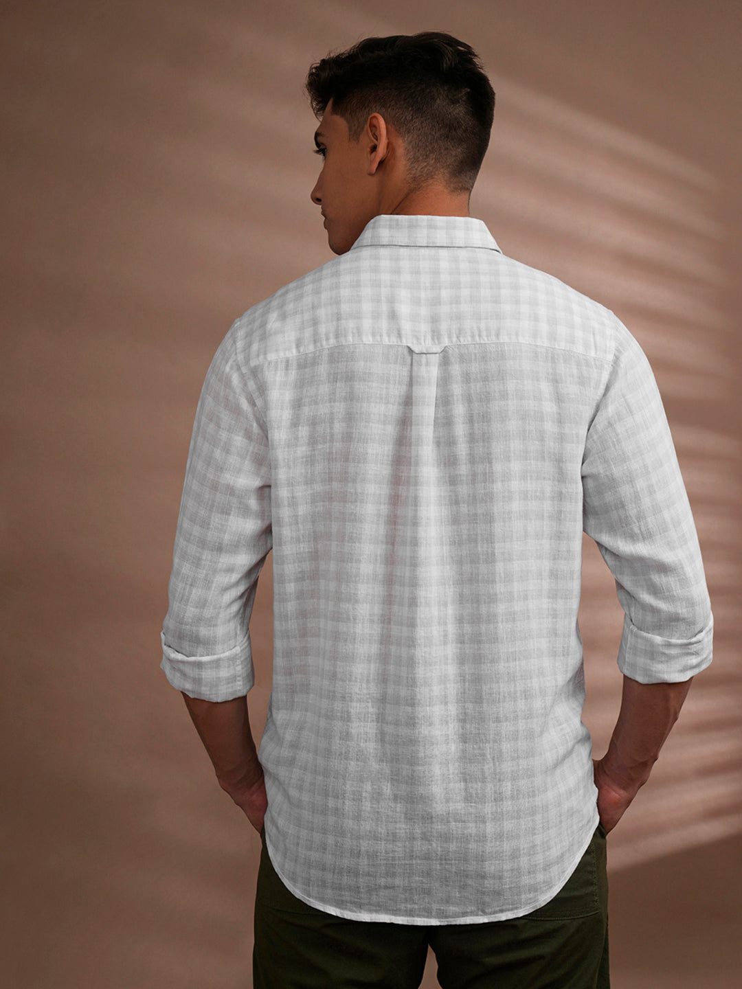 Linen Blend Tonal Check Shirt White