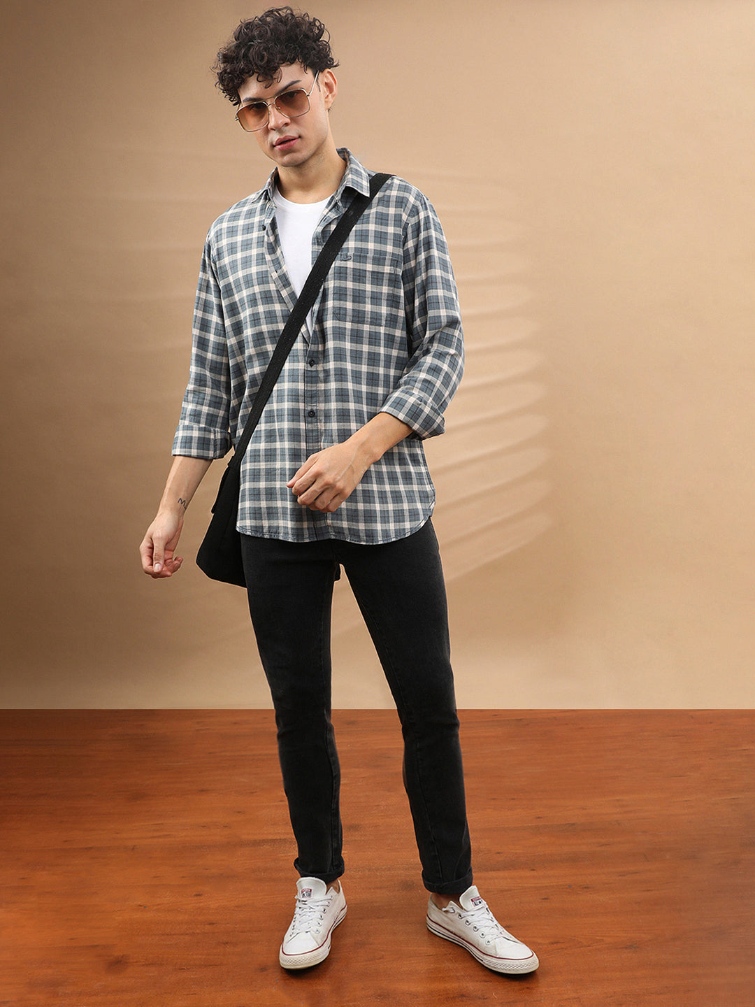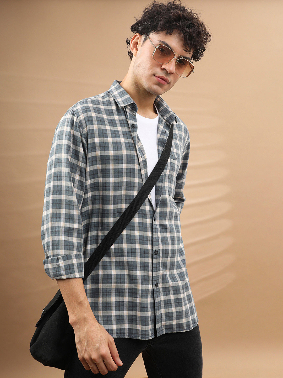 Lyocell Blend Check Shirt Dk Blue