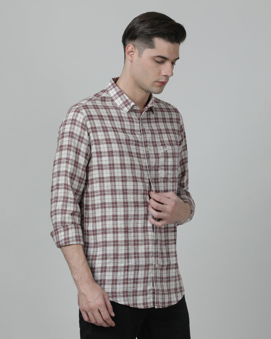 Maroon Checked Casual Full Sleeve 100% Cotton Shirt