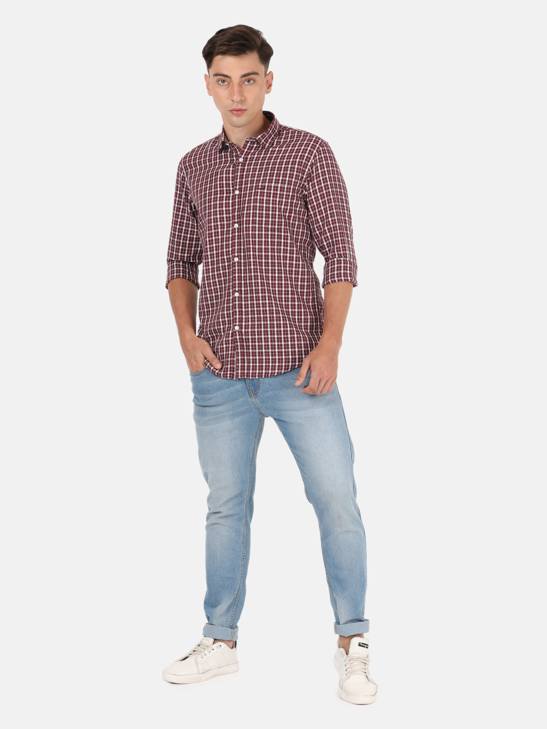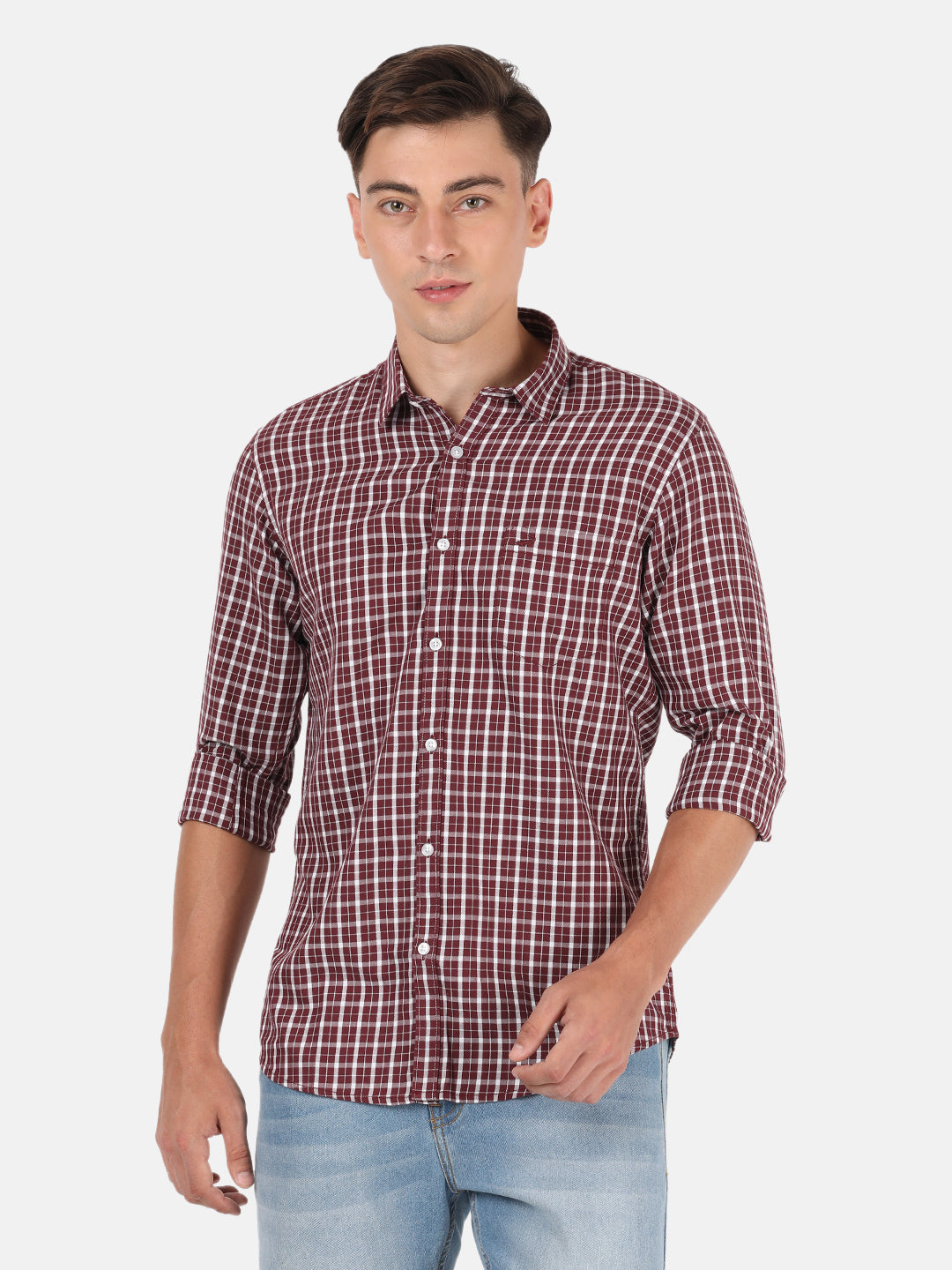 Maroon Checked Casual Full Sleeve Shirt