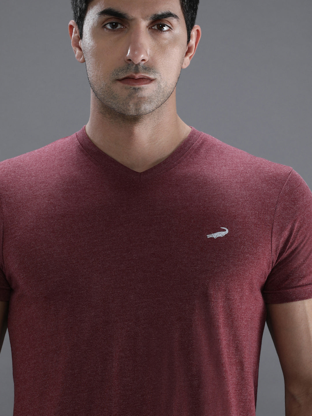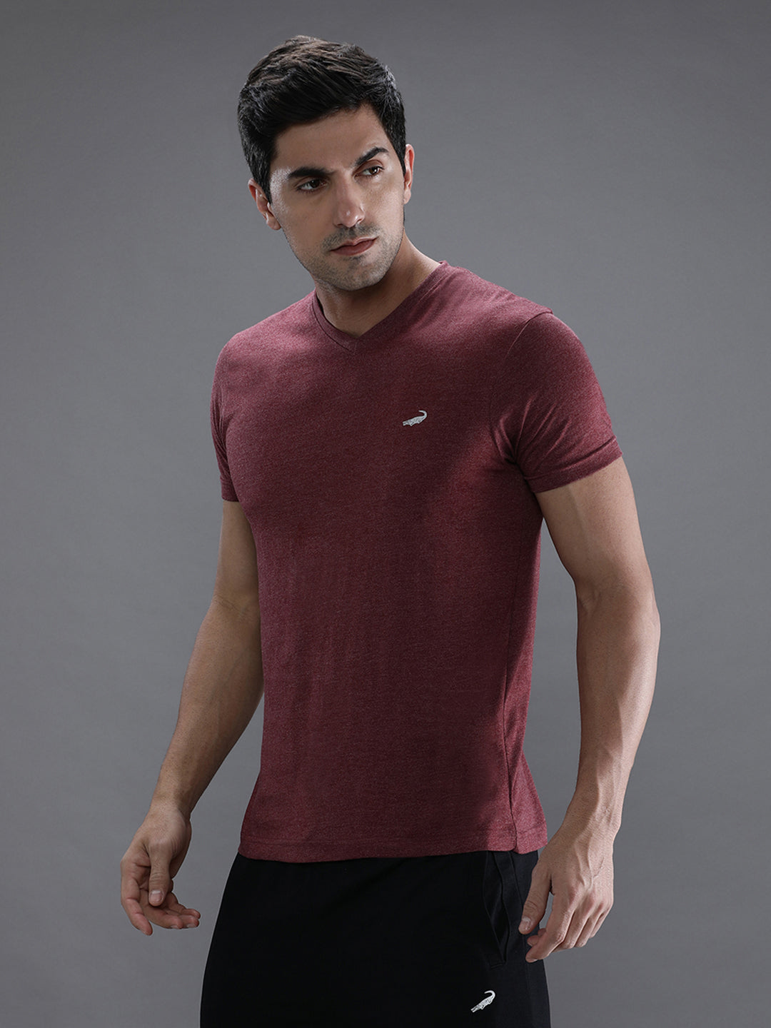 Maroon Melange Casual Solid T-Shirt