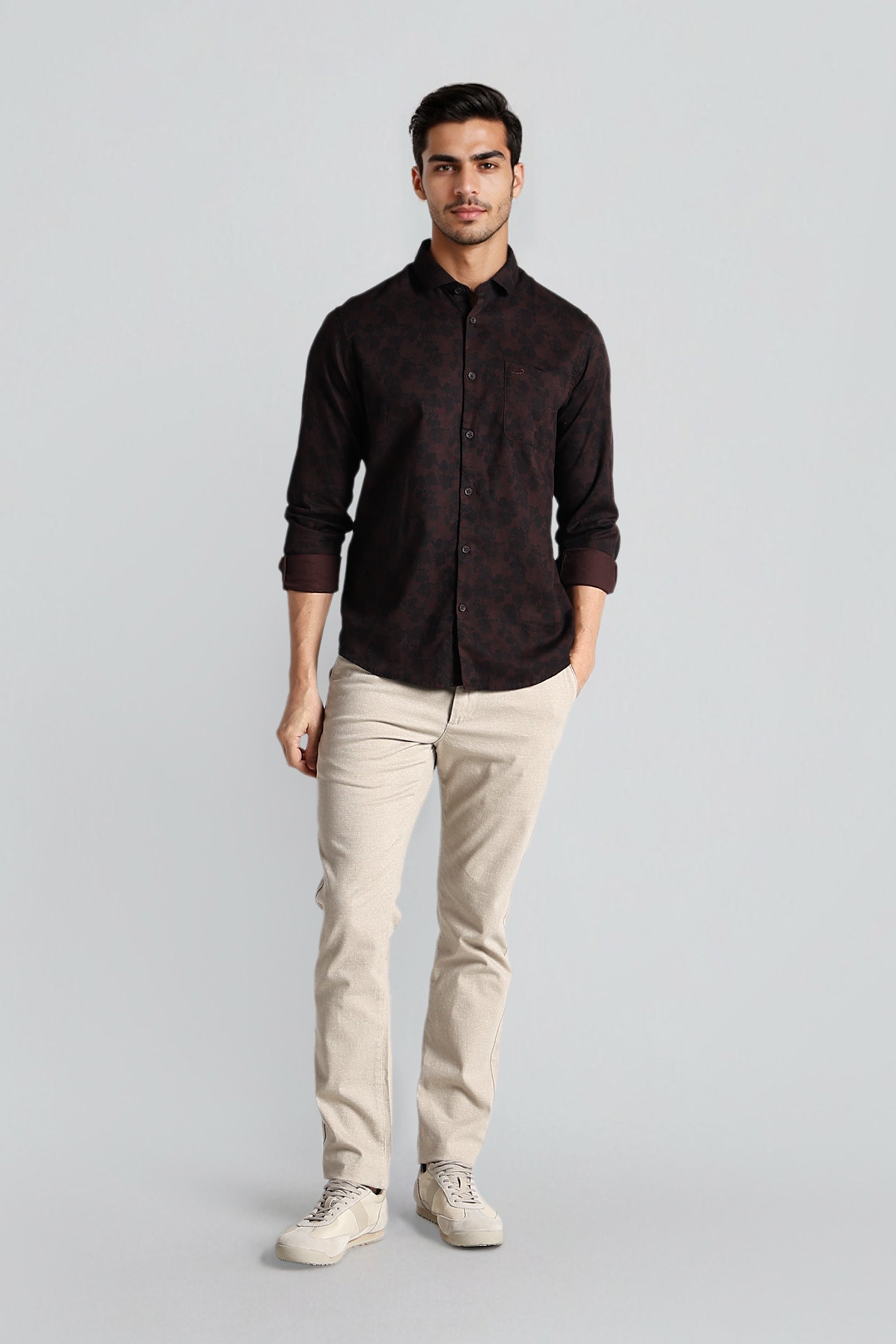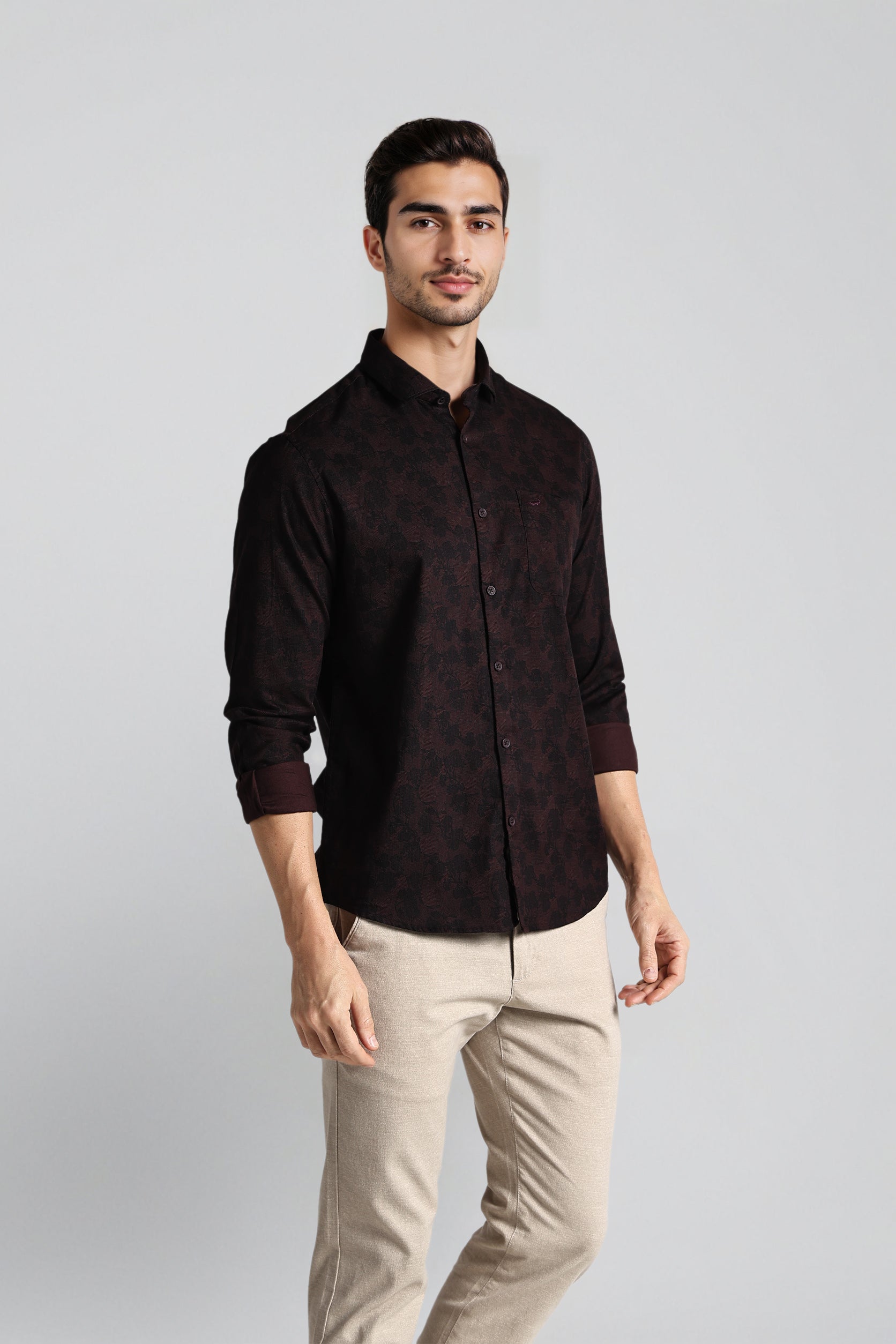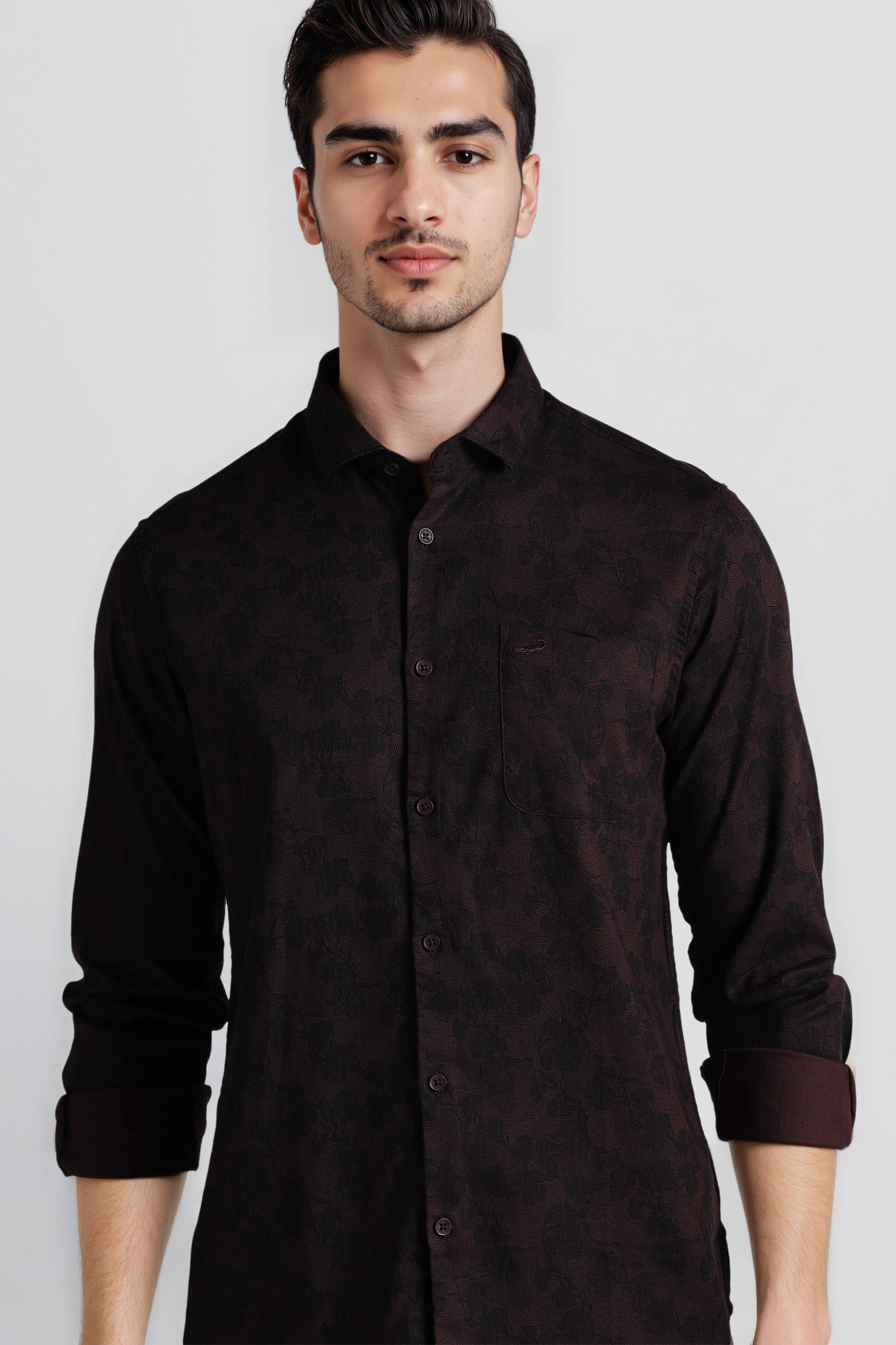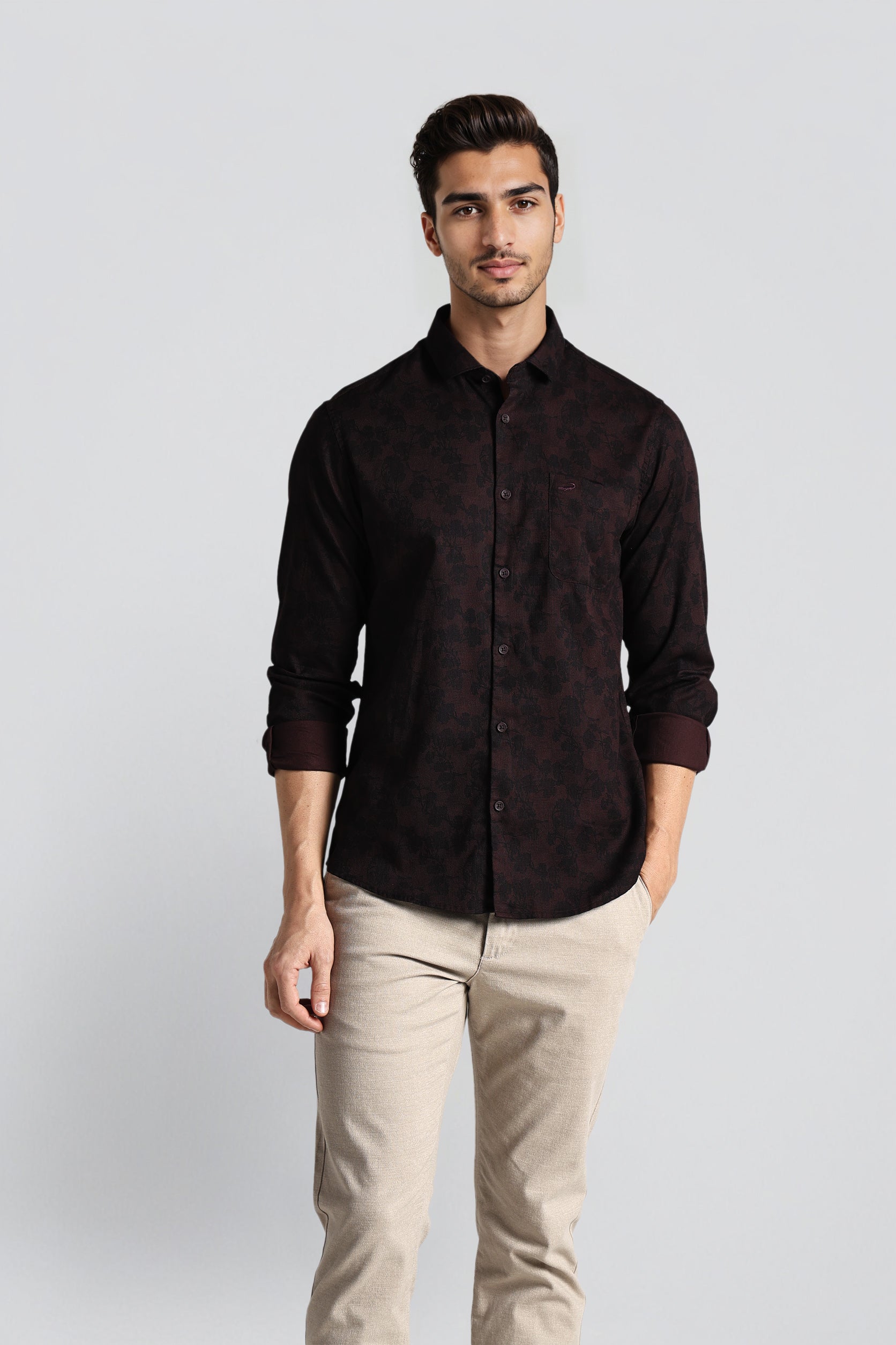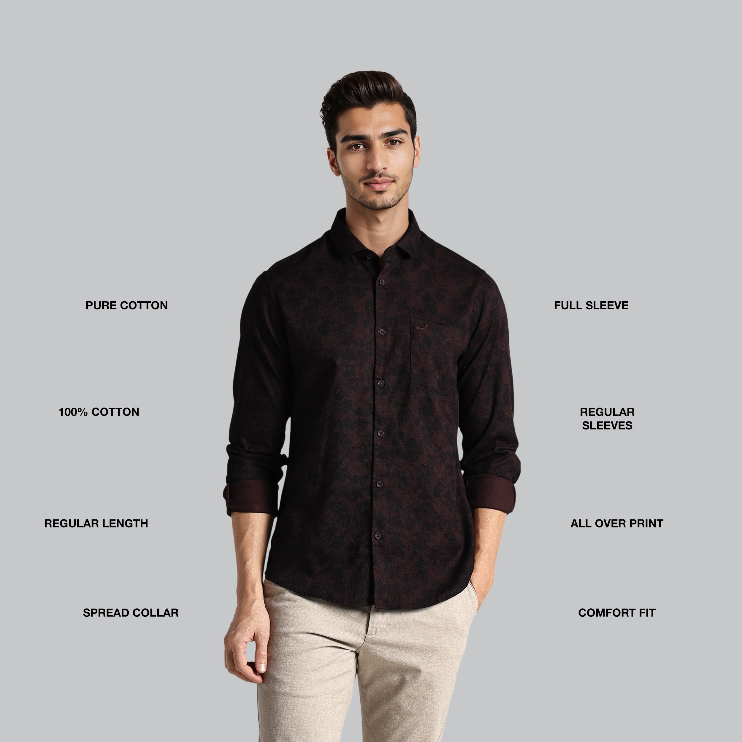 Maroon Shadow Lines Abstract Print Cotton Comfort fit Shirts