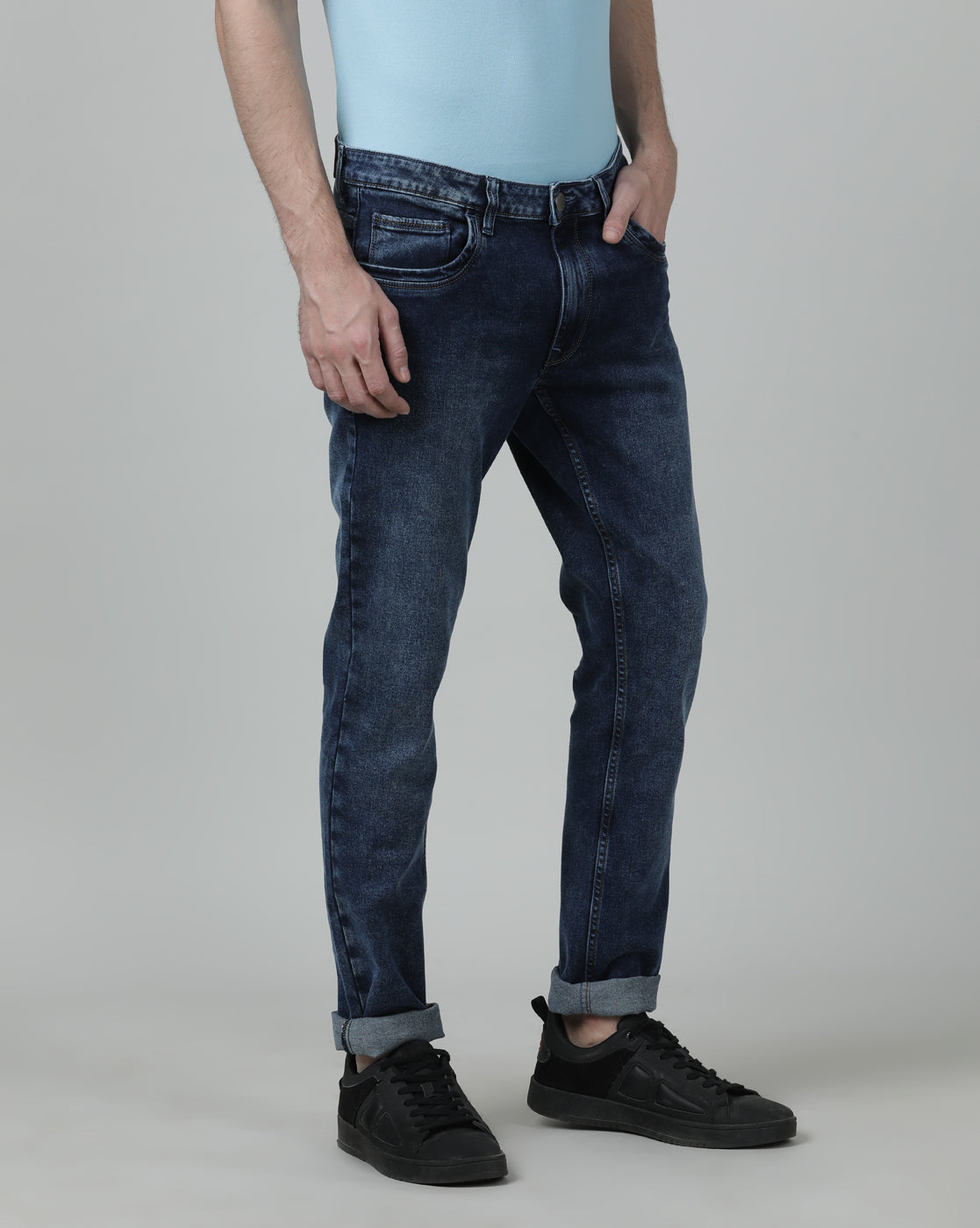 Medium Blue Solid Mid Rise Slim Tapered Jean