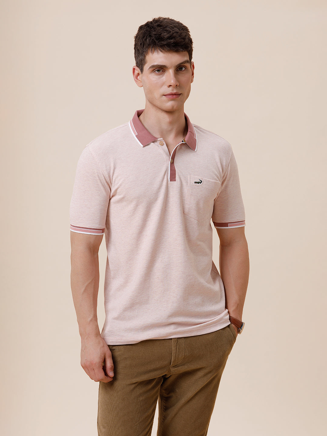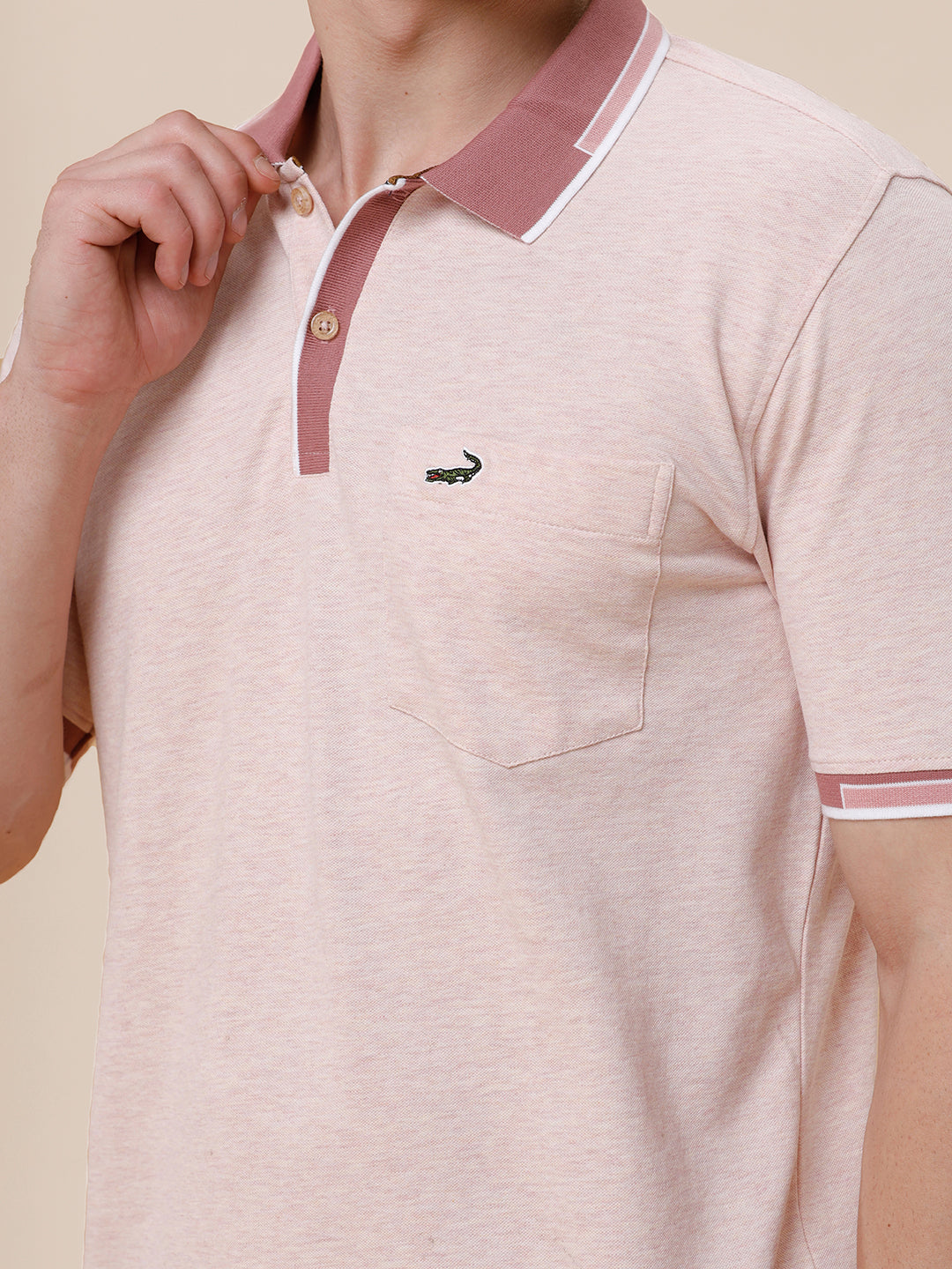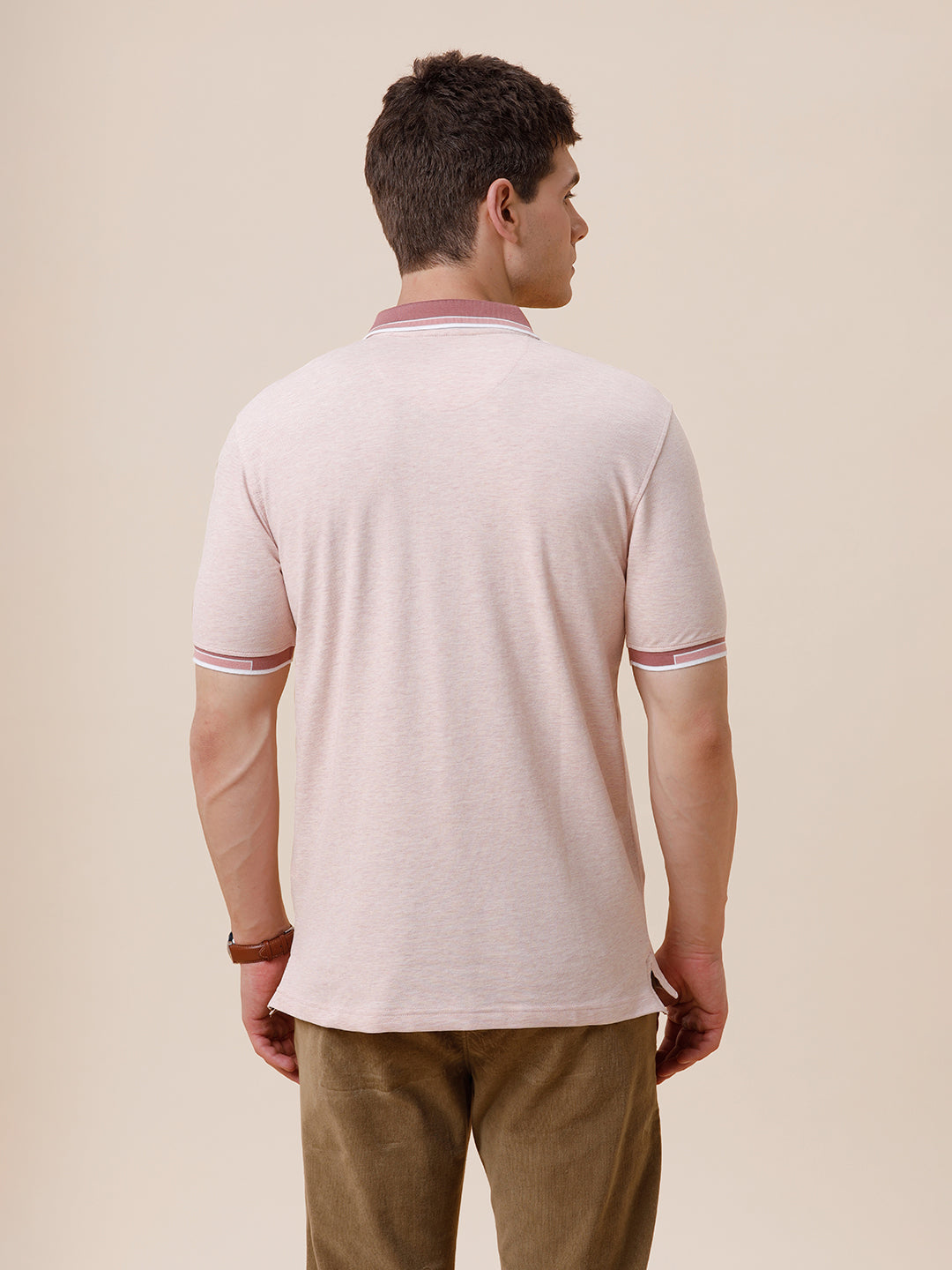 Melange Solid Polo Tshirt With Plated Collar & Cuff In Rose Melange