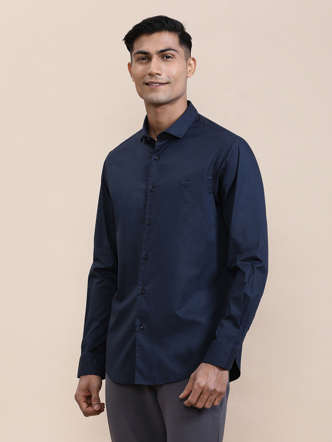 Mercerized Navy Stretch Full Sleeve Shirt