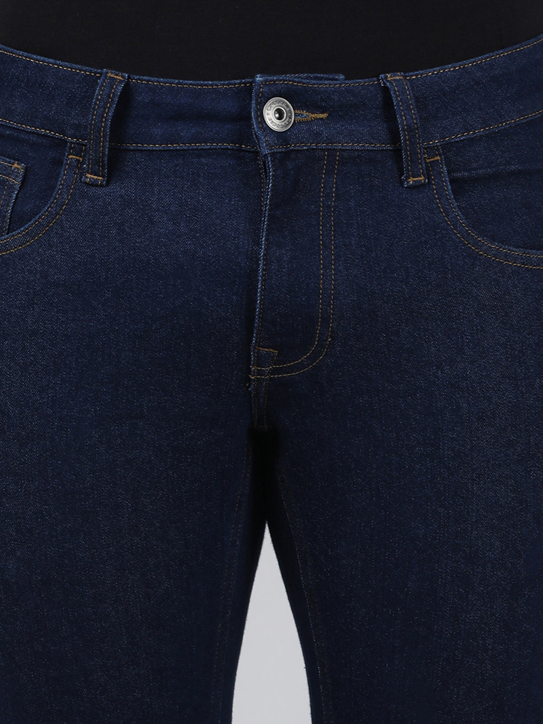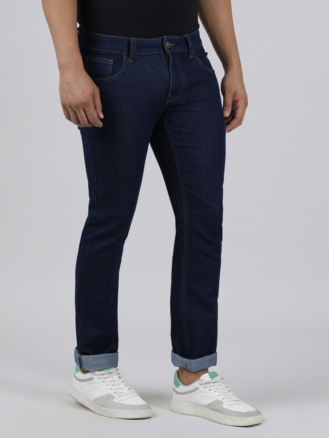 Mid Blue Solid Mid Rise Casual Slim Fit Jean