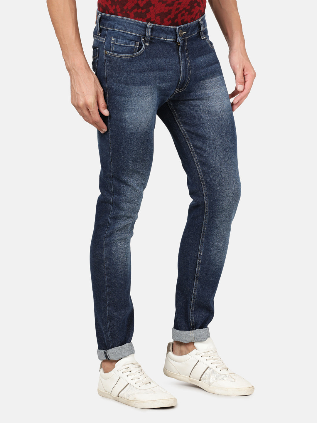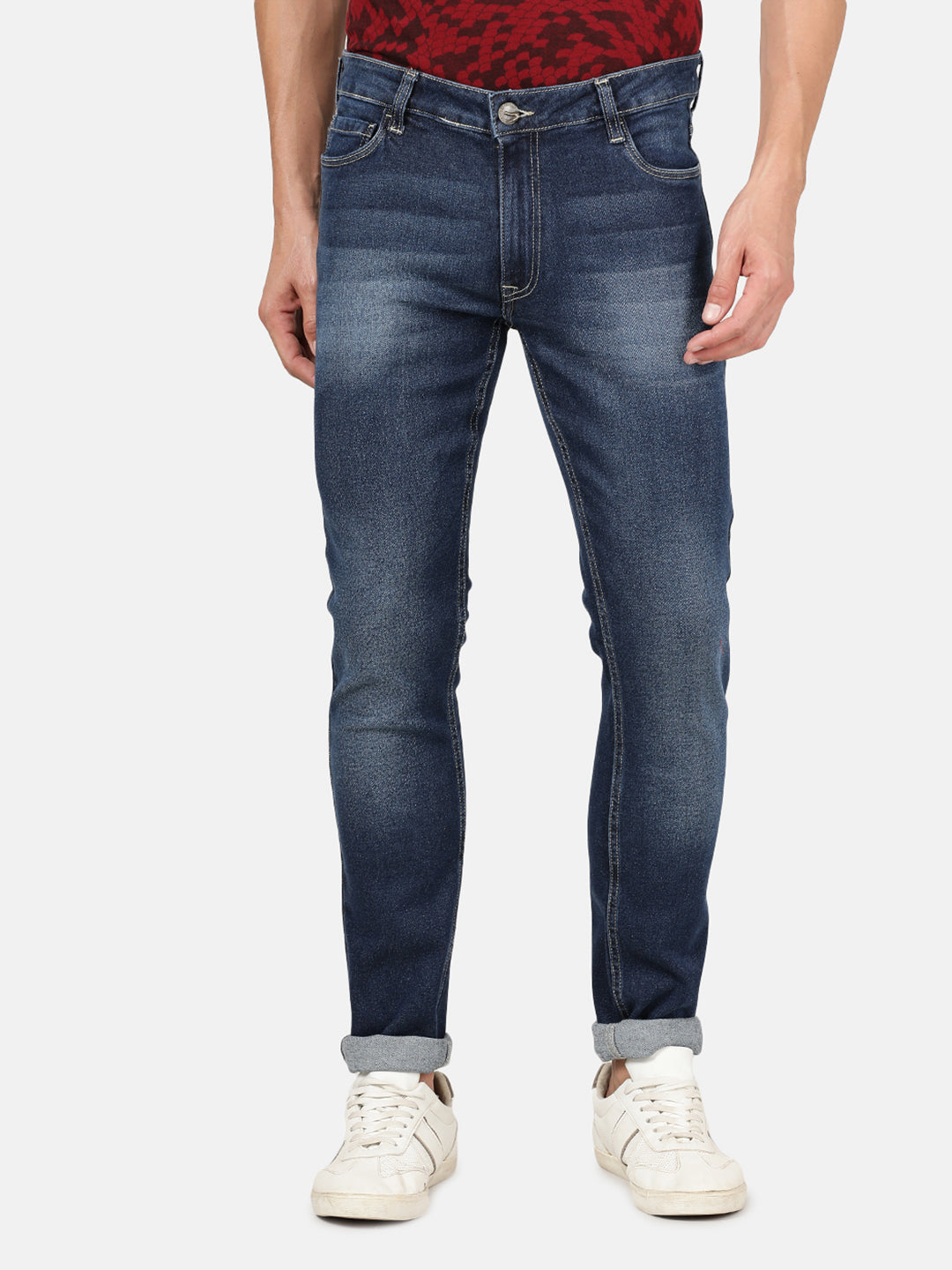 Mid Blue Solid Mid Rise Slim Tapered Casual Jean