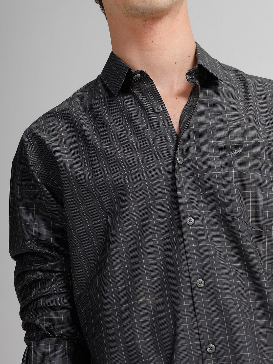 Grey Monochrome Checks Polished Attire Comfort Fit Shirts