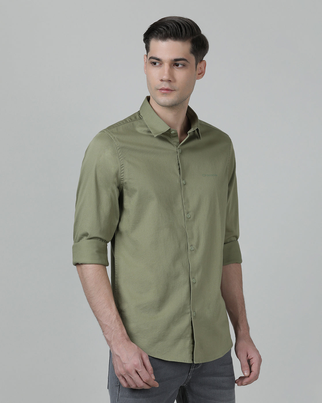 Moss Green Solid Full Sleeve Shirt