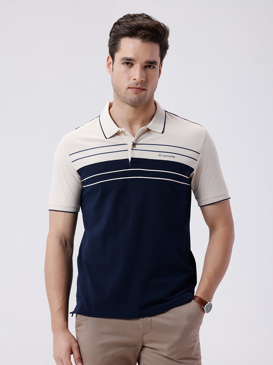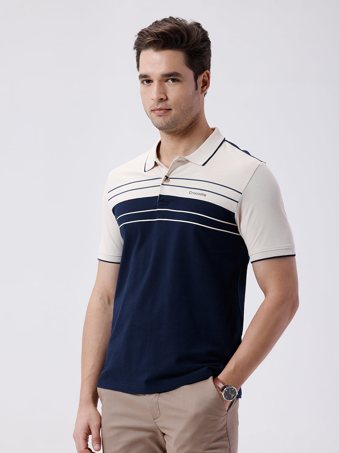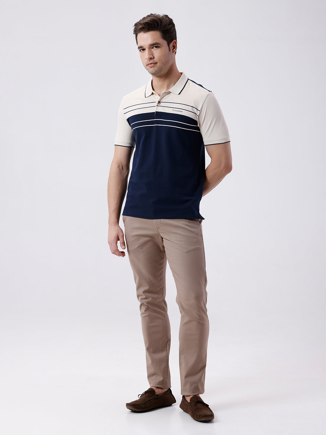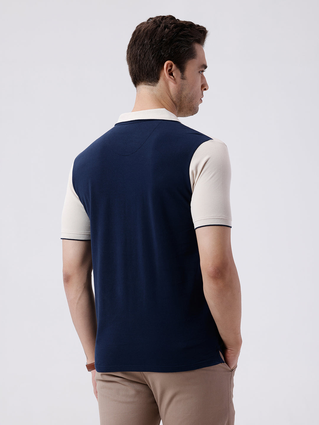 Navy Colour Blocking Slim Fit Polo Tshirts
