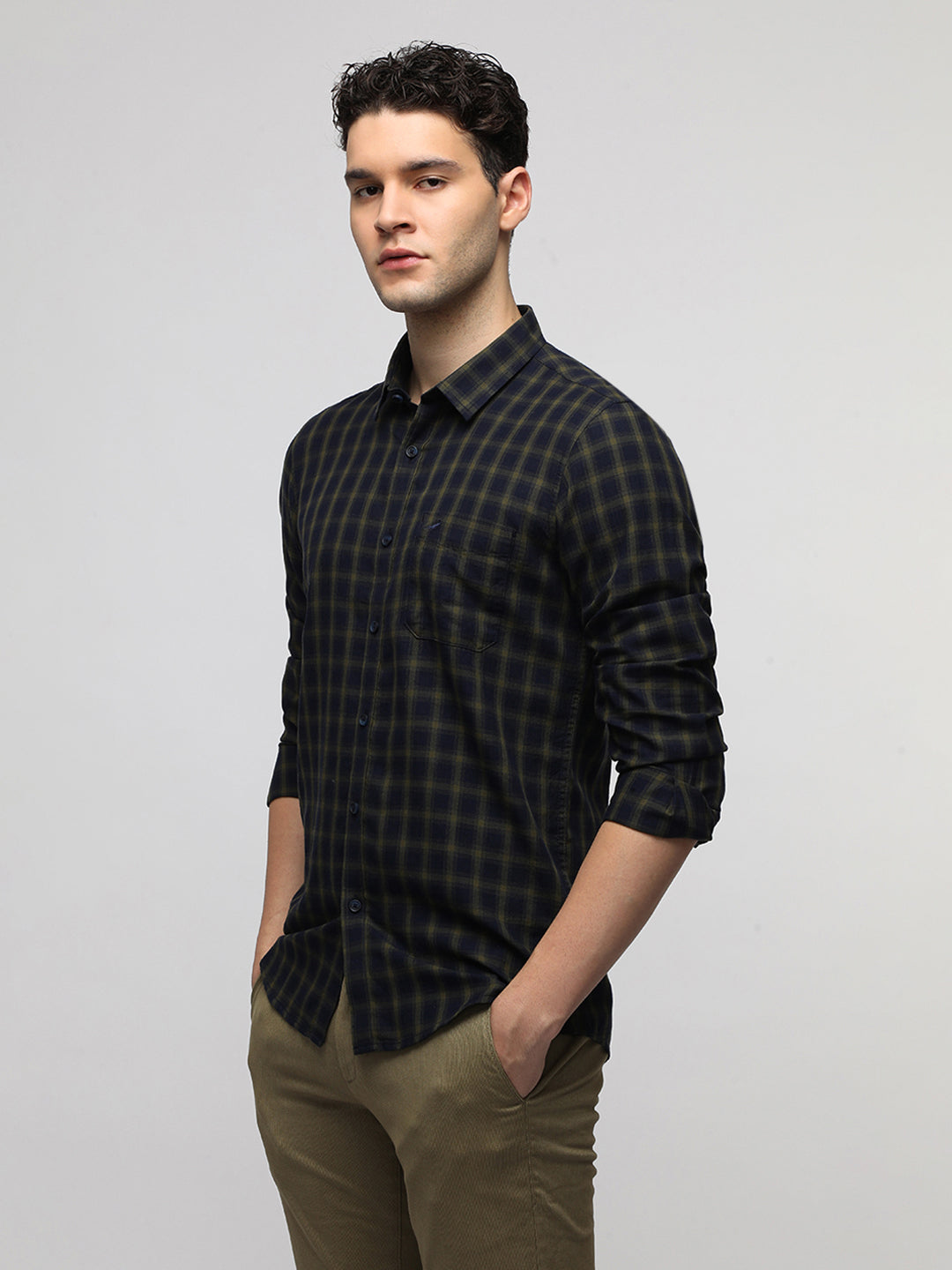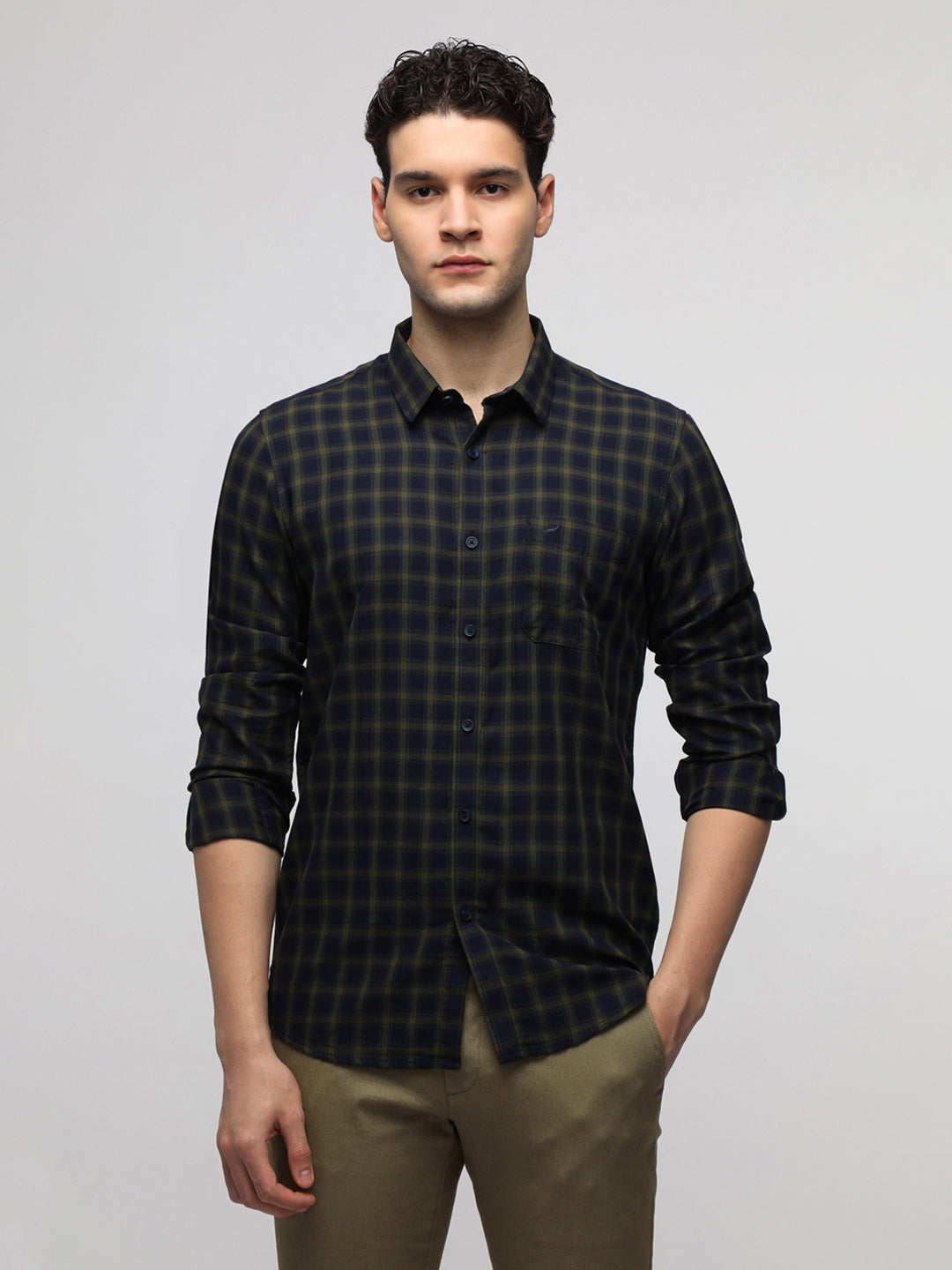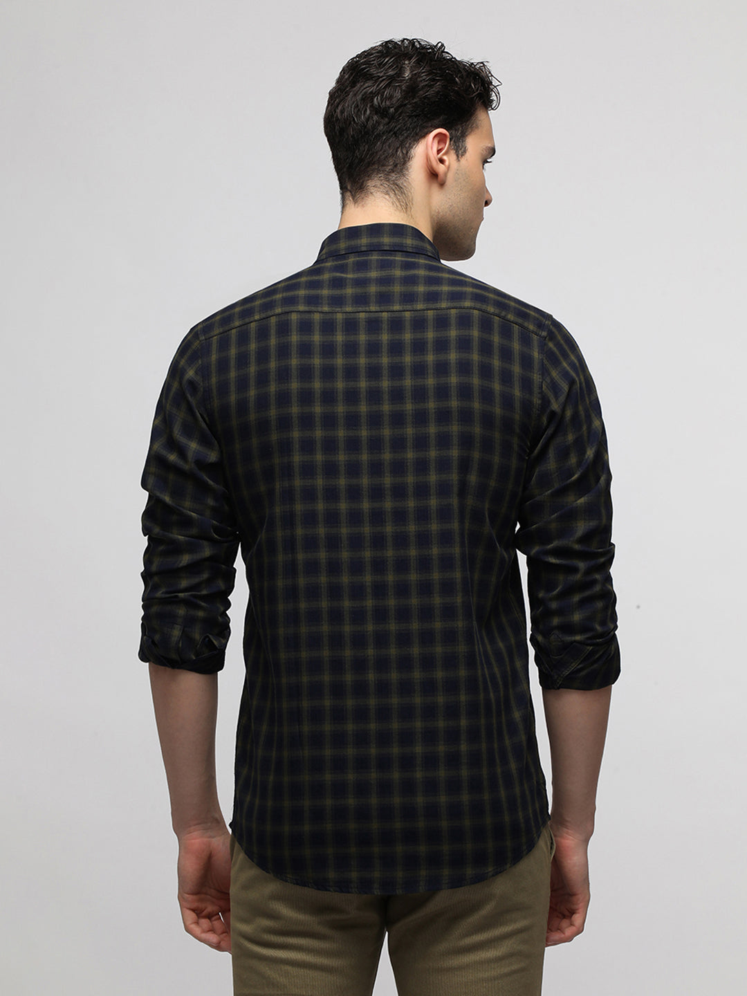 Navy Cotton Plaid Shirt