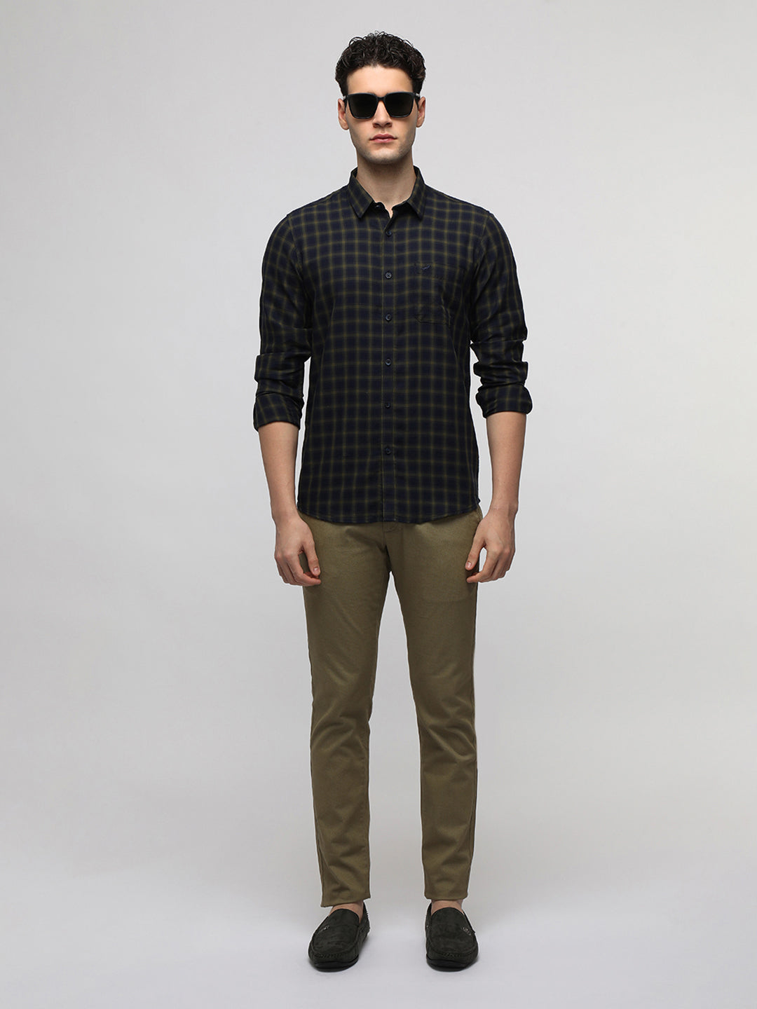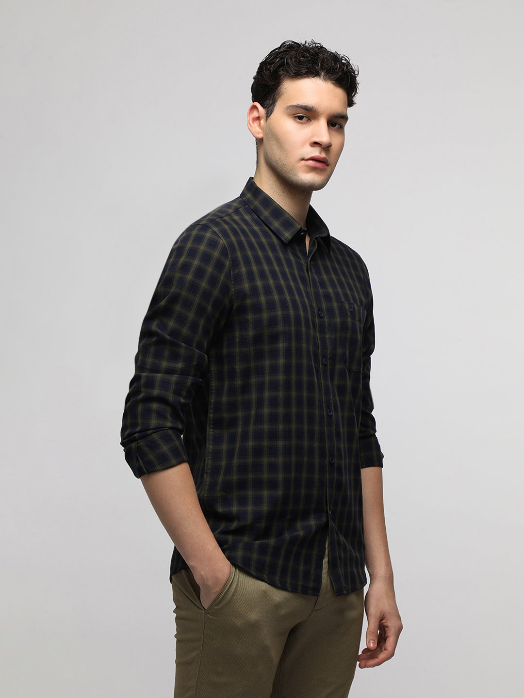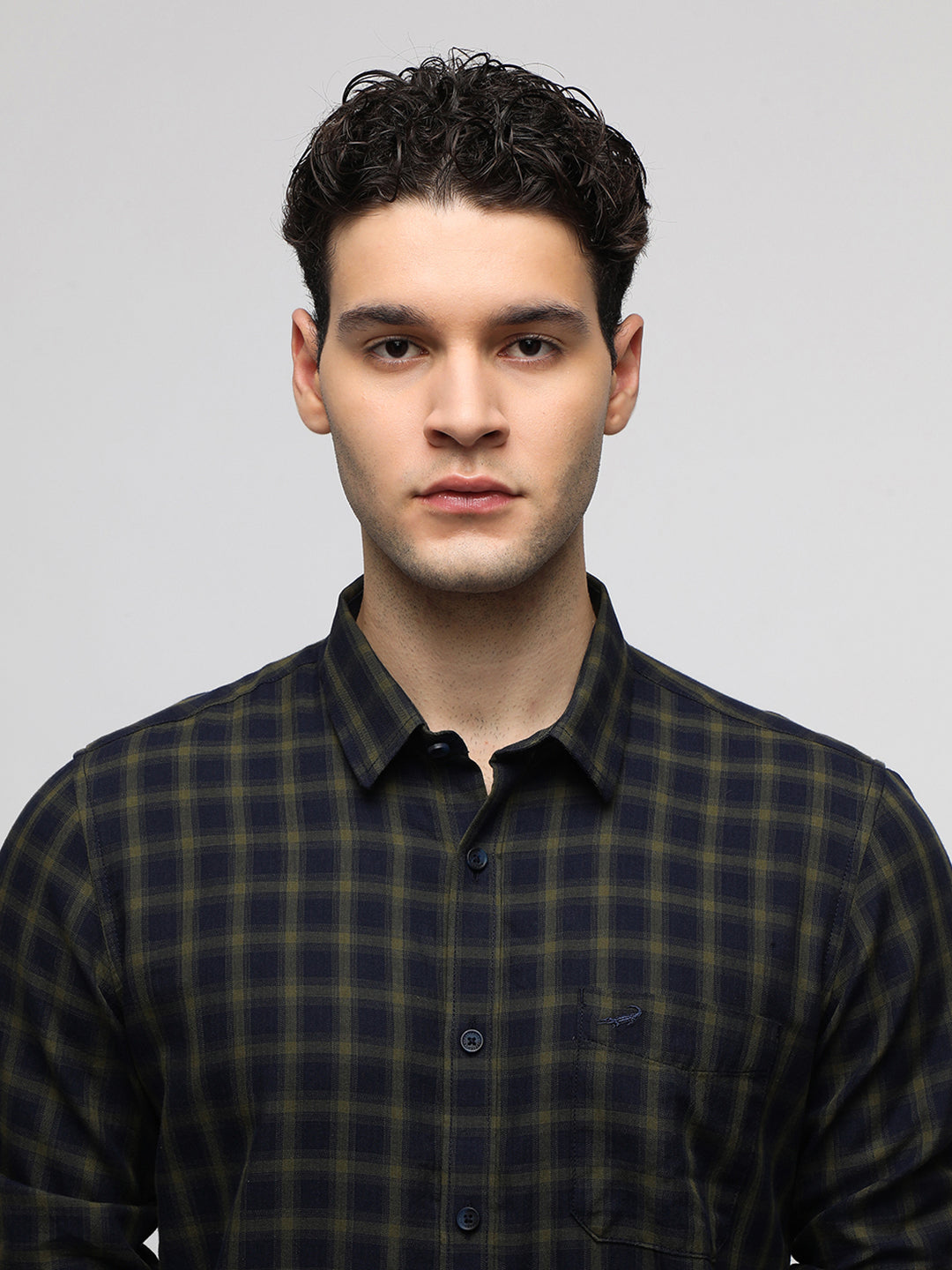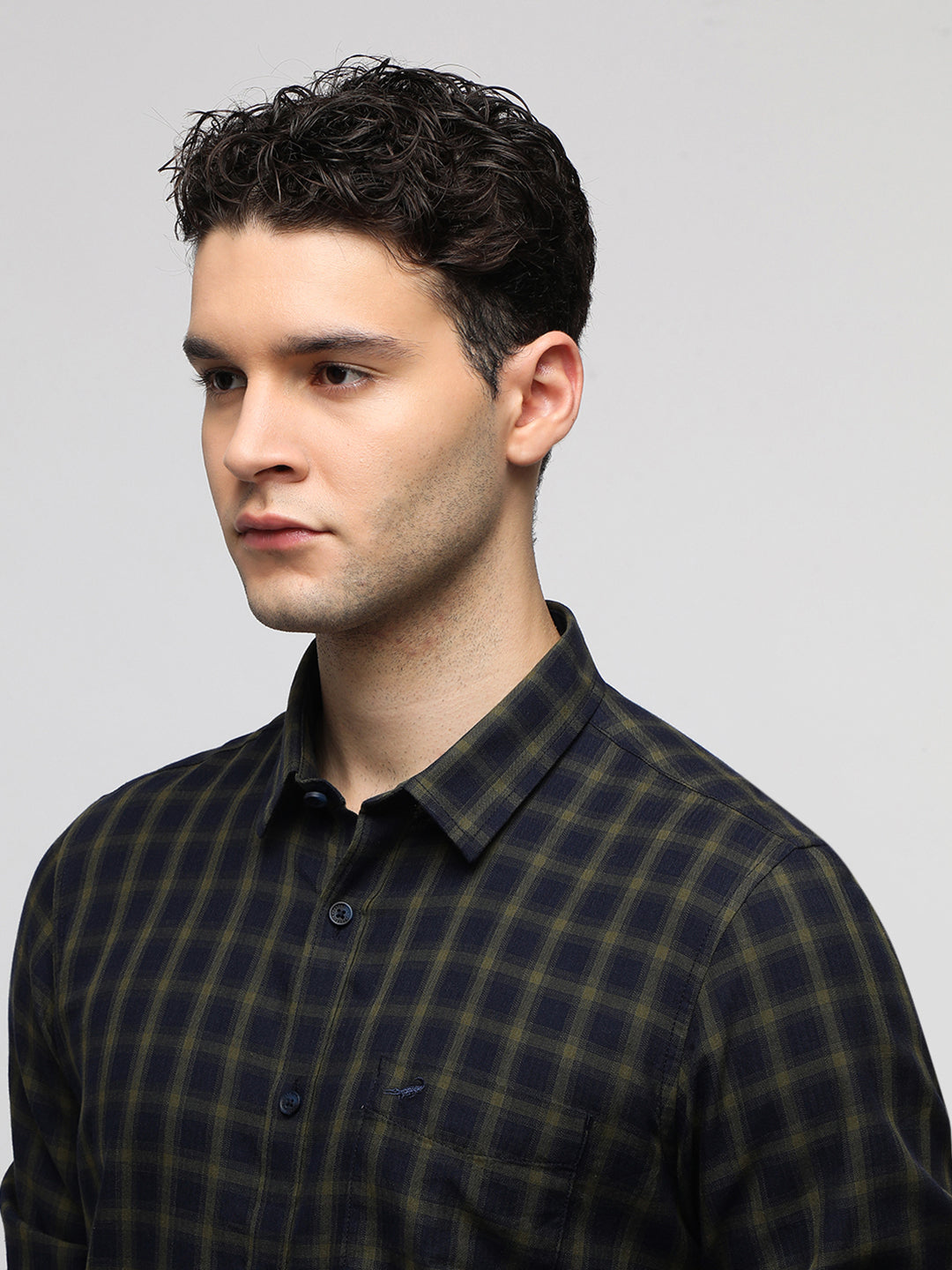 Navy Cotton Plaid Shirt