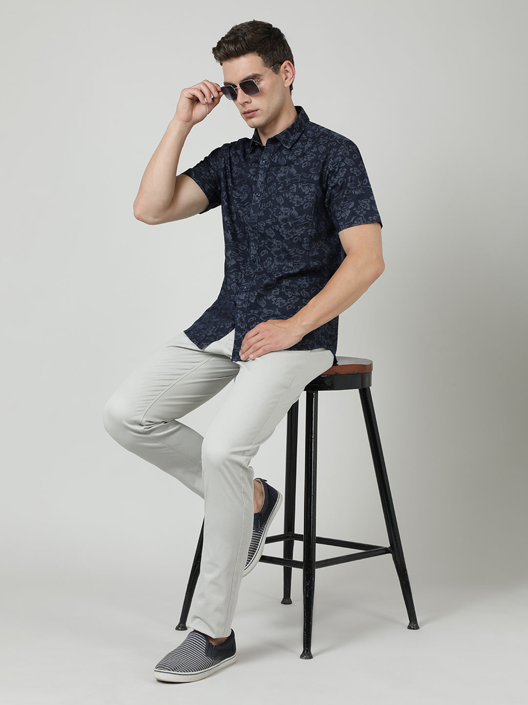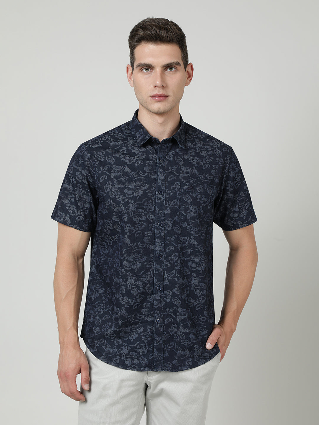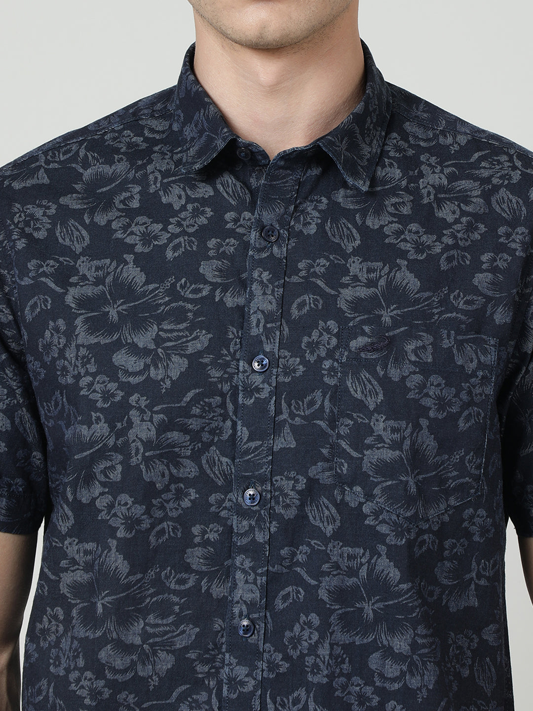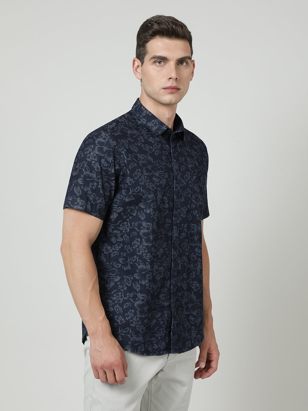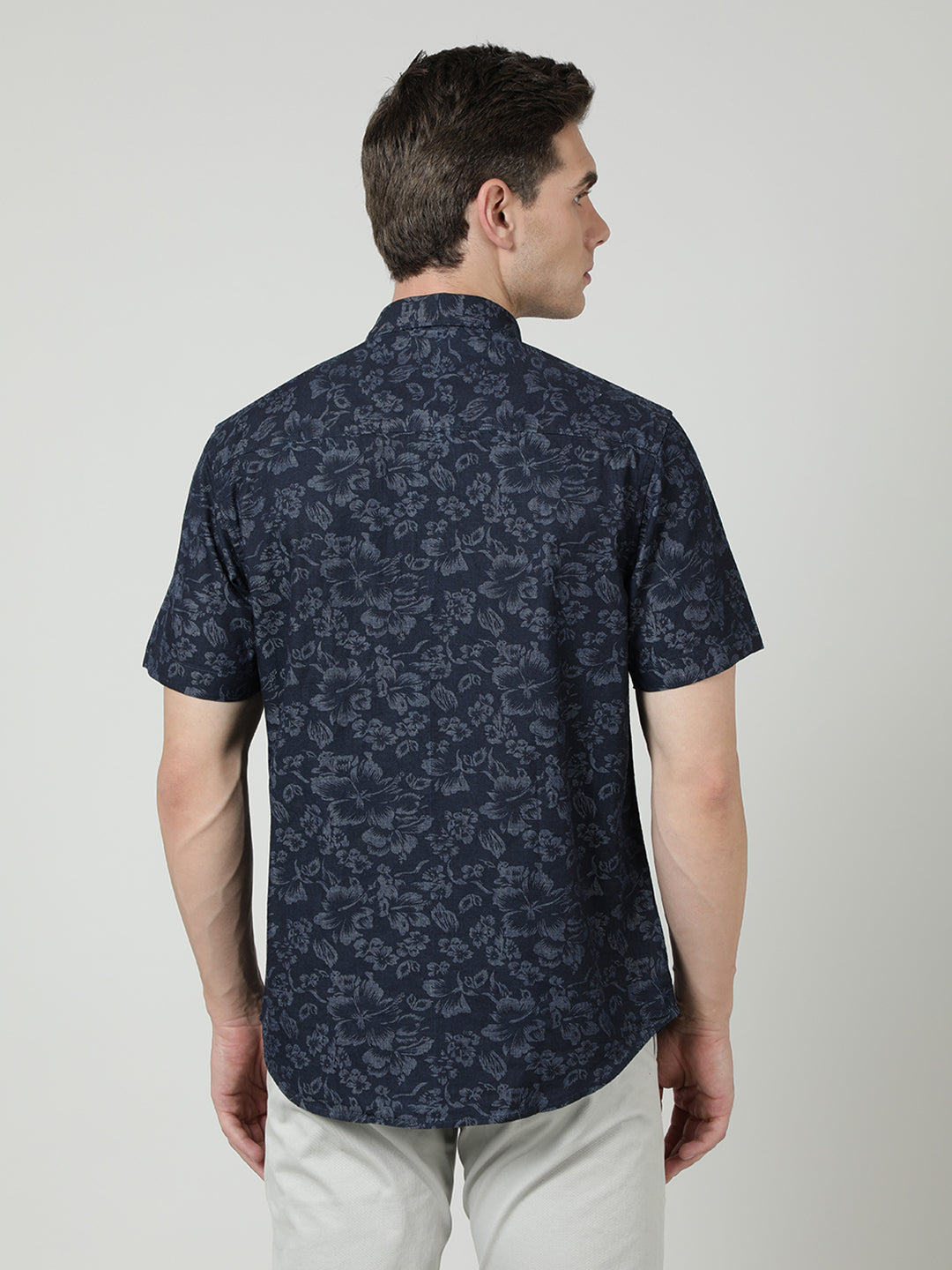 Navy Printed Half Sleeve 100% Cotton Shirt