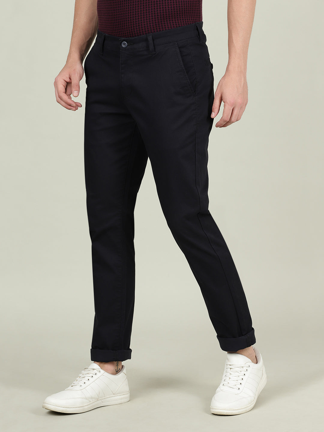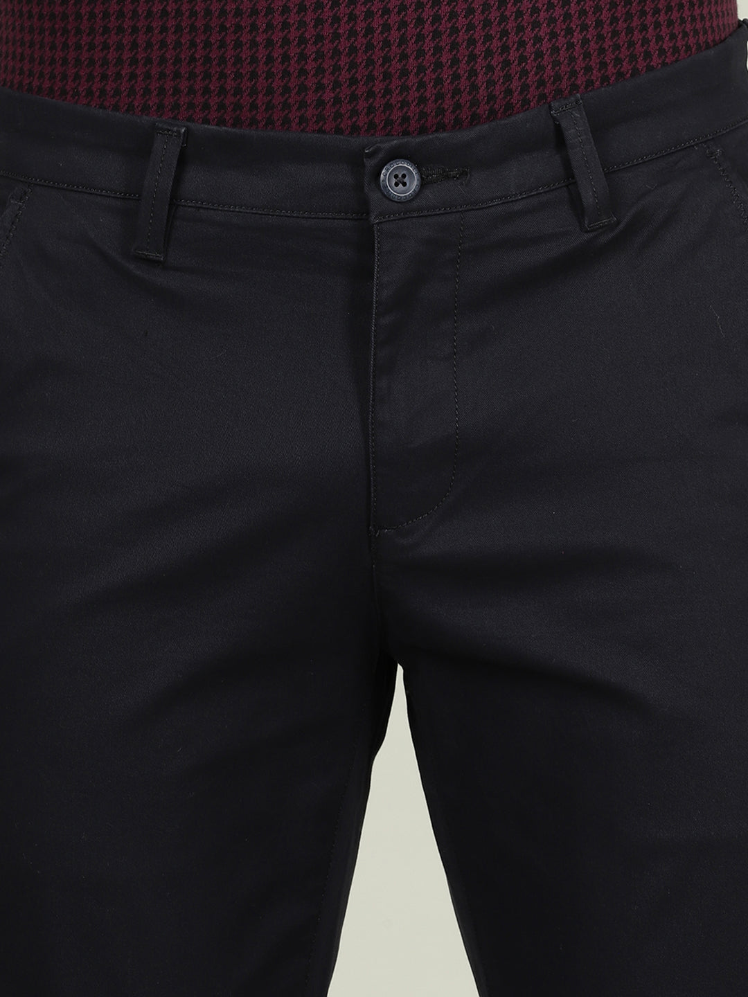 Navy Solid Slim Fit Casual Trouser