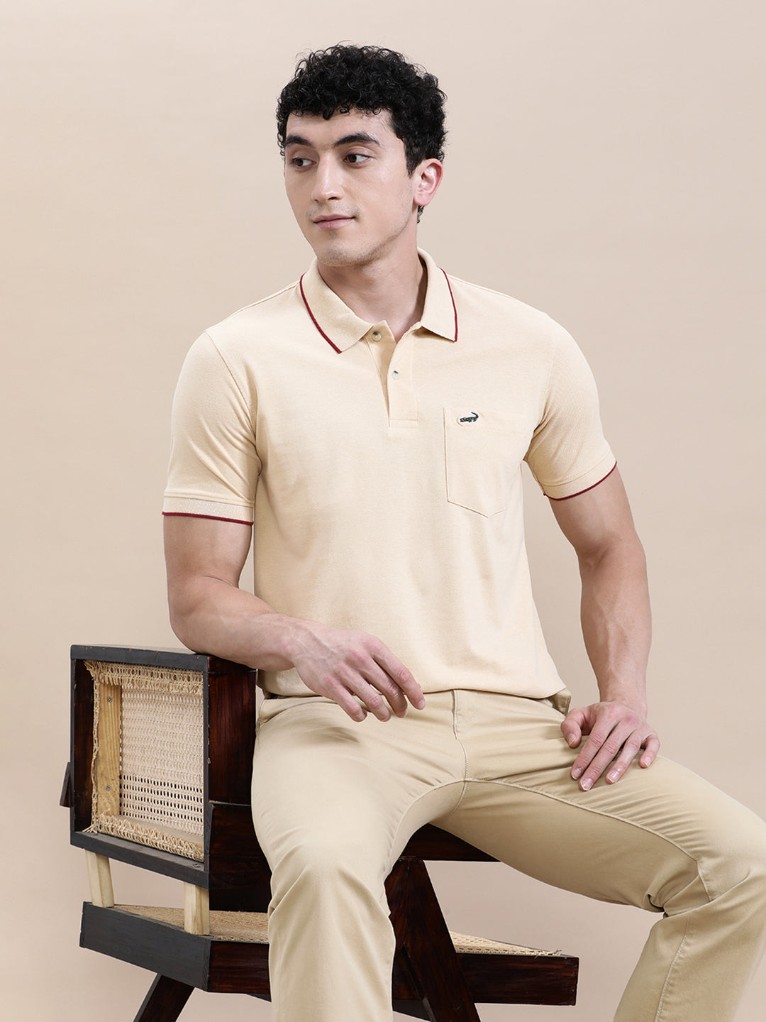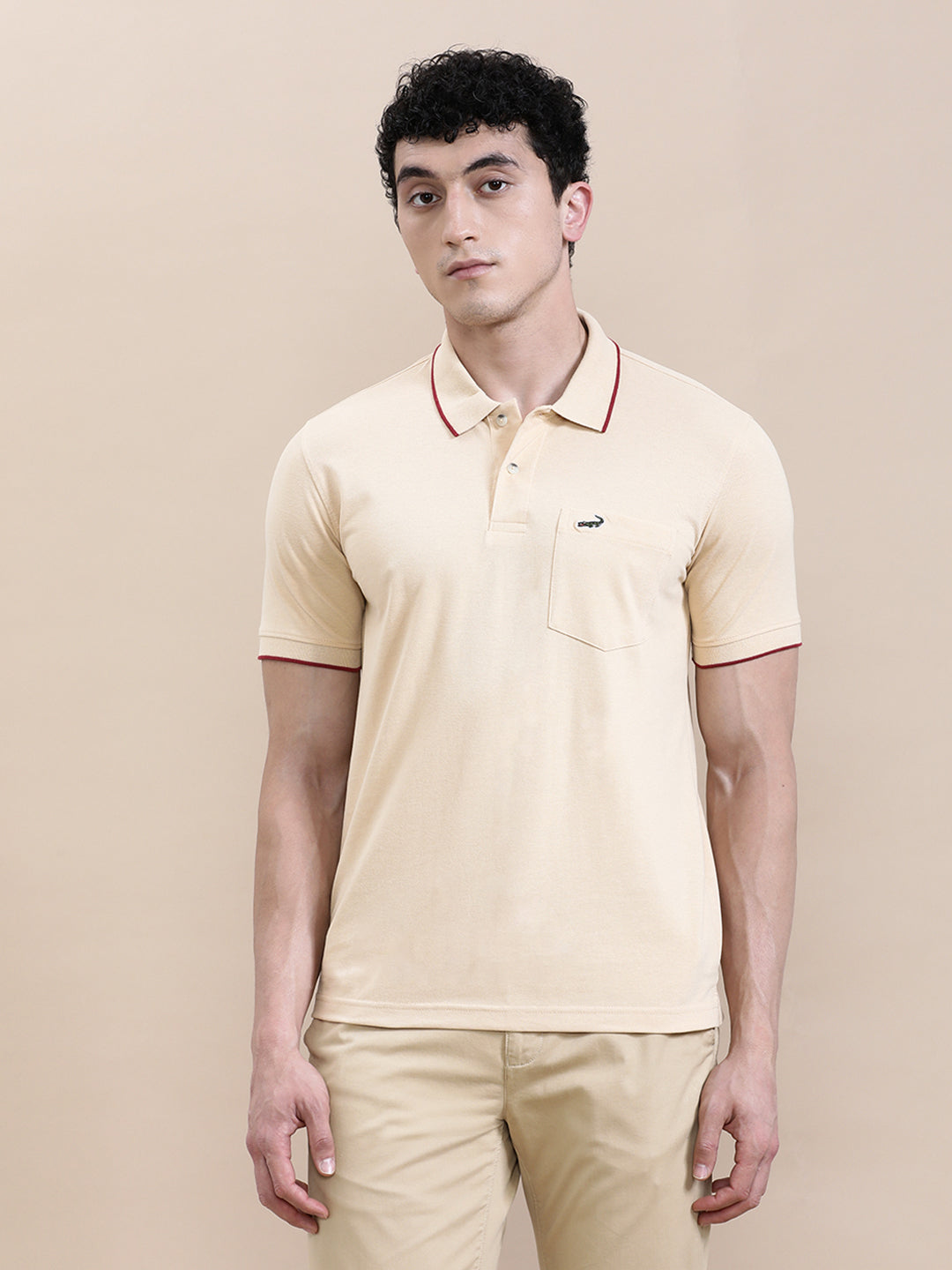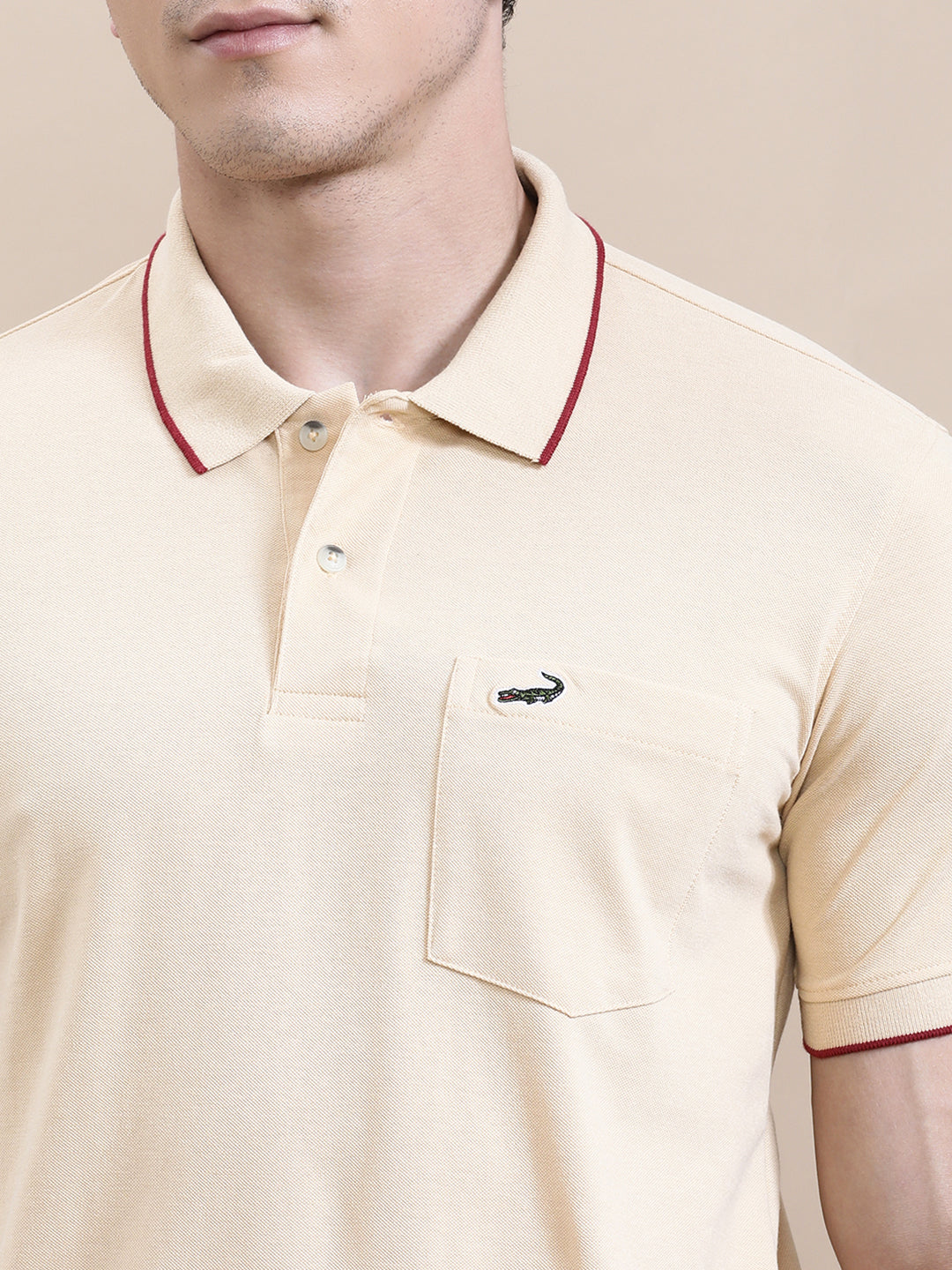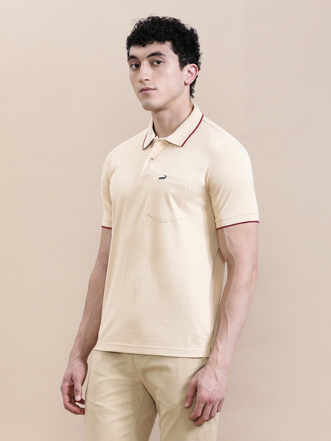 Oat Milk Beige Solid Polo T-Shirt with Pocket