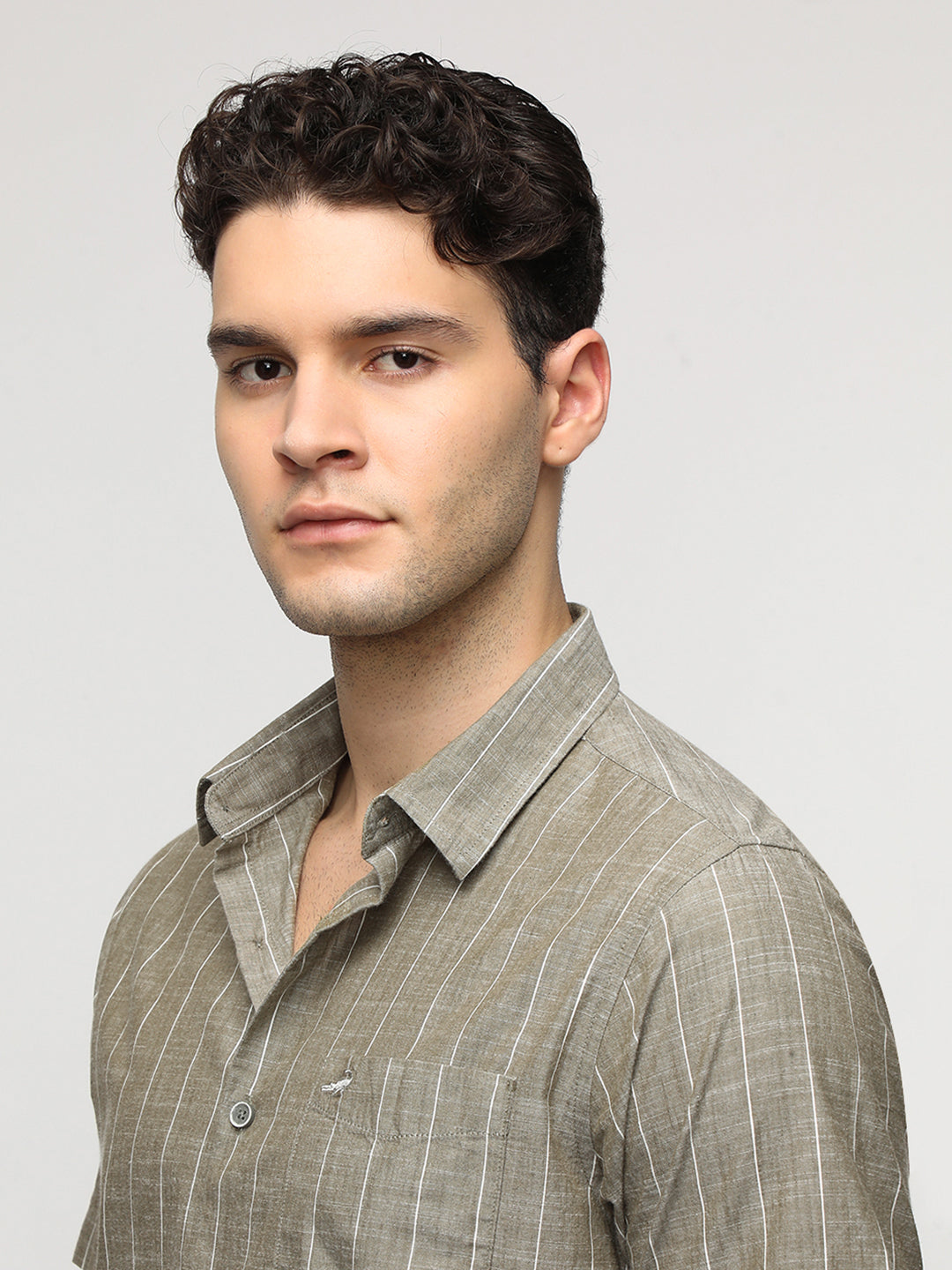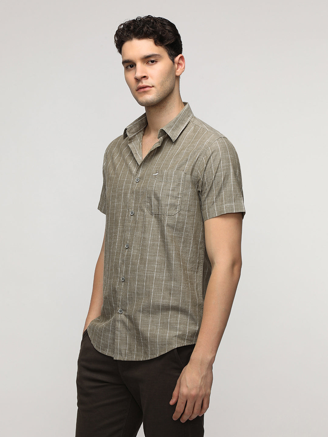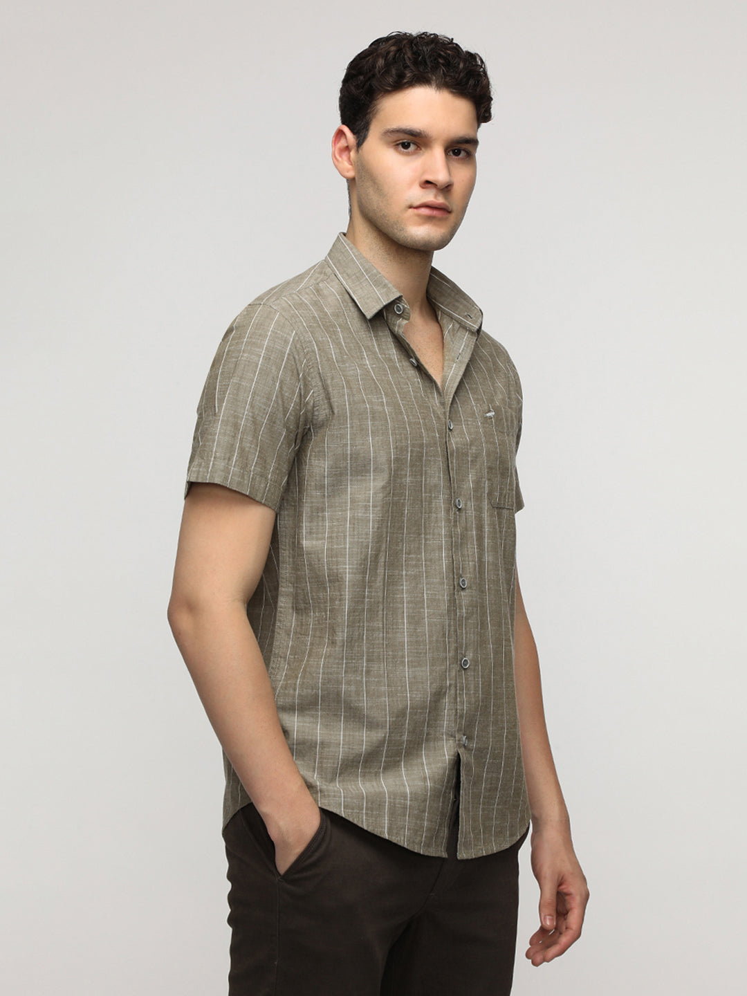 Olive Textured Stripe Shirt