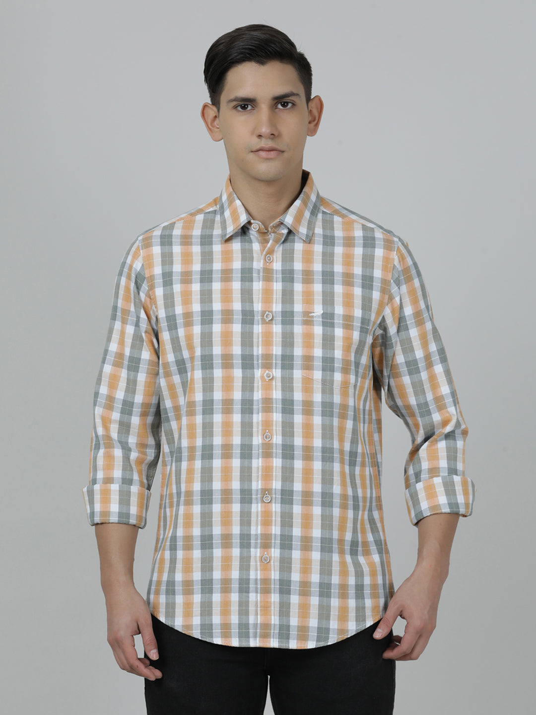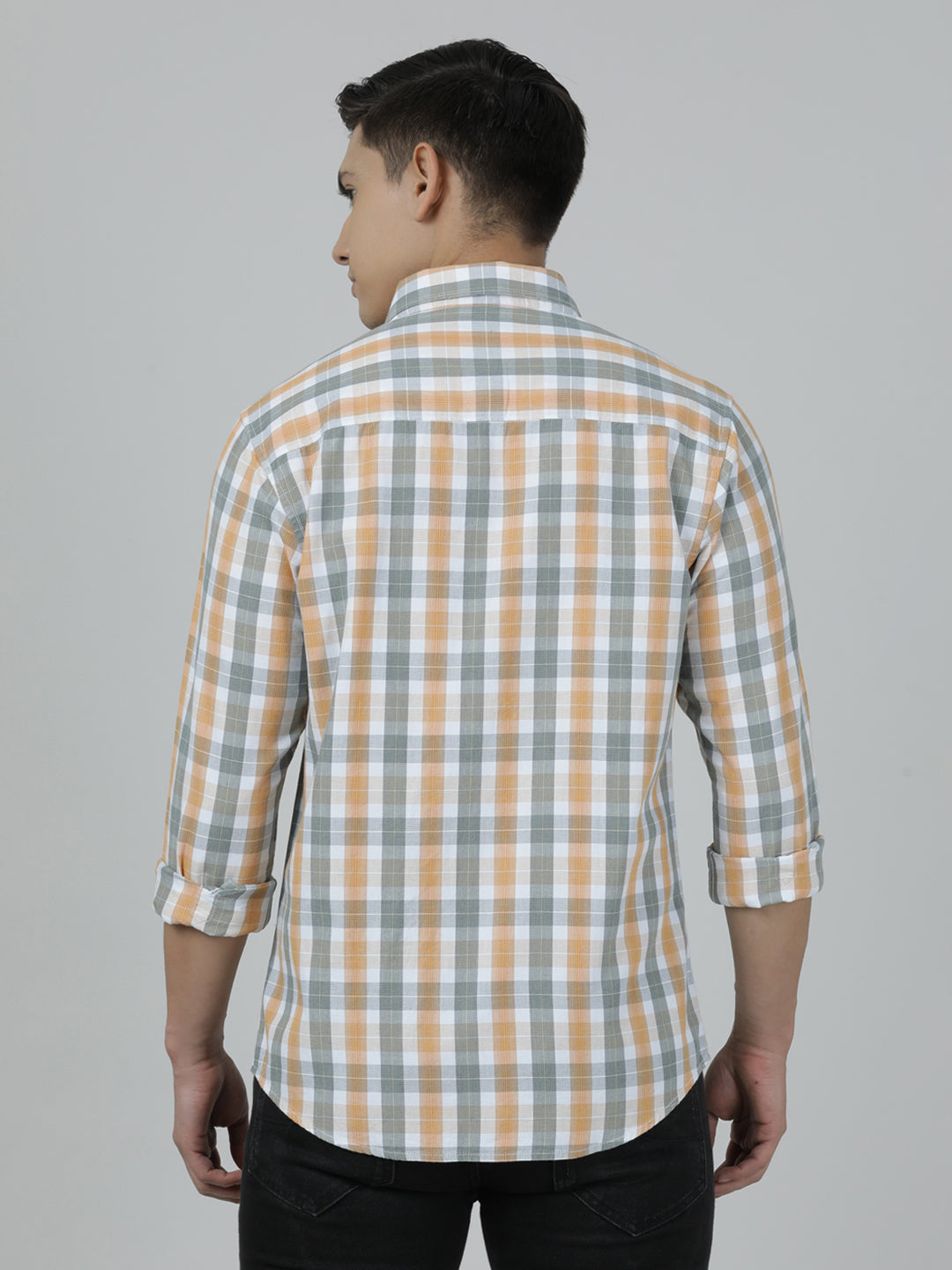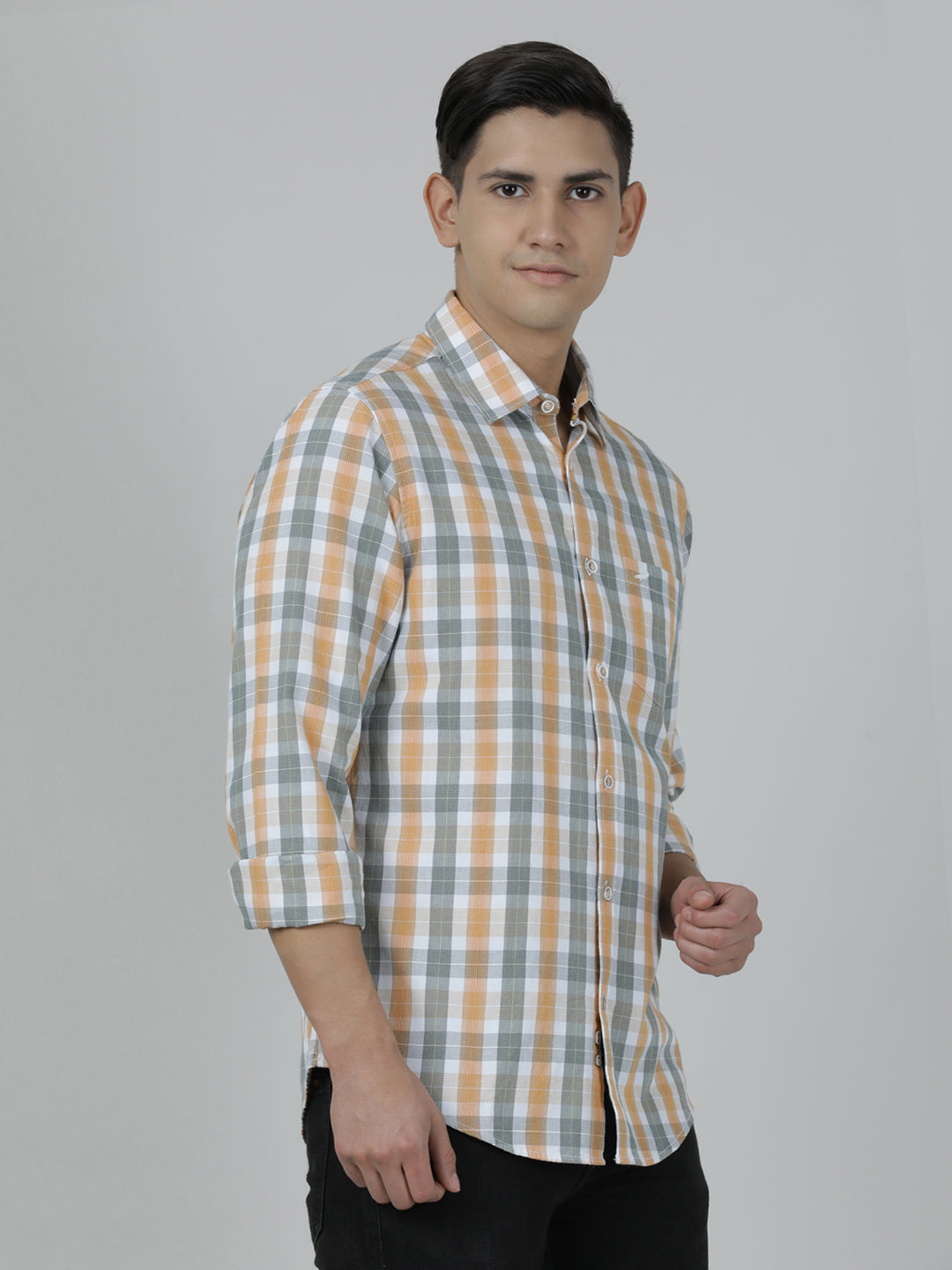 Orange Checked Casual Full Sleeve 100% Cotton Shirt