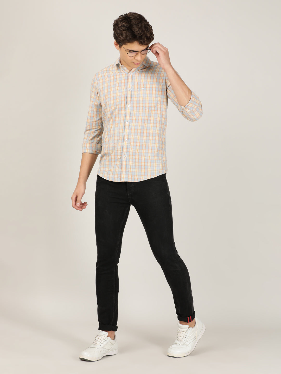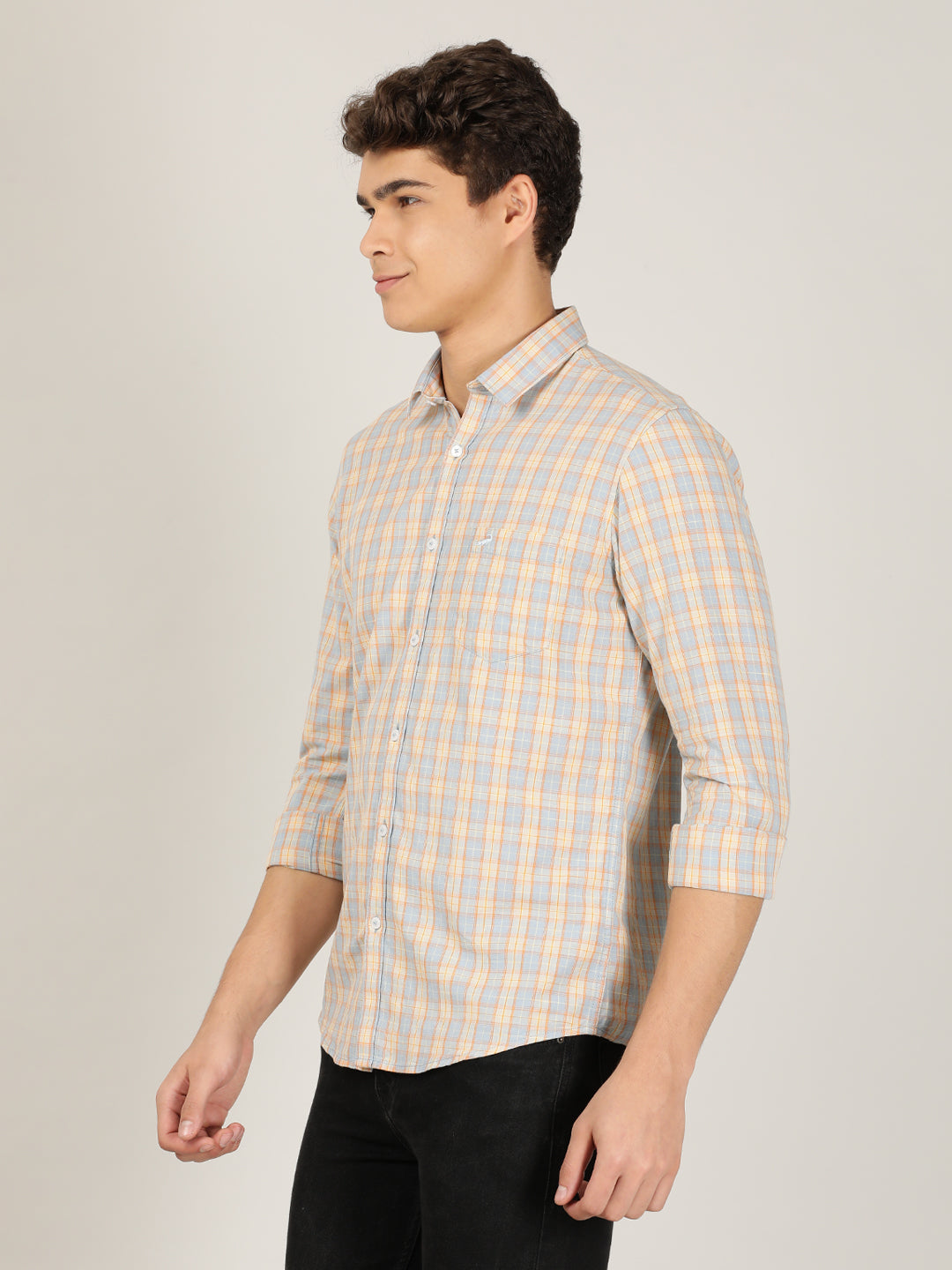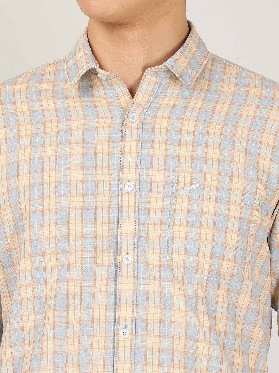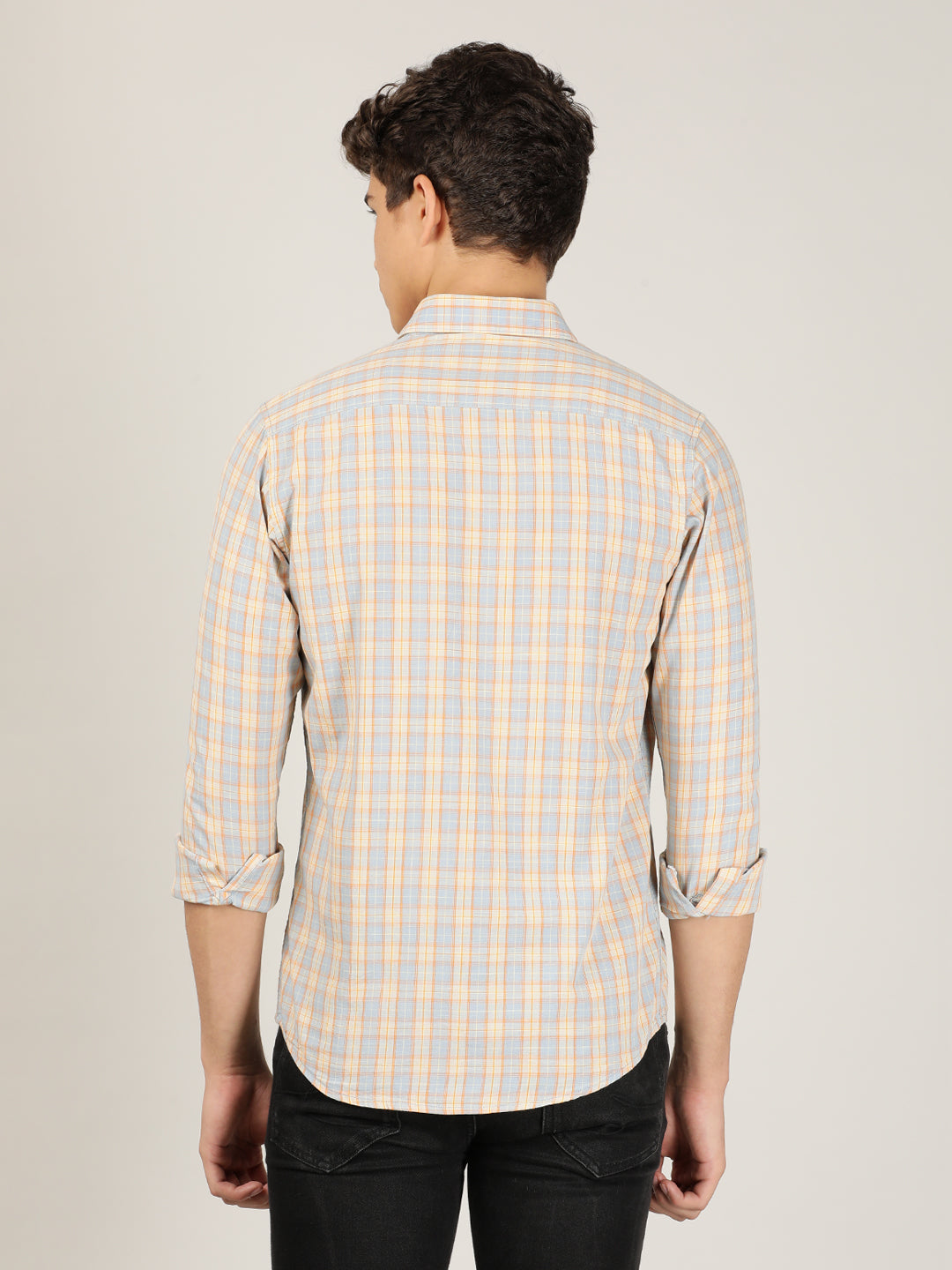 Orange Checked Full Sleeve 100% Cotton Casual Shirt