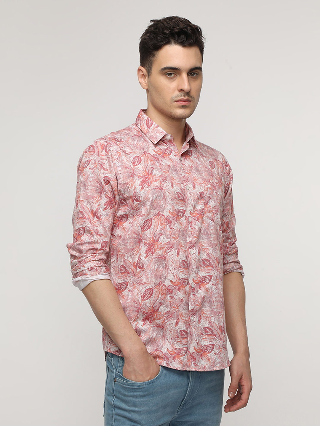 Orange Grunge Floral Premium Printed Shirt