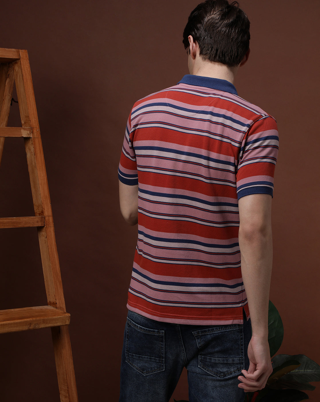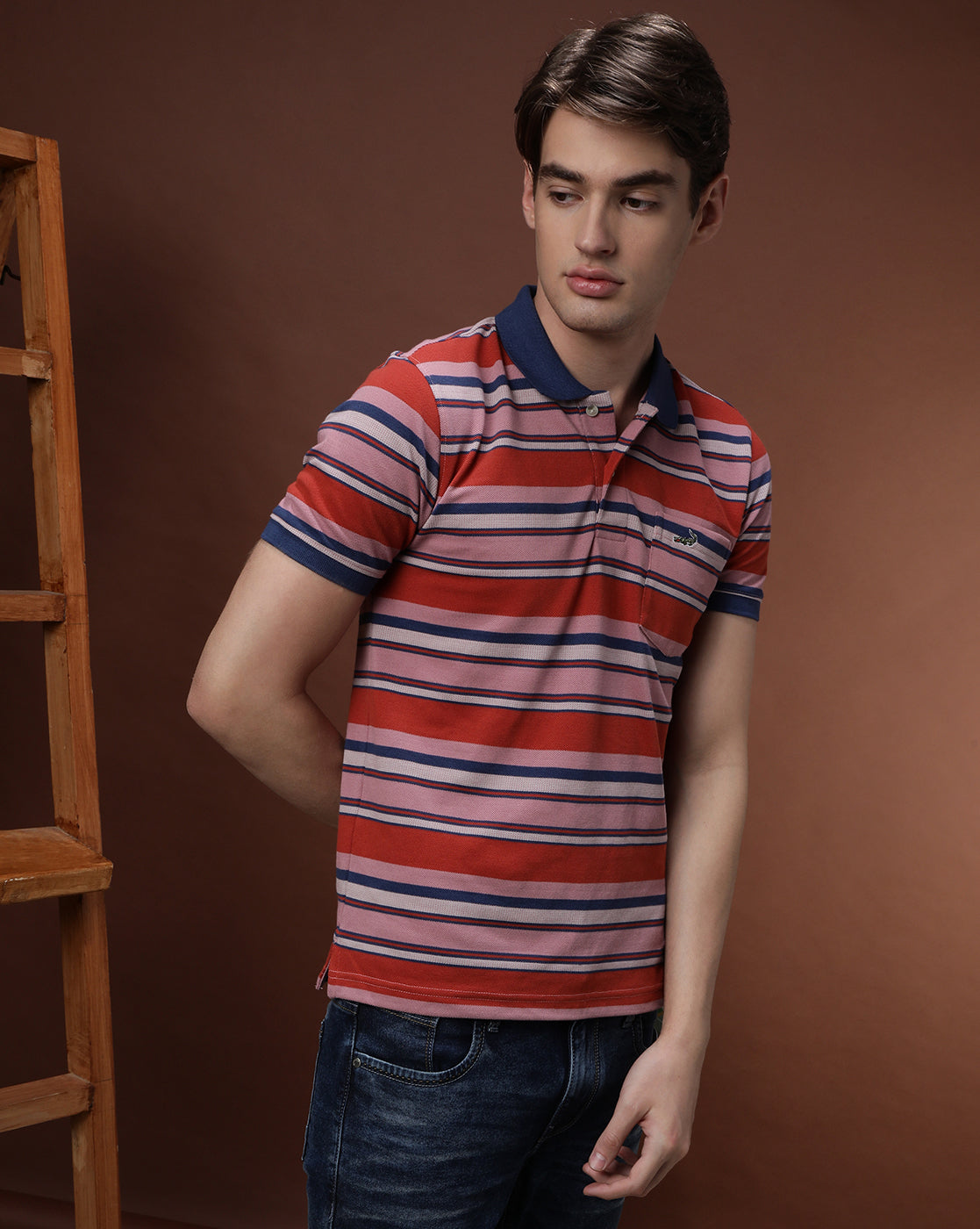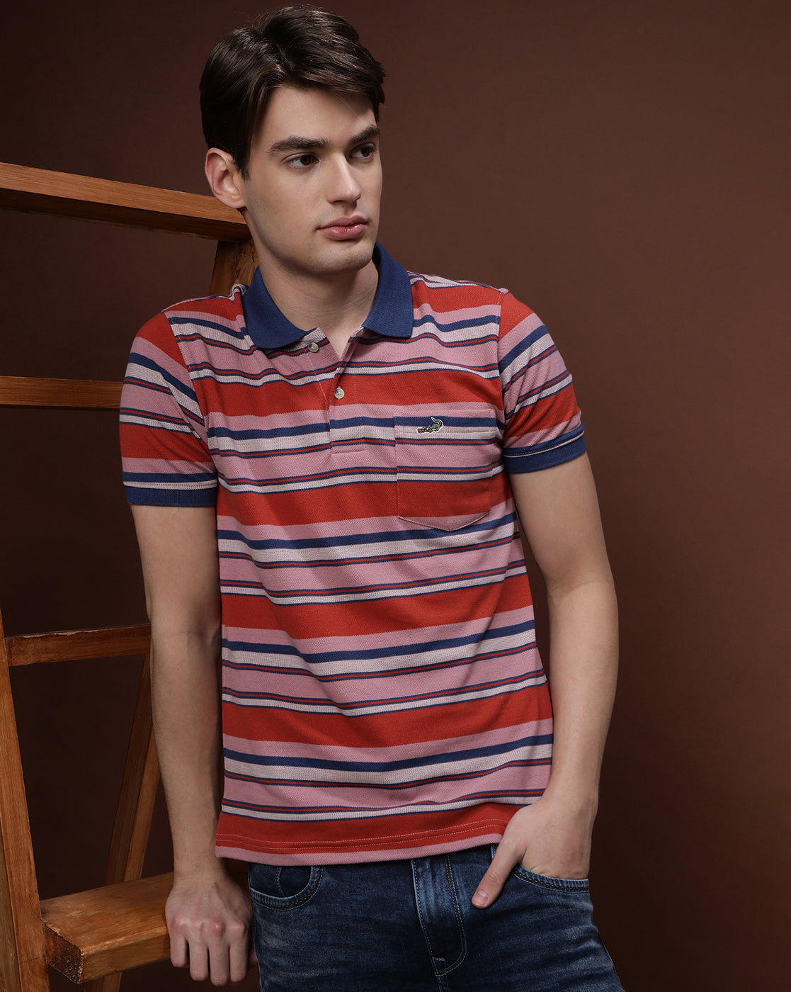 Orange Navy Striped Polo T-Shirt