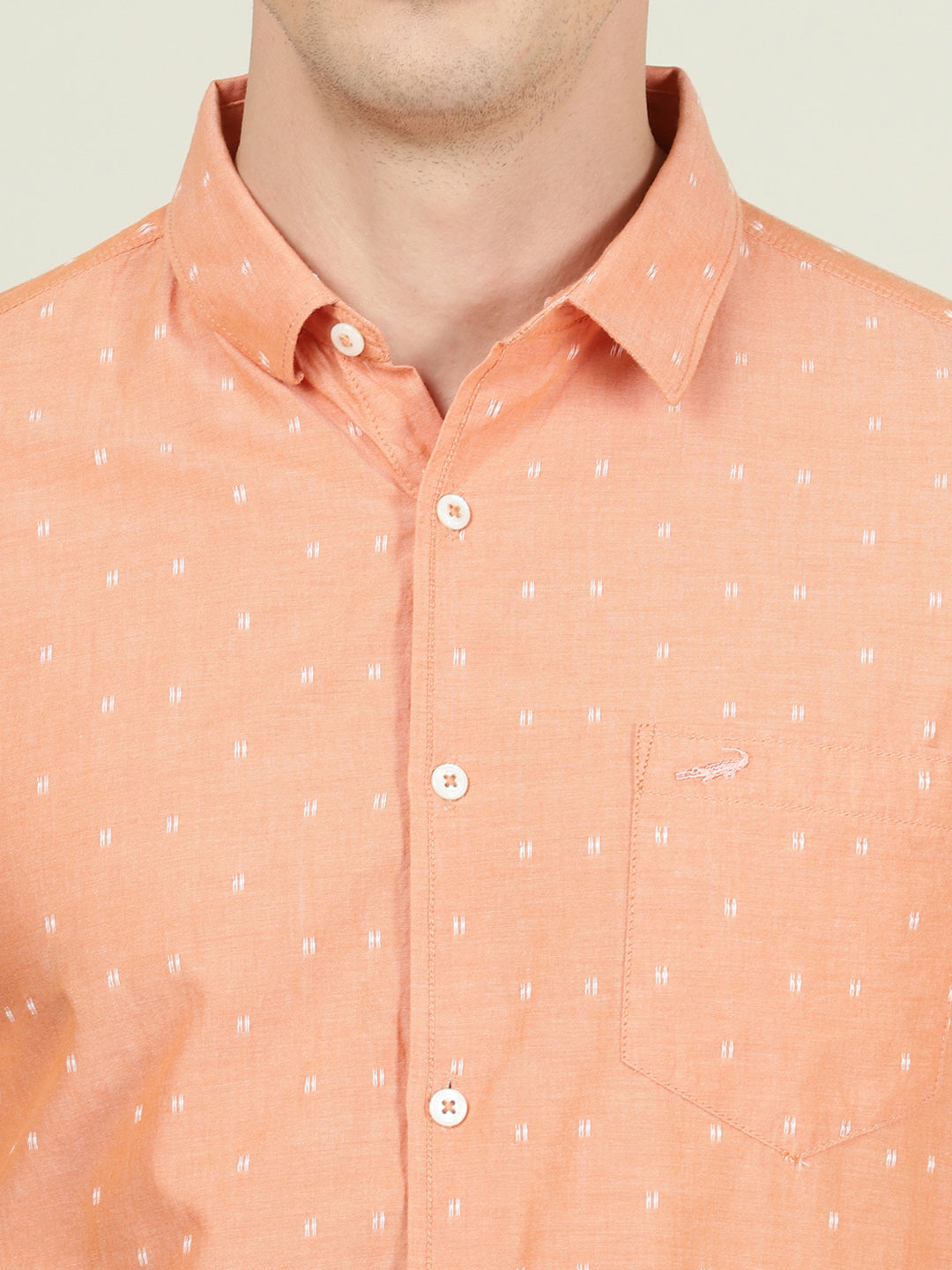 Orange Printed Full Sleeve 100% Cotton Shirt