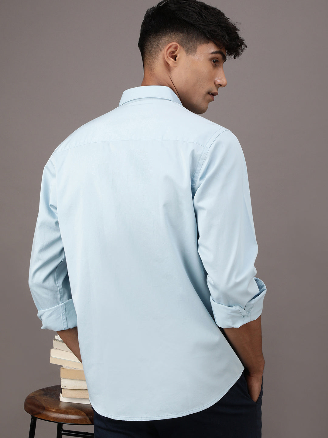 Pale Blue Solid Full Sleeve 100% Cotton Shirt