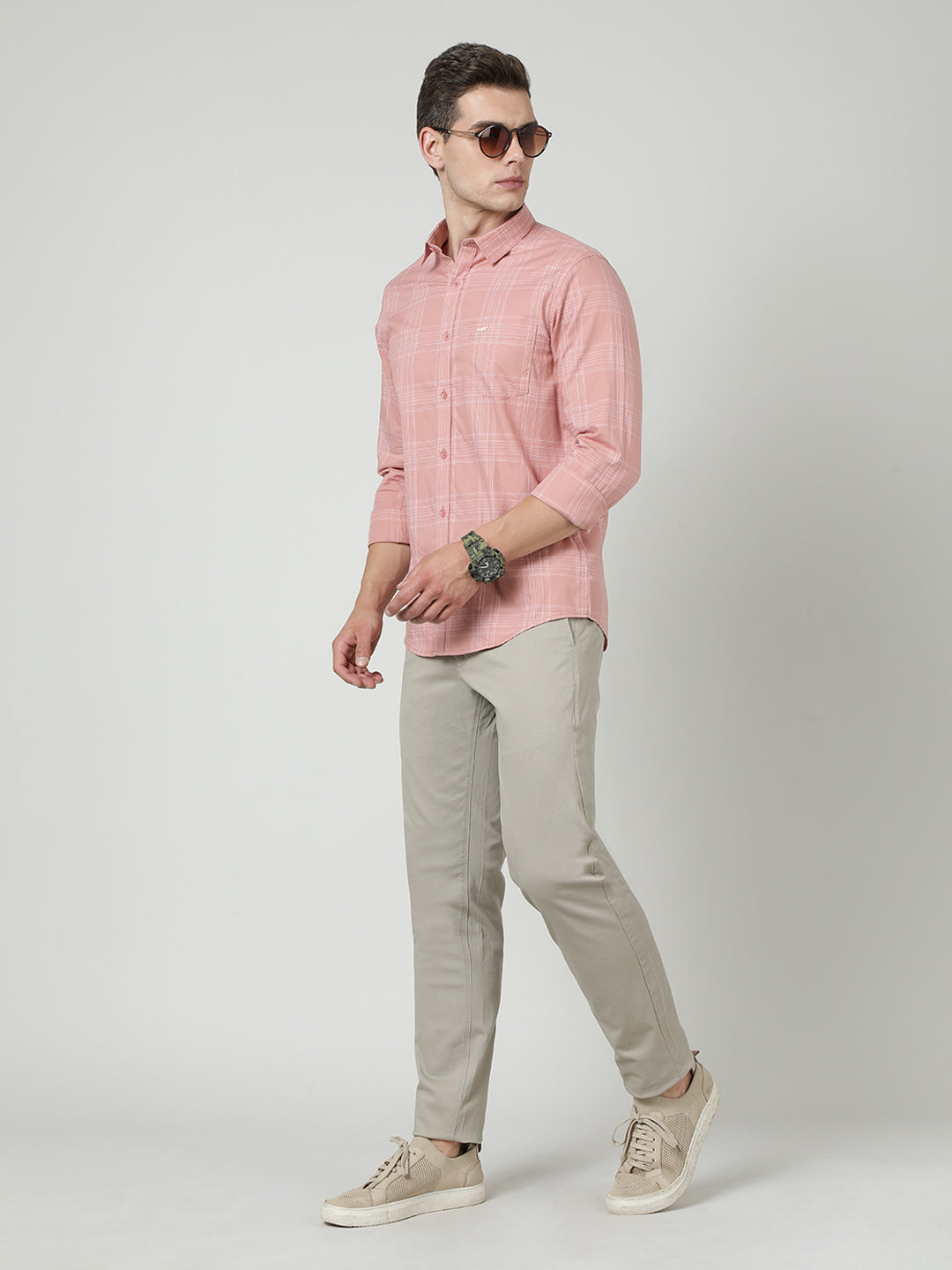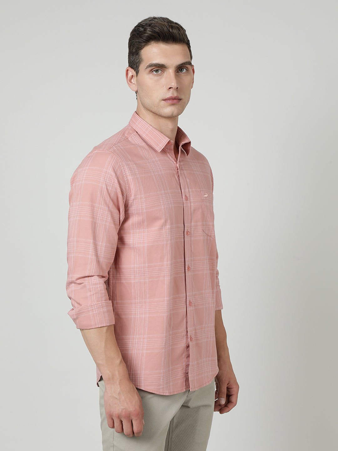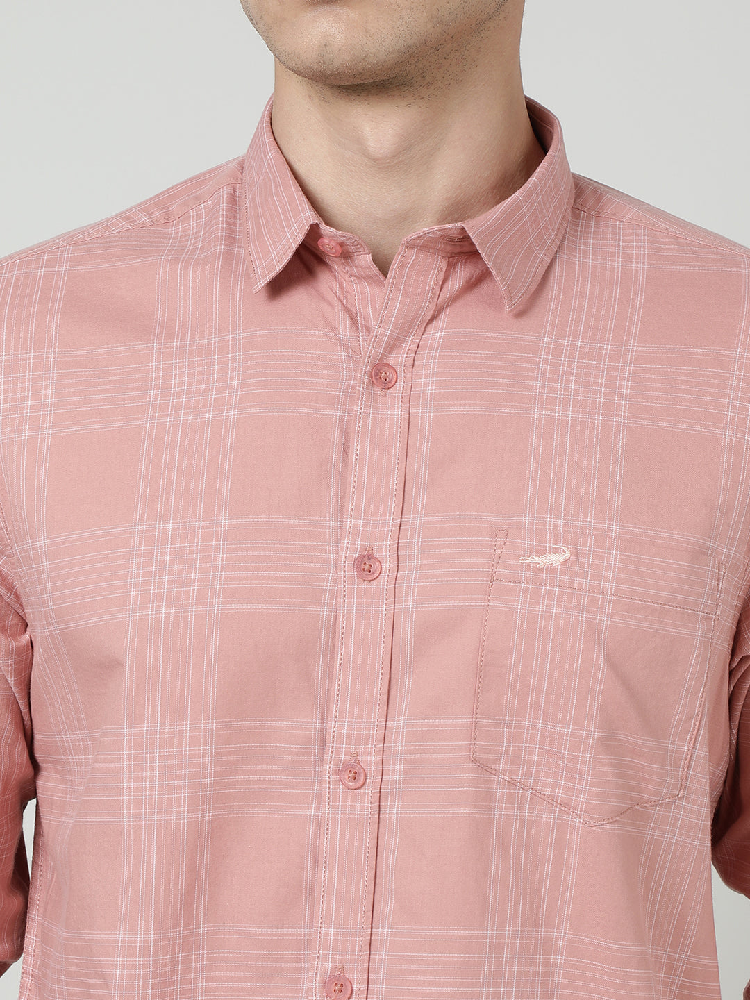 Peach Checked Full Sleeve 100% Cotton Shirt