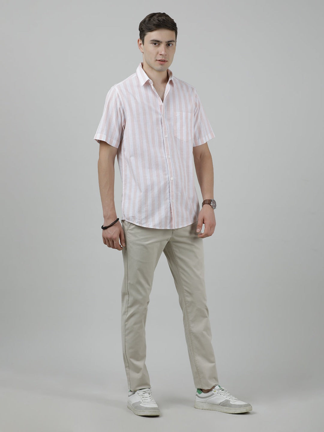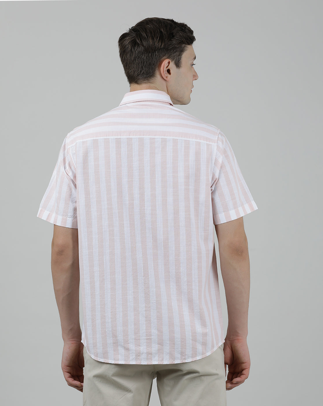 Pink Striped Half Sleeve 100% Cotton Shirt