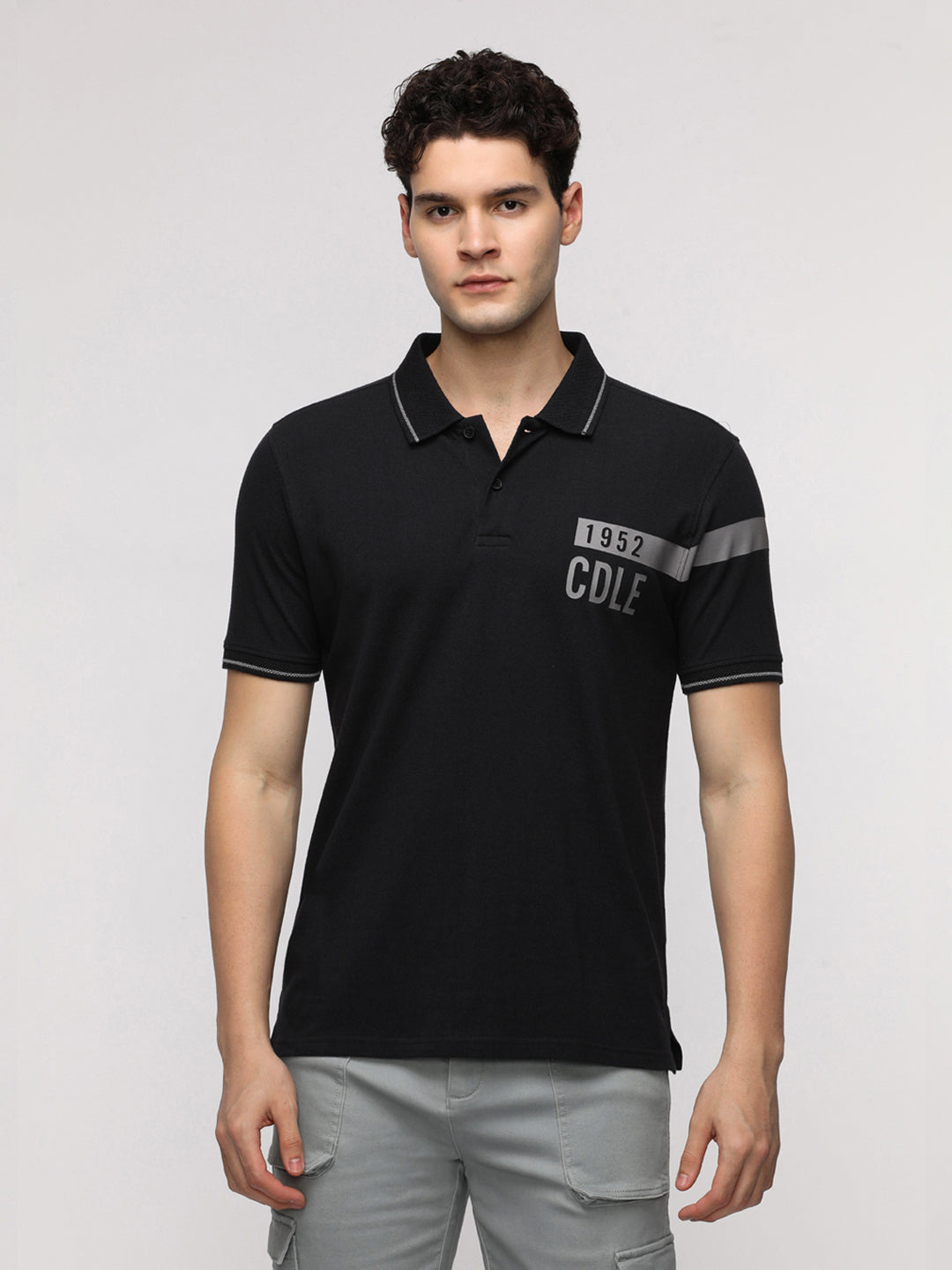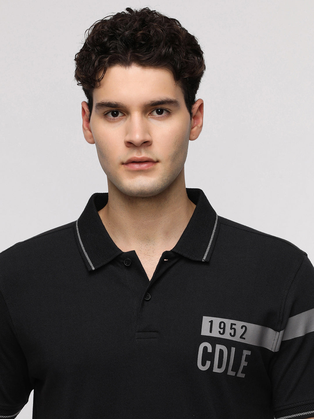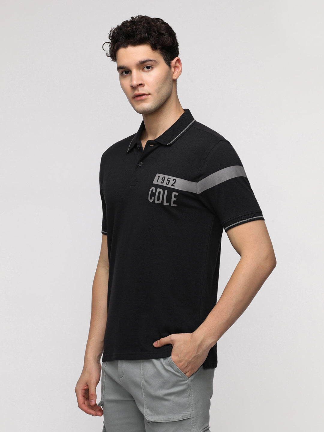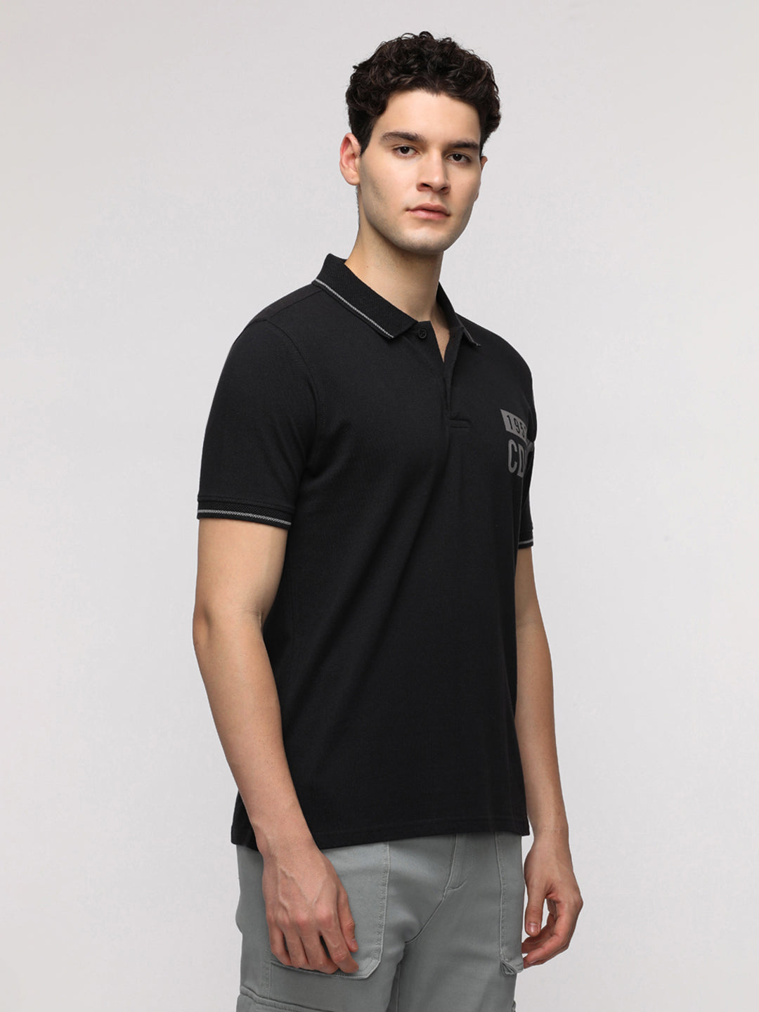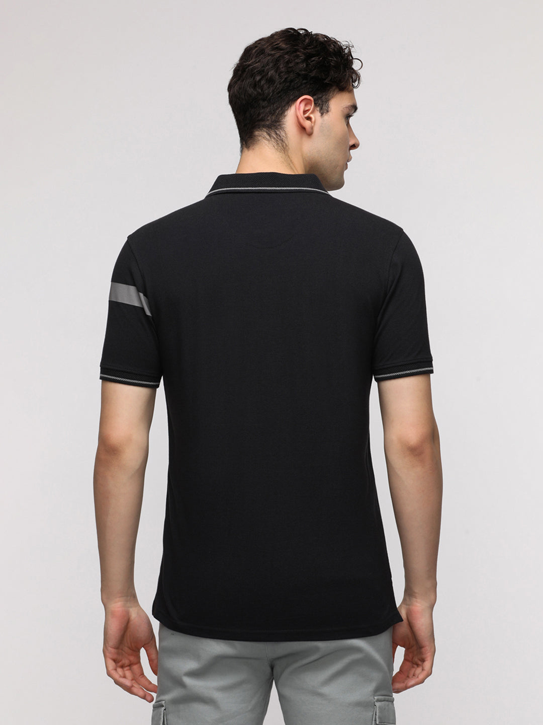 Placement Stripe Printed Polo T-Shirt in Jet Black