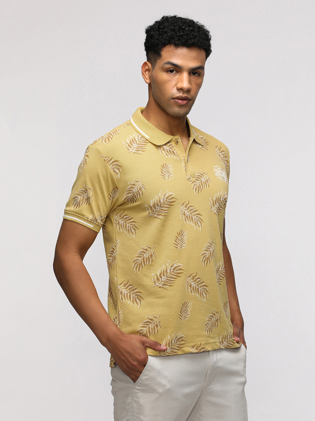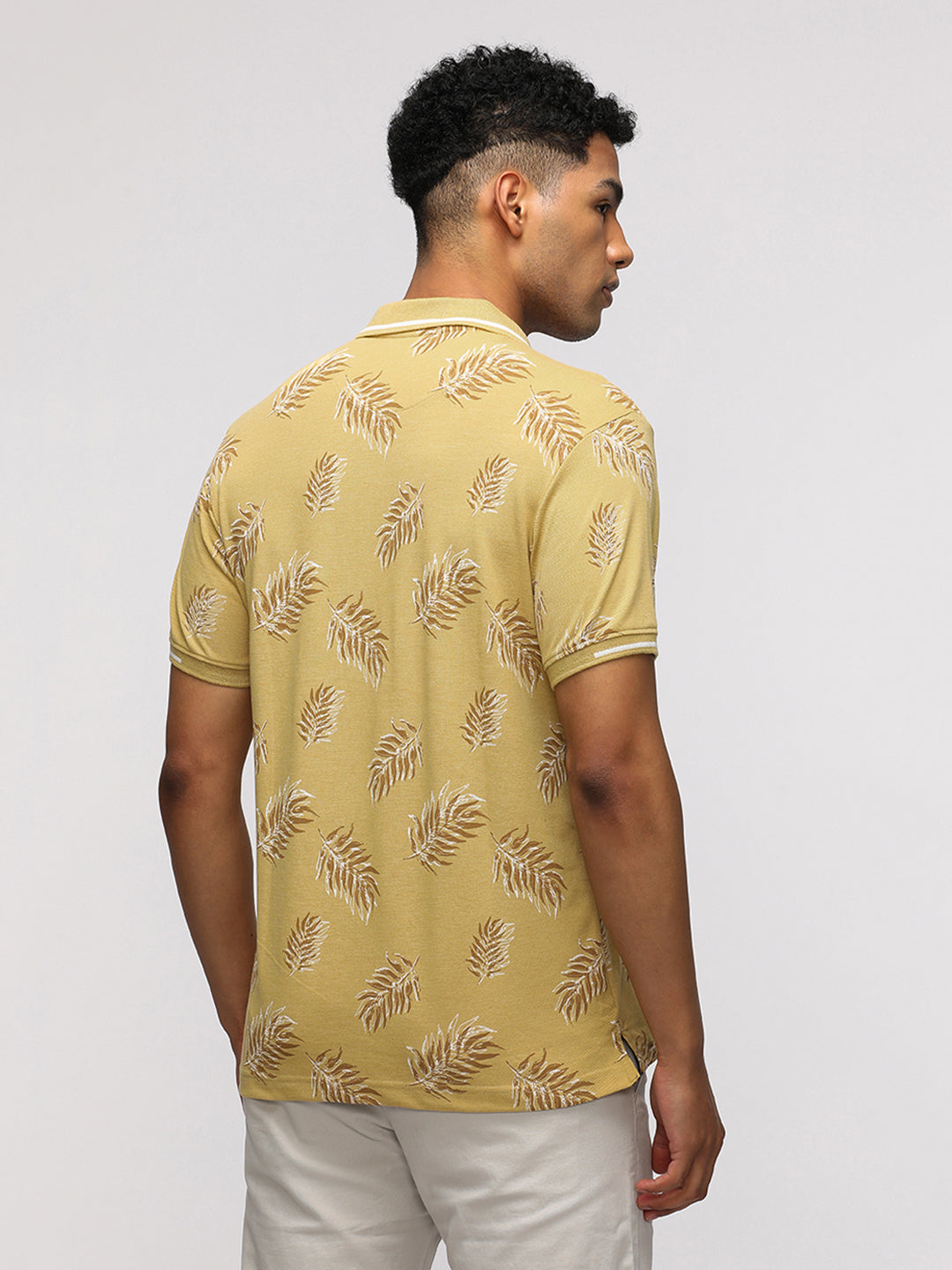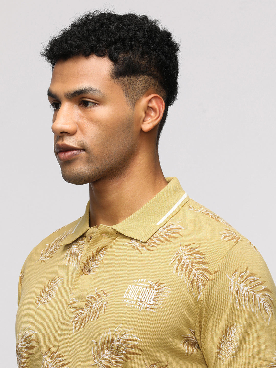 Polo Neck Sporty Lime Melange T-Shirt with Pique