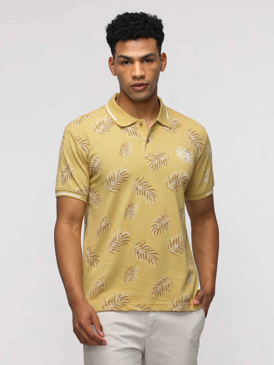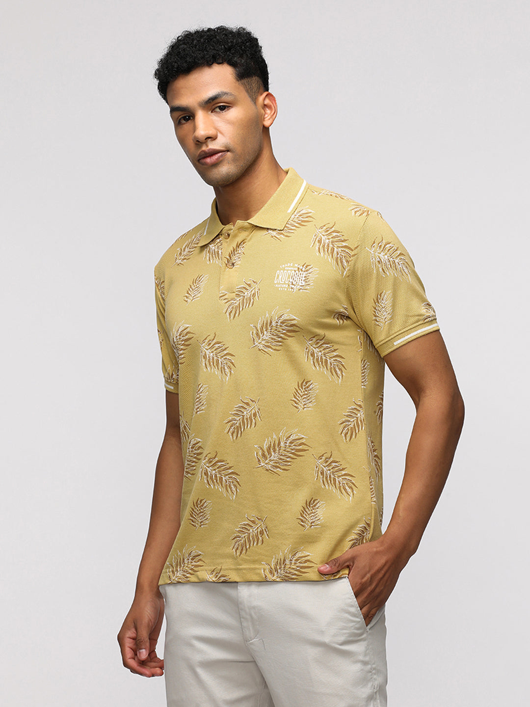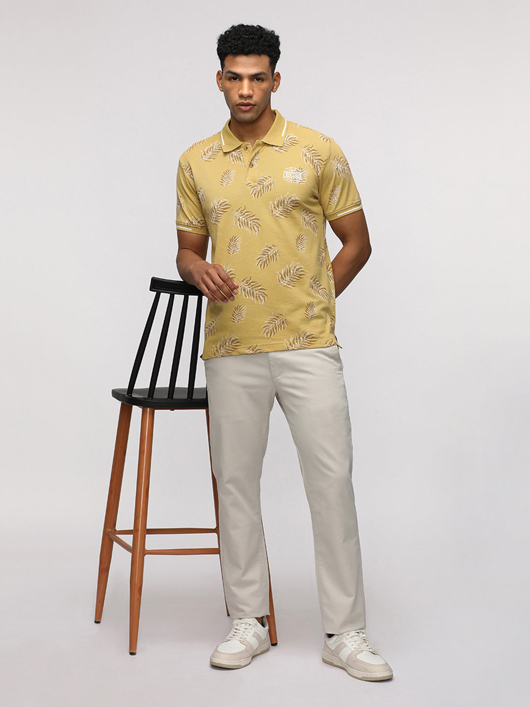 Polo Neck Sporty Lime Melange T-Shirt with Pique