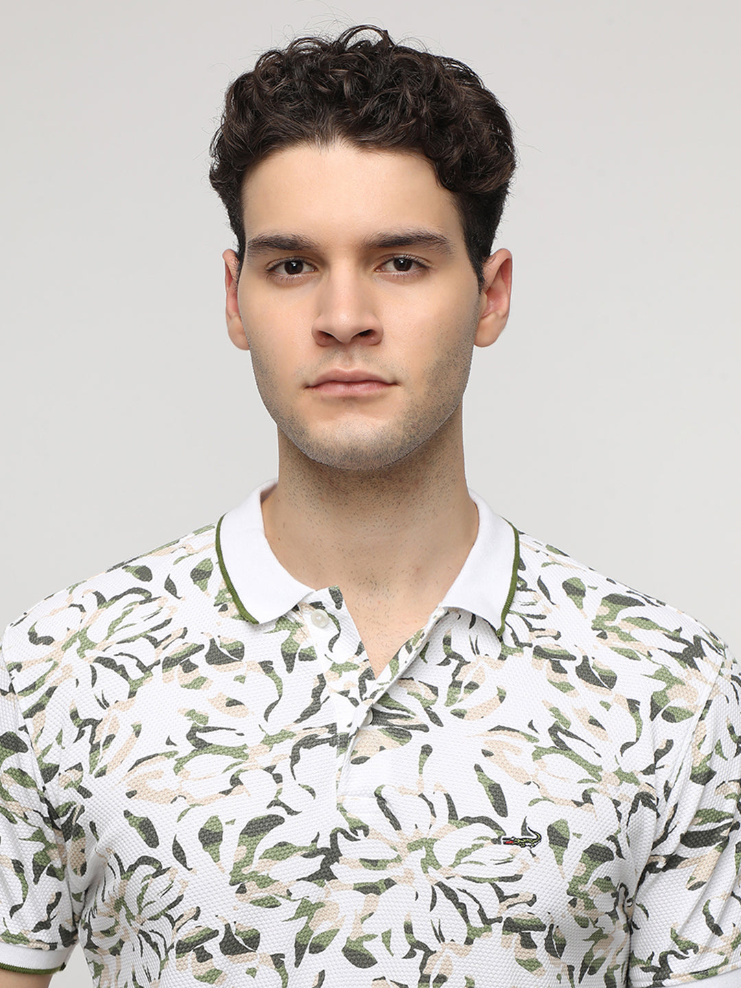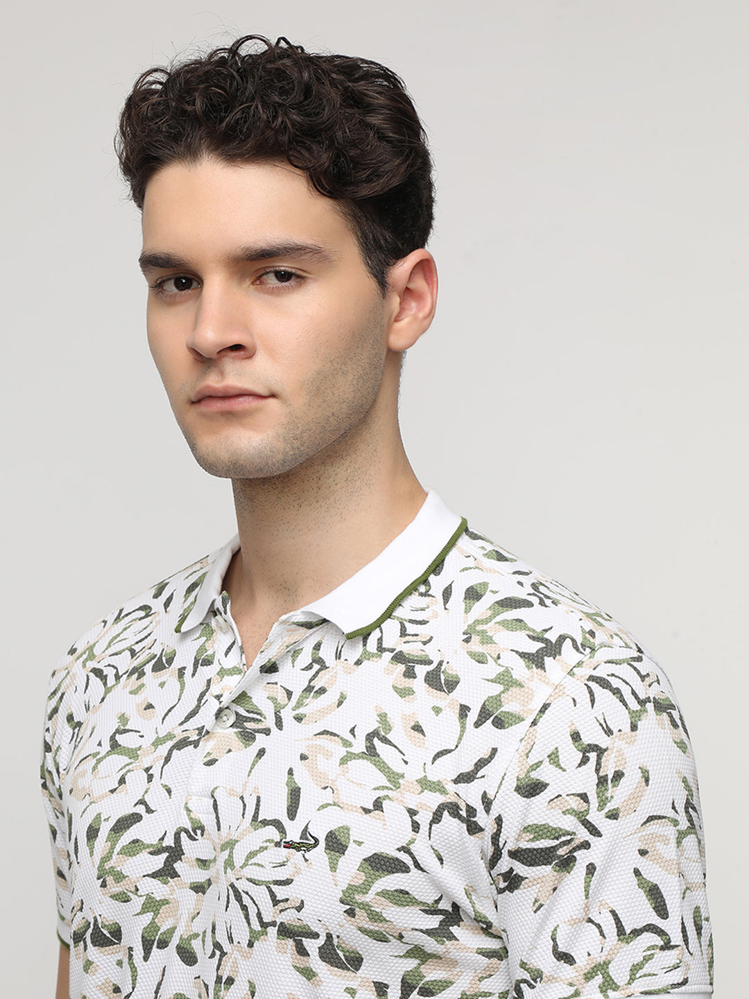 Popcorn Jaquard All Over Printed Polo T-Shirt in Olive