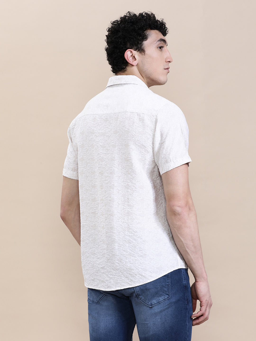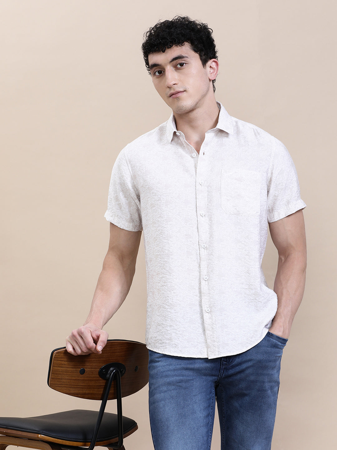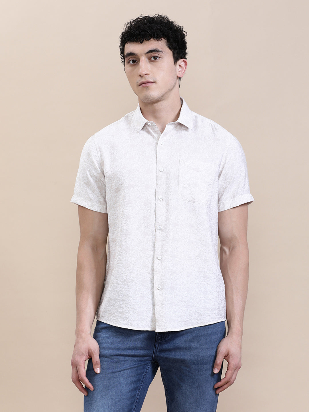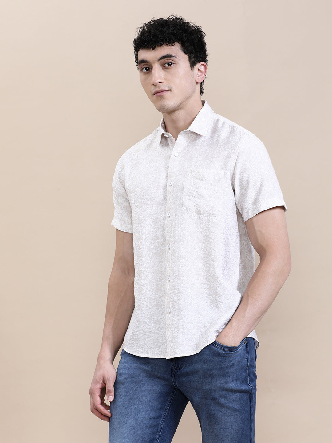 Printed Crinkled Effect Fluid Half Sleeve Shirt Beige