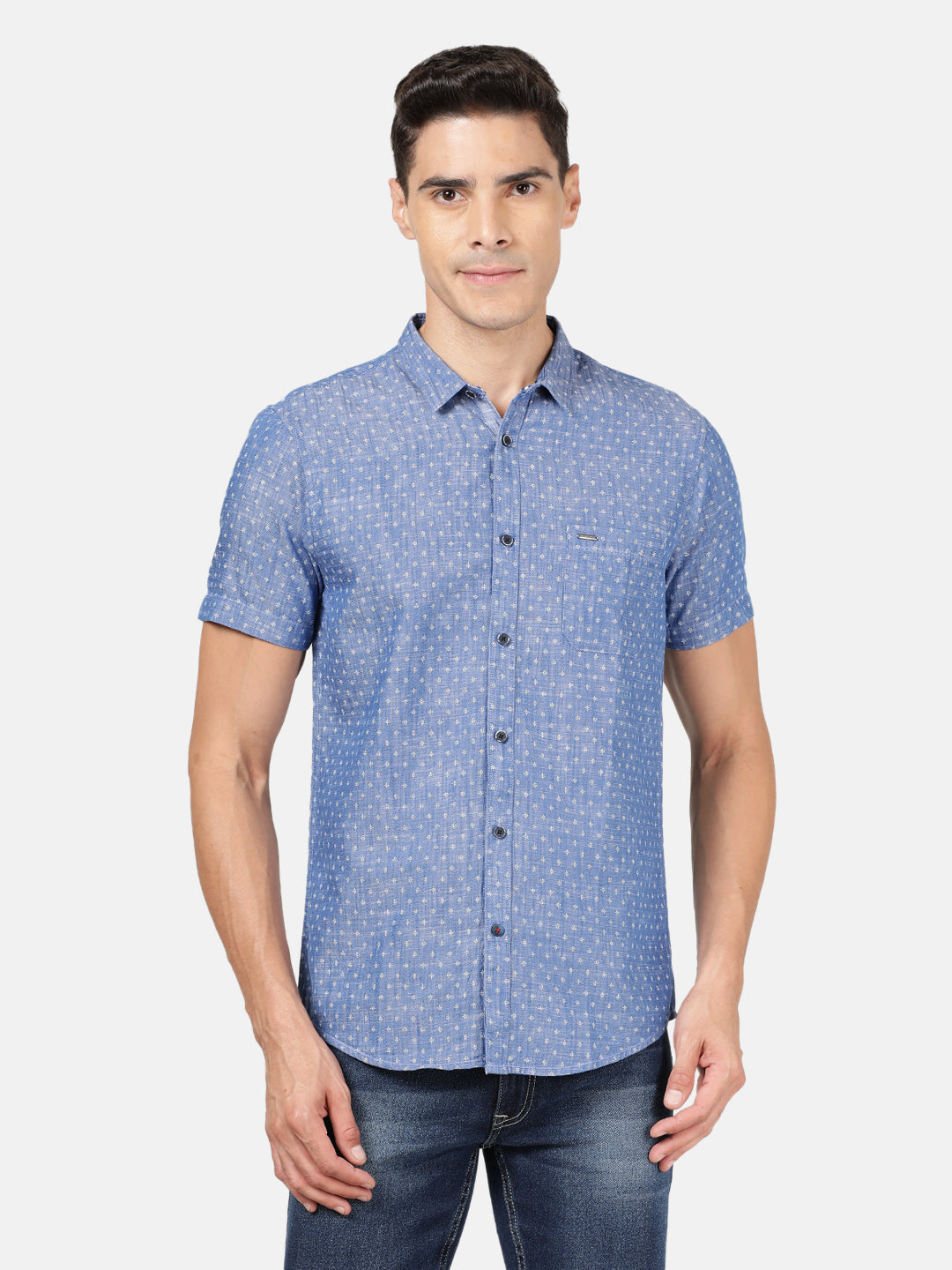 Printed Half Sleeve 100% Cotton Blue Shirt