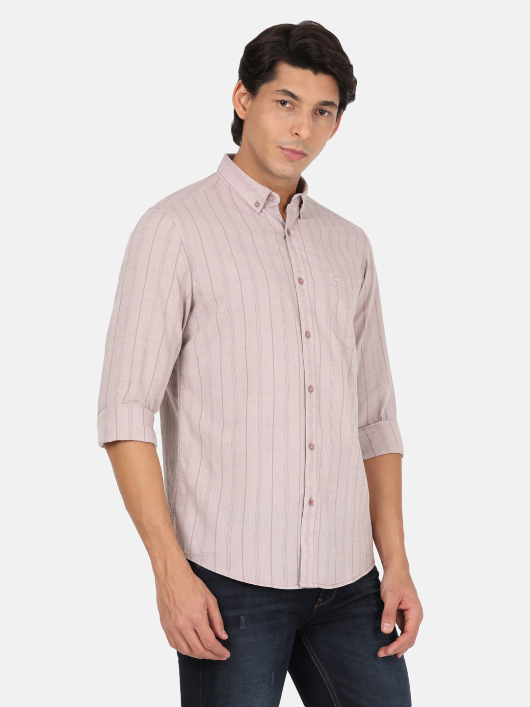 Purple Striped Full Sleeve 100% Cotton Shirt