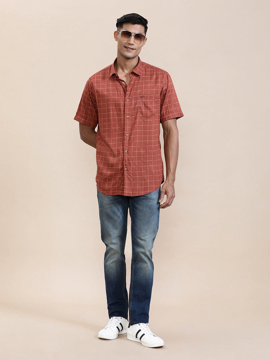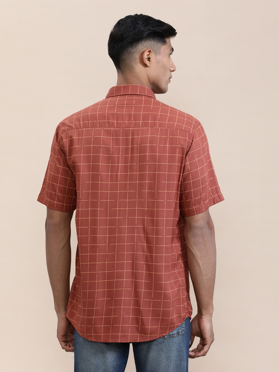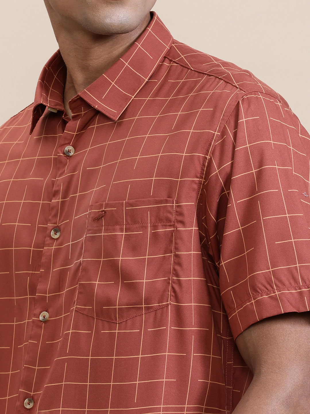 Red Checked Comfort Fit Half Sleeve Shirt