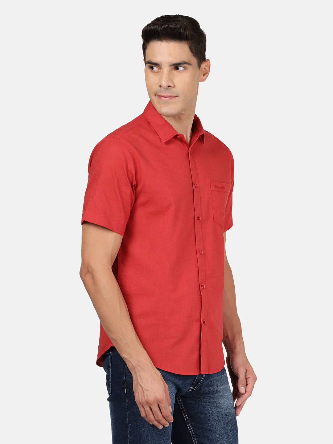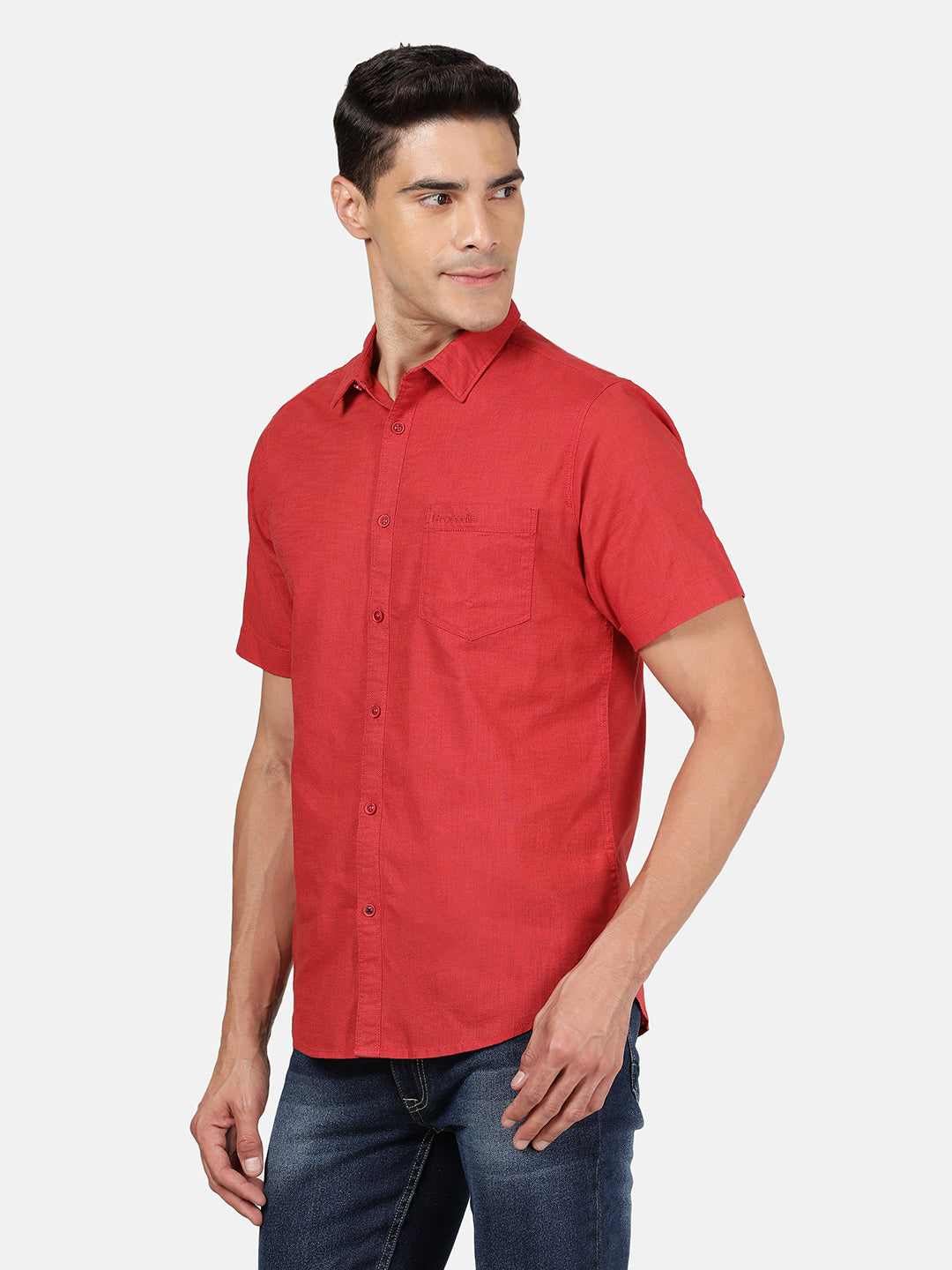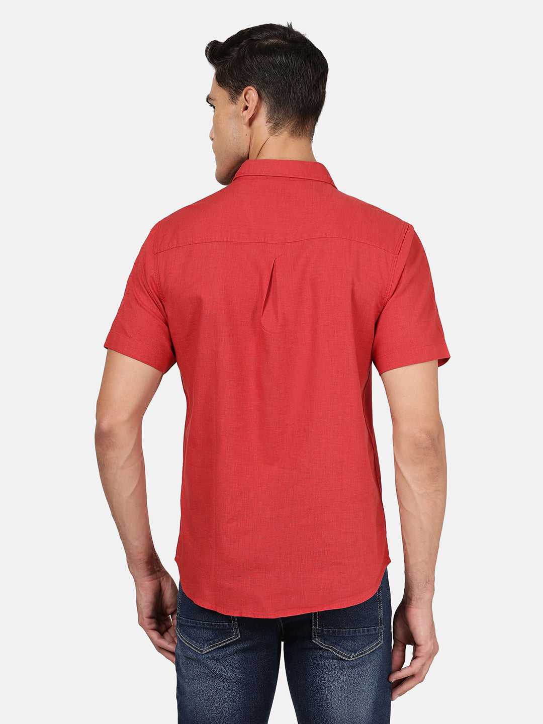 Red Solid Half Sleeve 100% Cotton Shirt