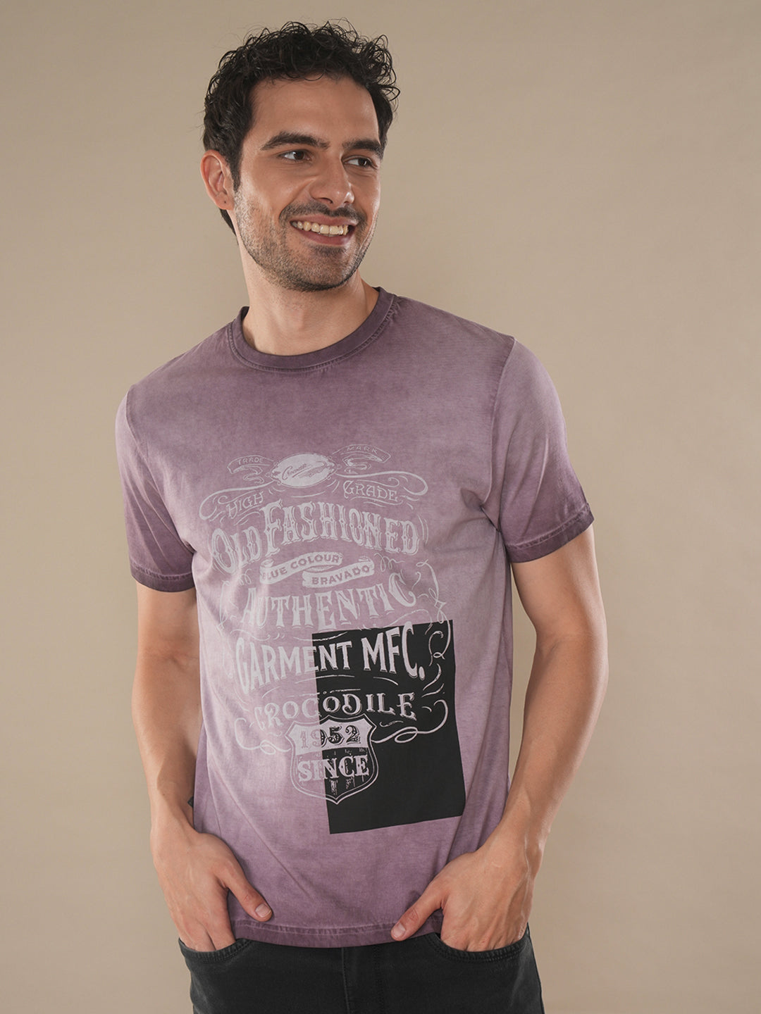 Reverse Dyed T-Shirt With Chest Graphics In Rust