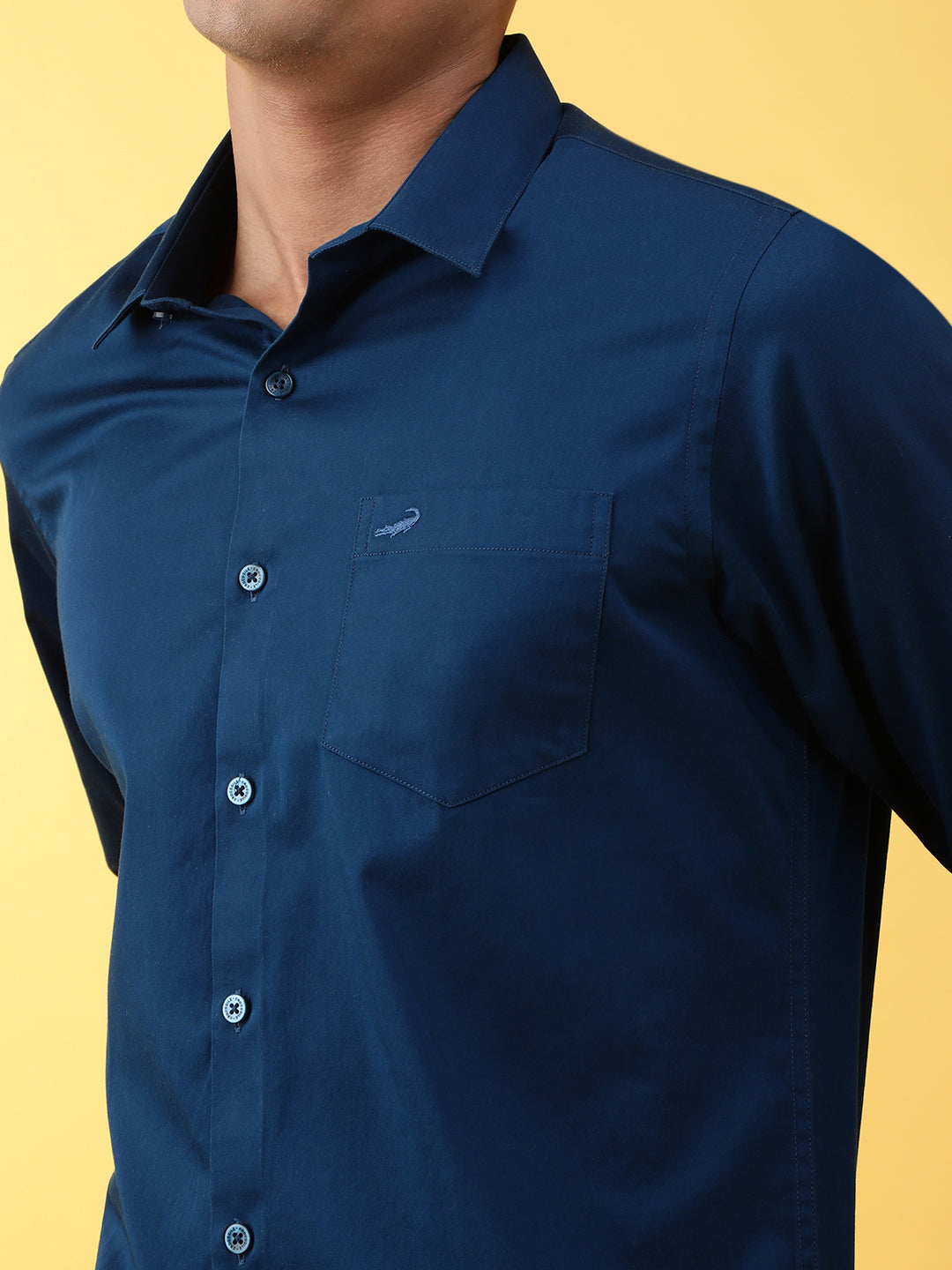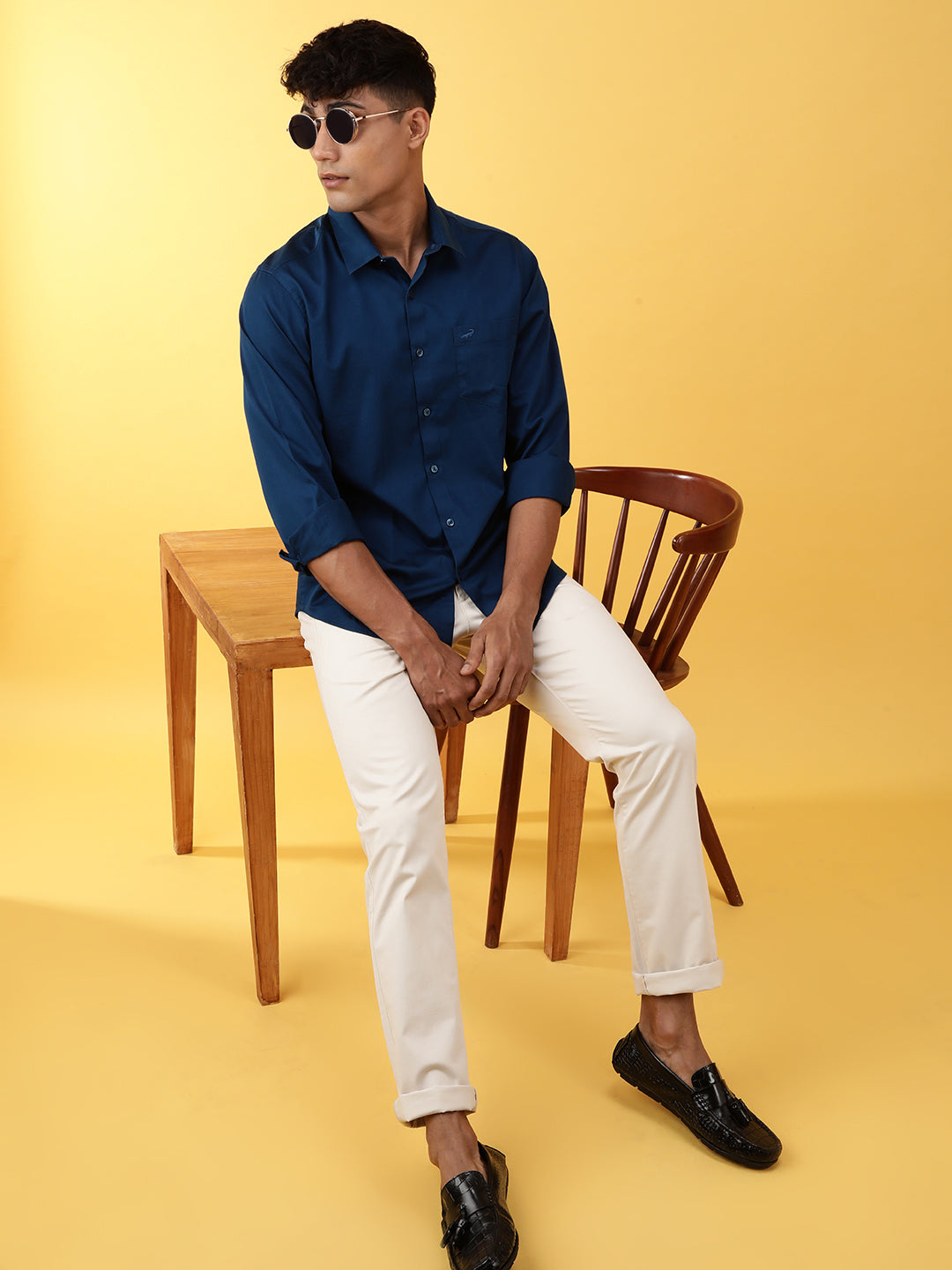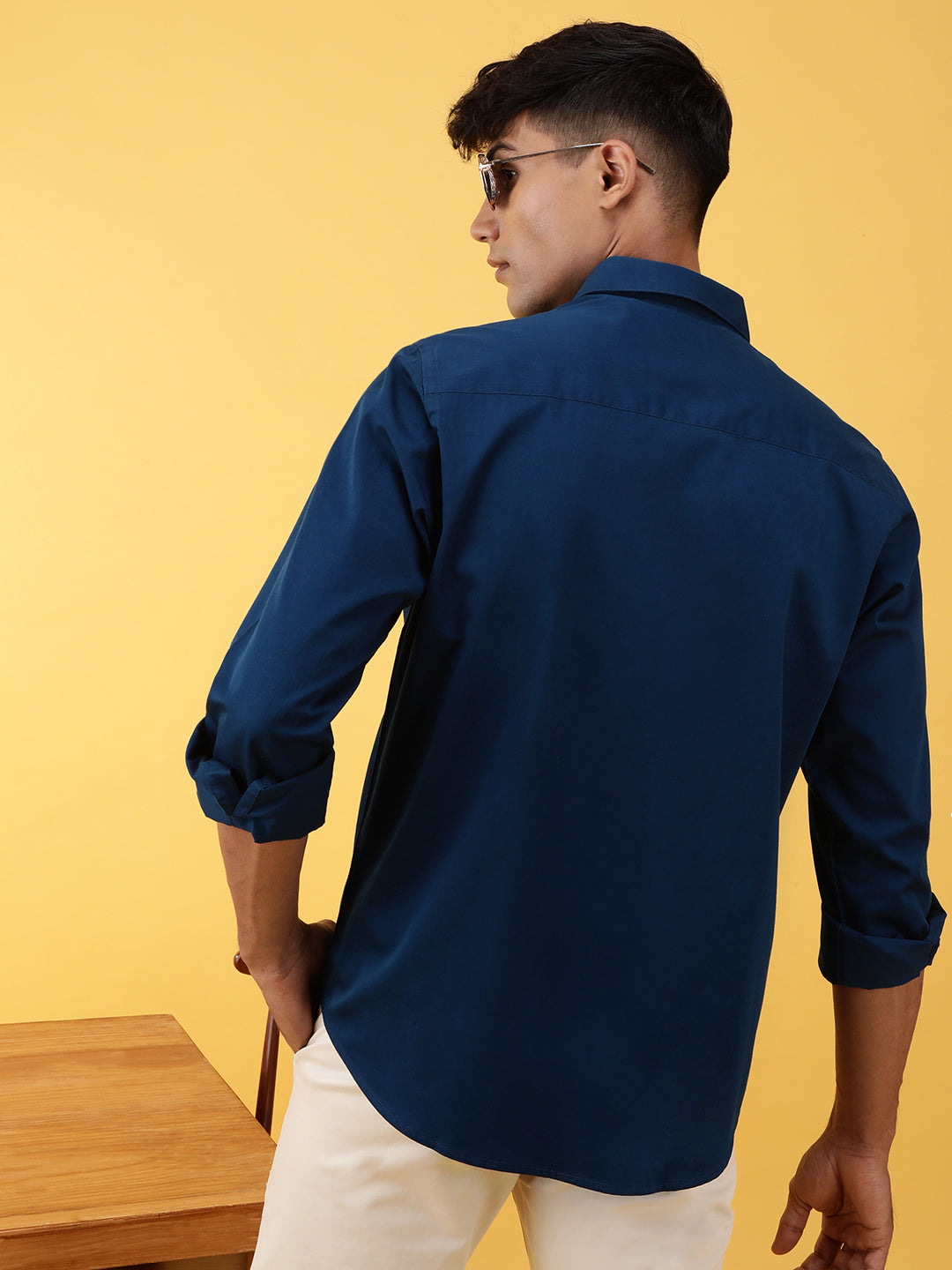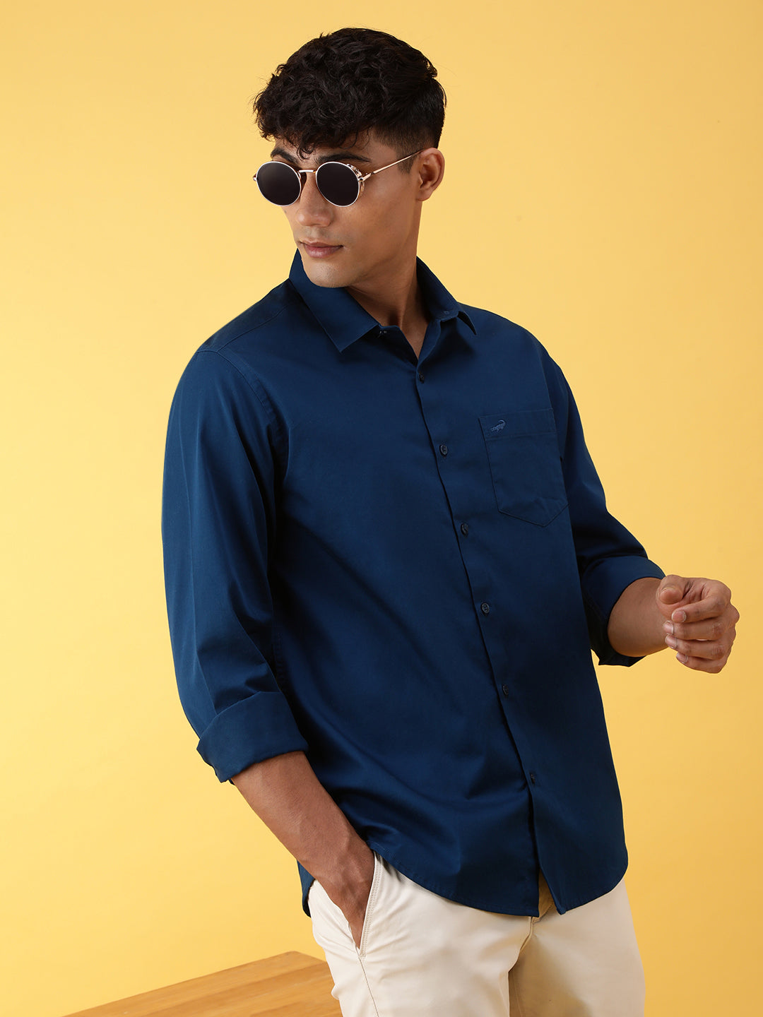 Royal Blue Solid Full Sleeve 100% Cotton Casual Shirt