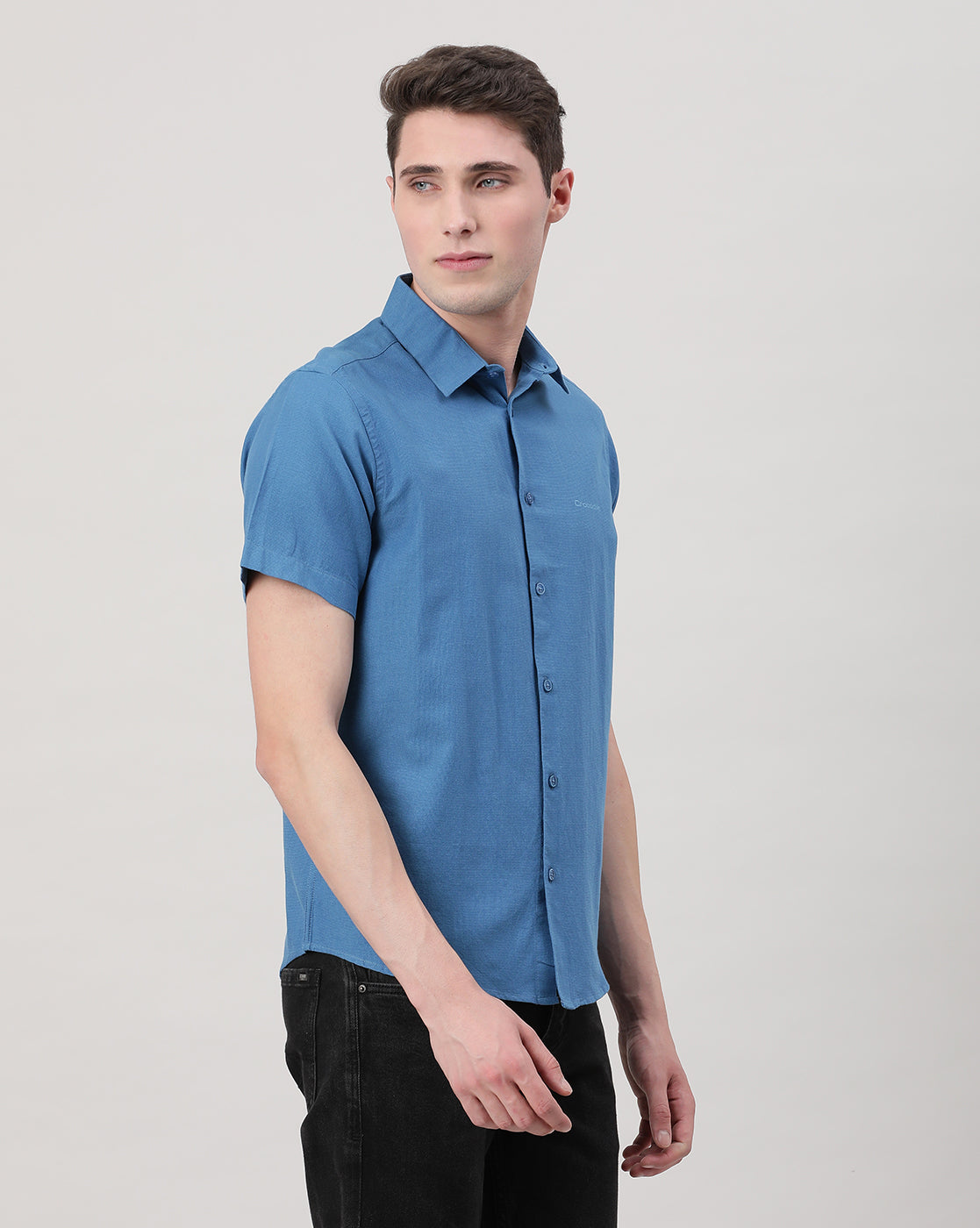 Royal Blue Solid Half Sleeve Linen Shirt