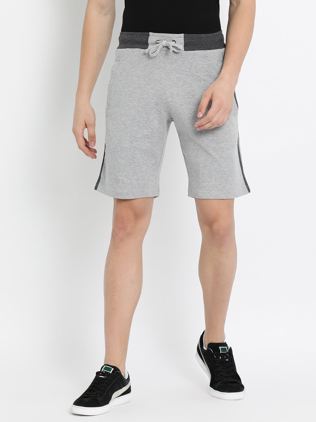Slim Fit Grey Solid Interlock Track Shorts