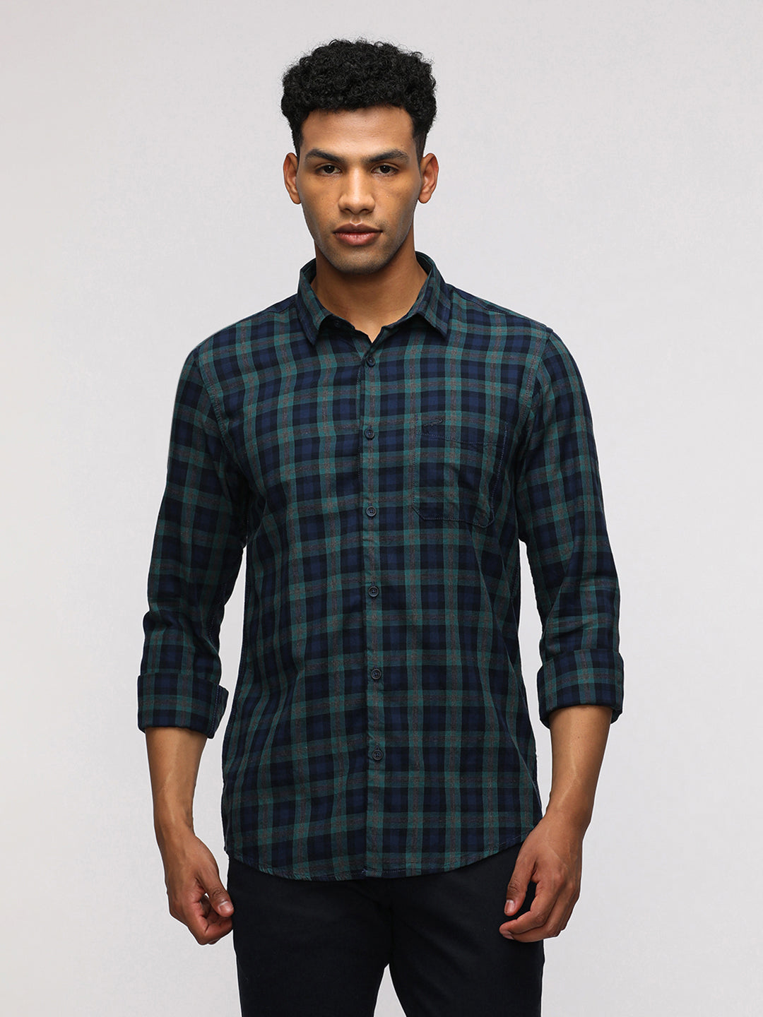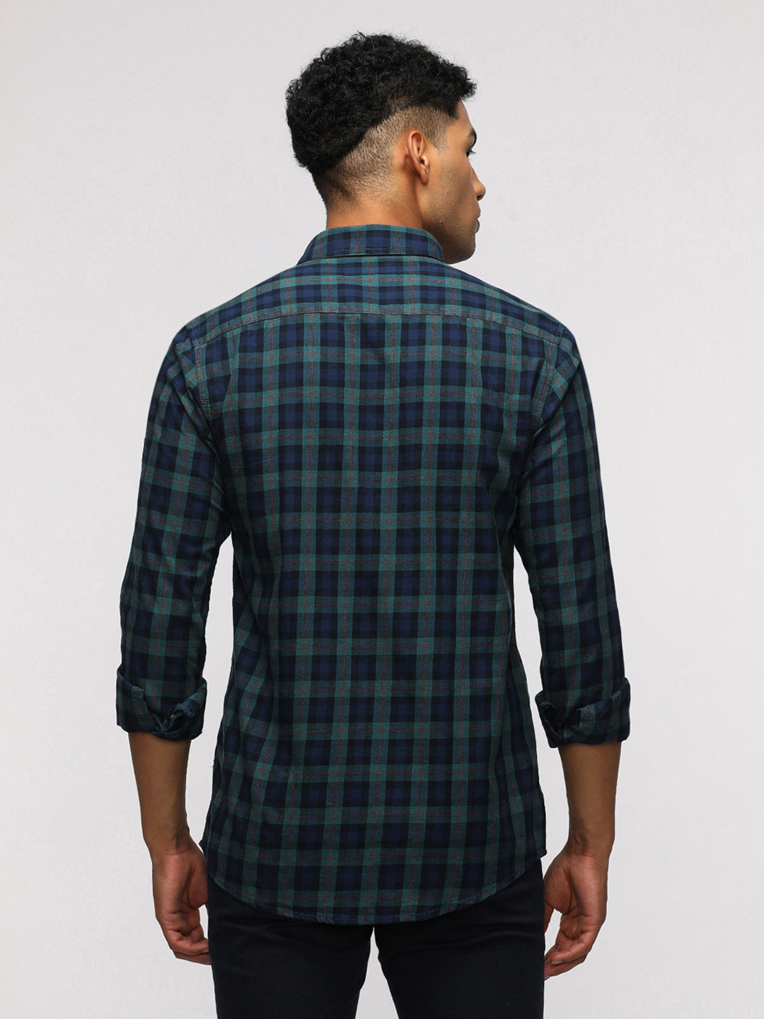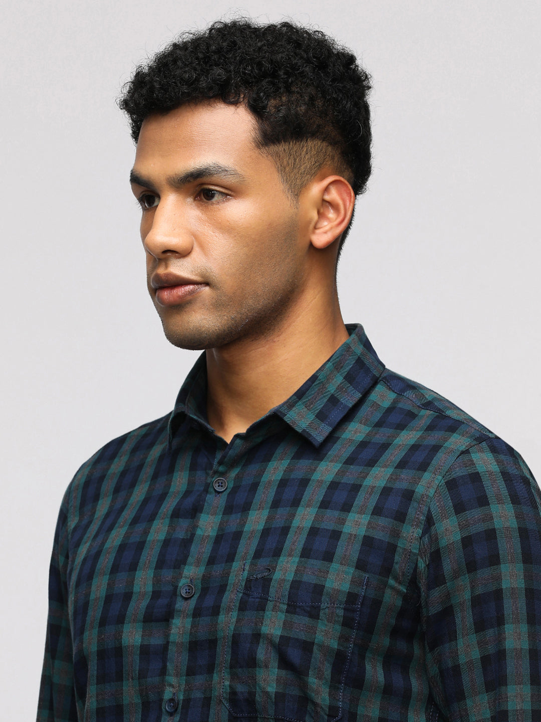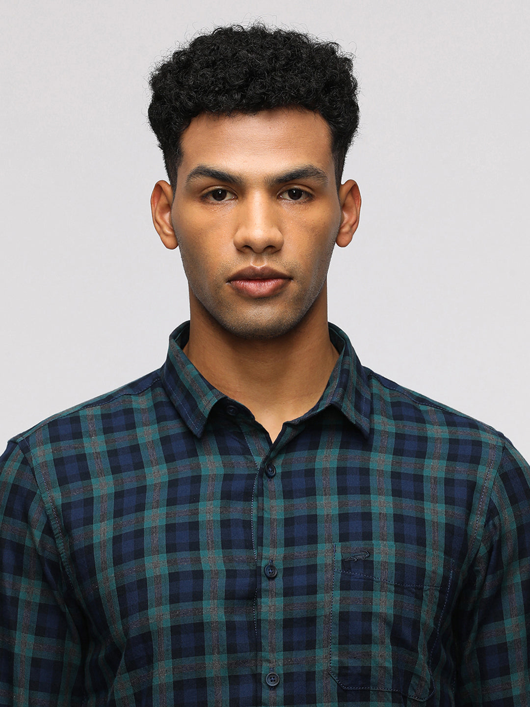 Slim Fit Navy Checkered Shirt for Trendy Comfort