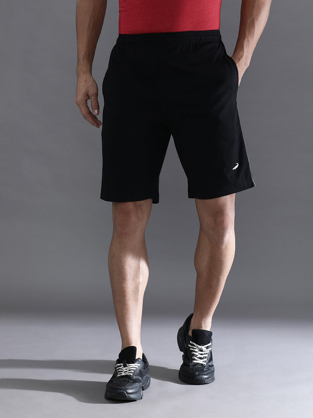 Solid Black Comfort Fit Track Shorts