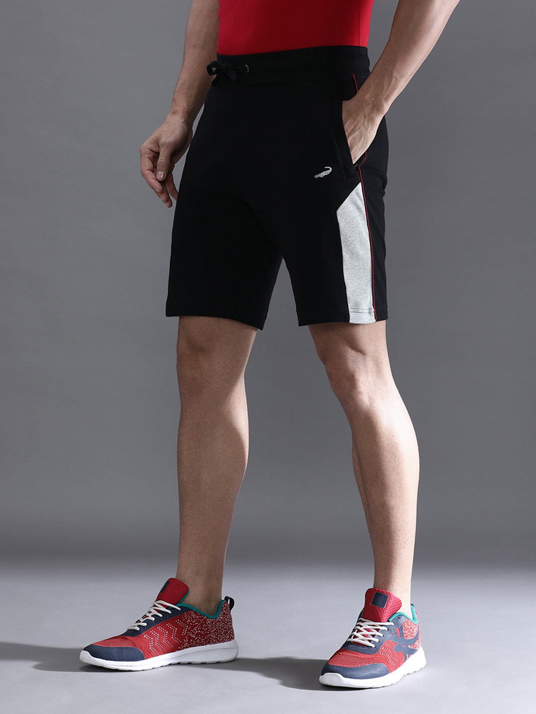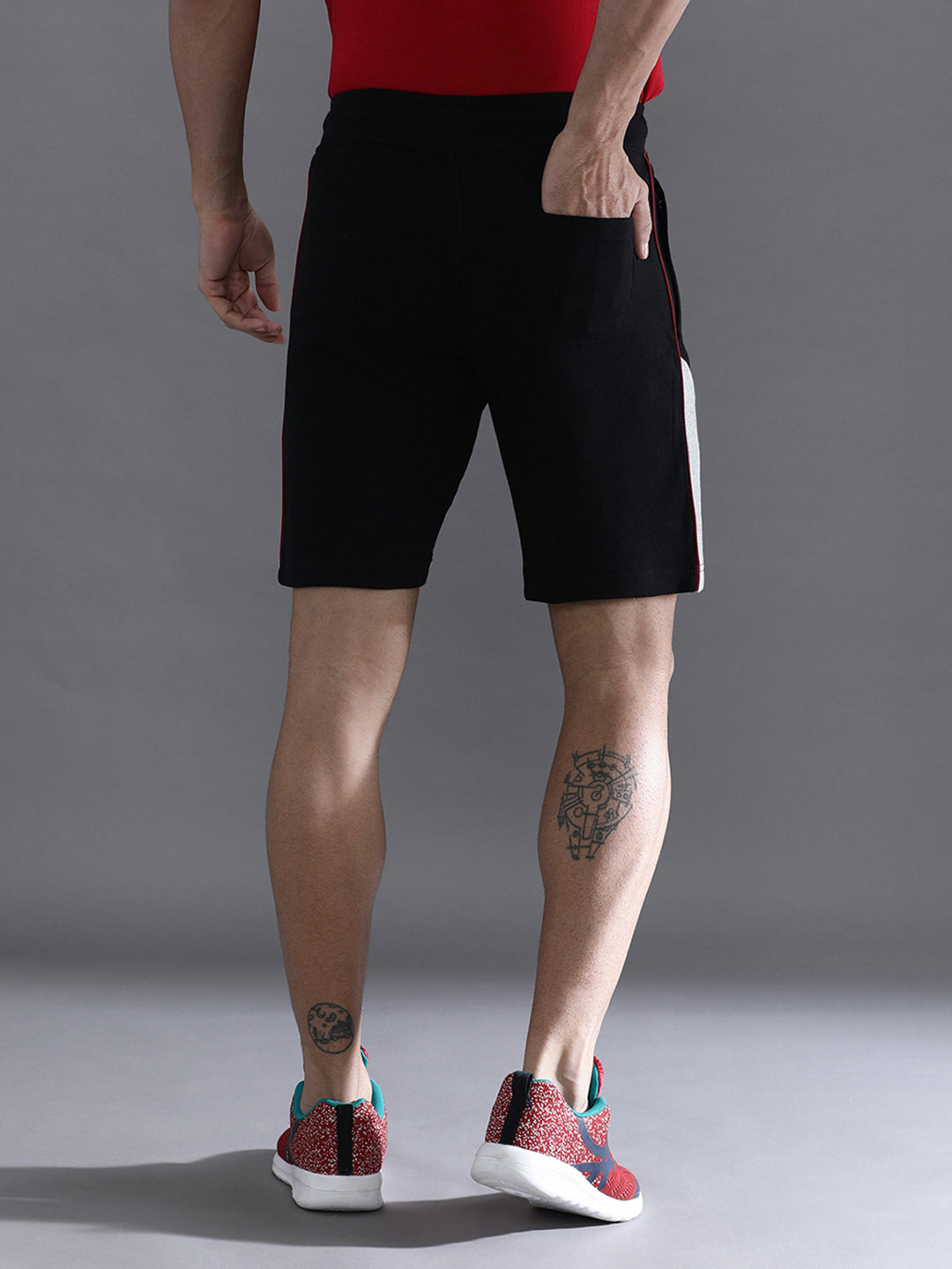 Solid Black Slim Fit Track Shorts