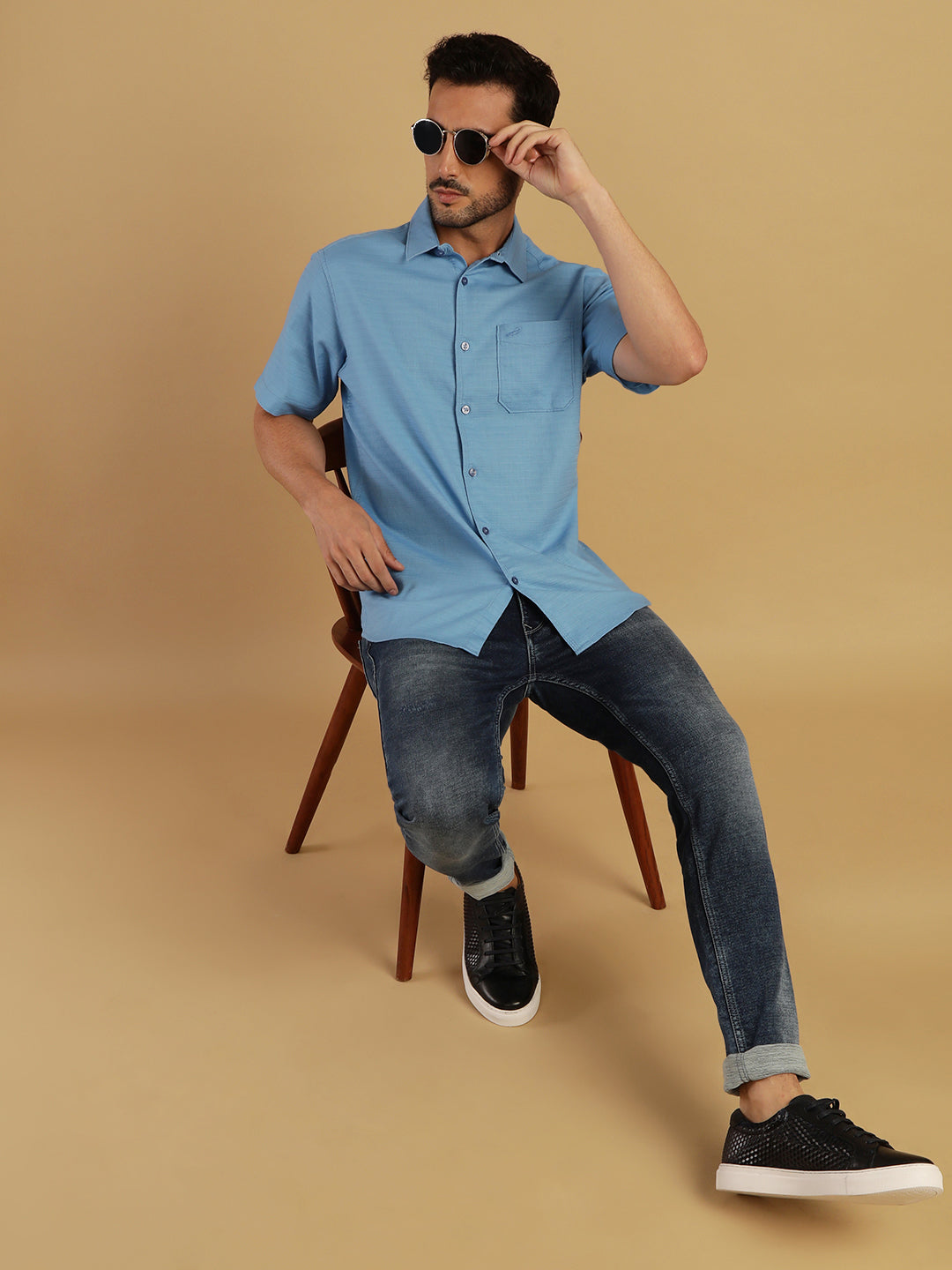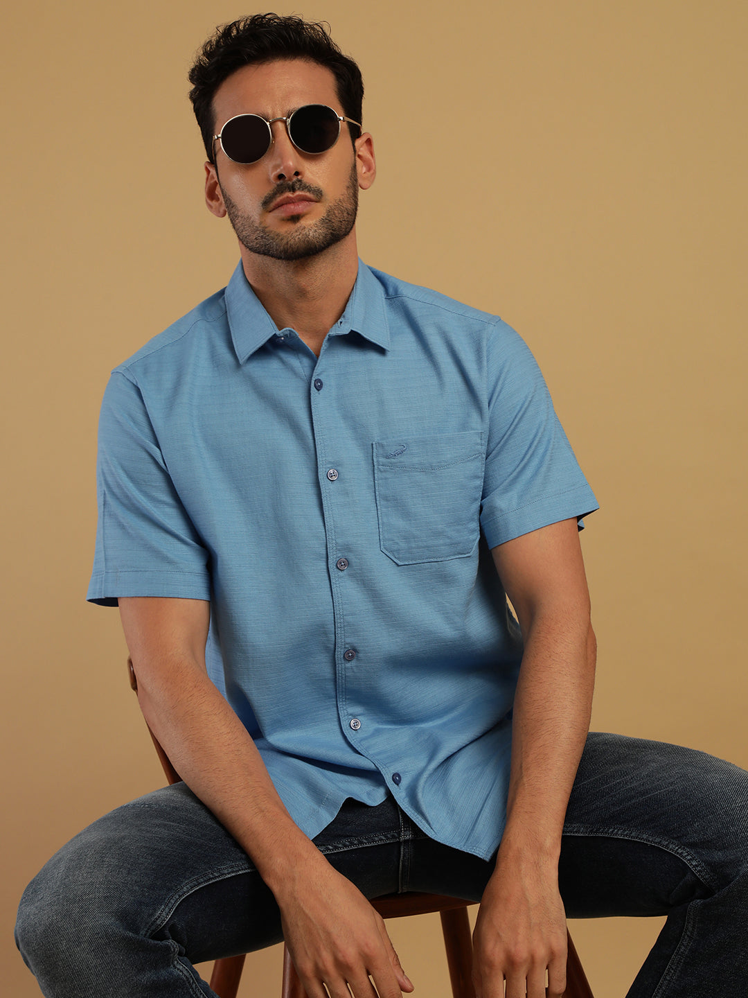 Solid Blue Half Sleeve Cotton Shirt